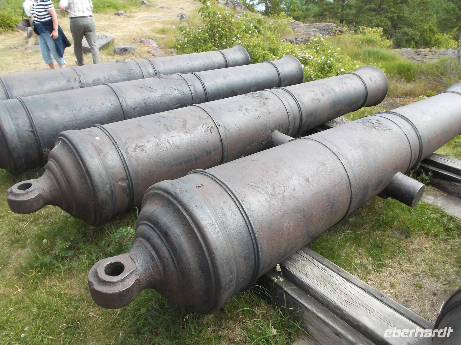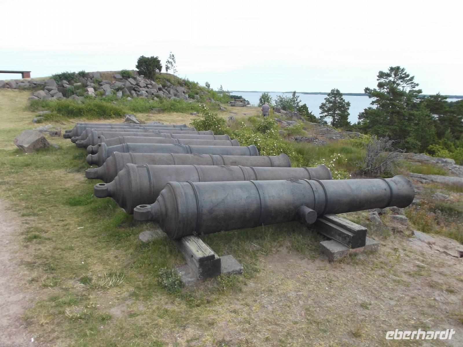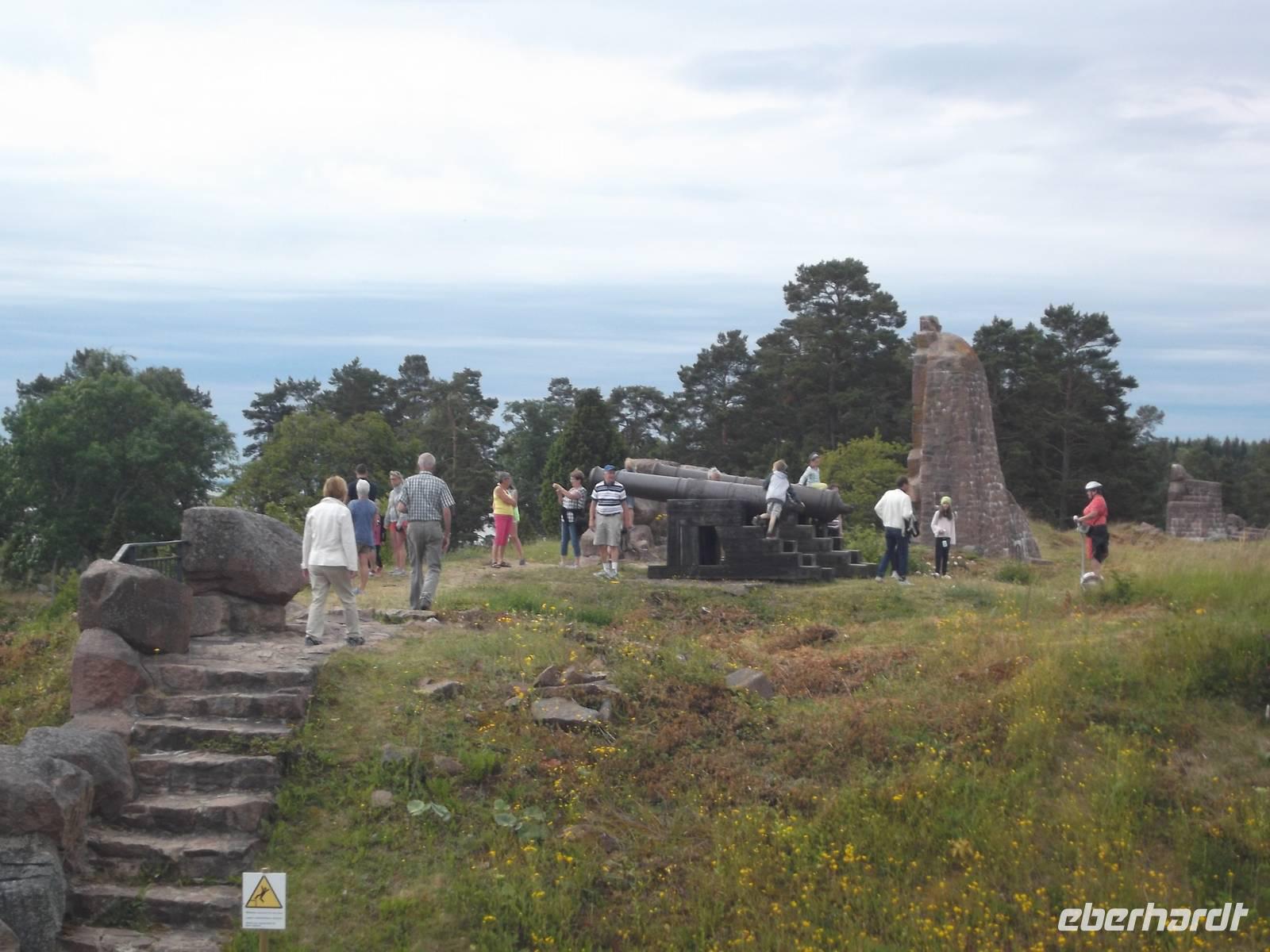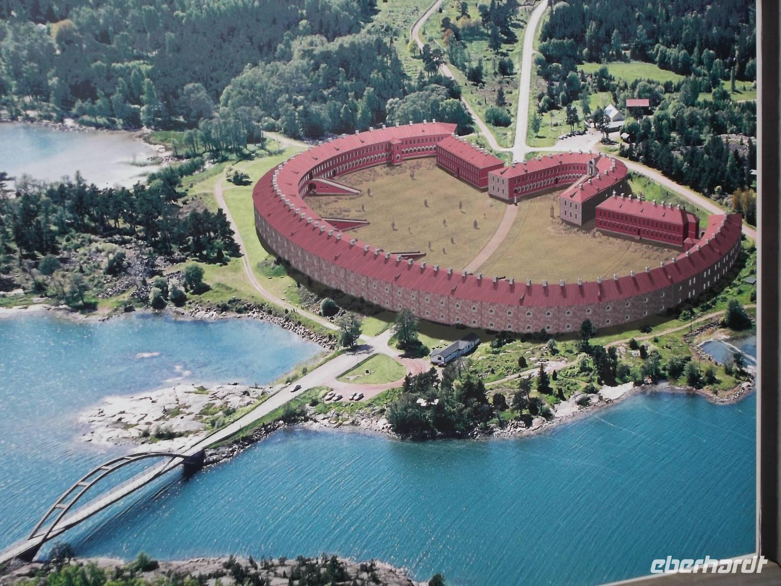 Unerwartet gewaltige Ausmaße hatten dann die Ruinen der einstigen Festung Bomarsund. Als 1809 Russland Schweden im letzten Russisch-schwedischen Krieg besiegt hatte, wurde aus dem jahrhundertelang zu Schweden gehörenden Finnland ein russischen Großfürstentum, zu dem auch miteroberten Åland-Inseln gehörten. Als Absicherung gegen eventuelle schwedische Angriffe ließ der Zar hier eine Garnisonsfestung errichten. Umgeben von mehreren gewaltigen Kanonentürmen auf den umliegenden Anhöhen - von denen wir die Ruine des Kanonenturms von Prästö besichtigten, errichteten die russischen Truppen hier ein umfangreiches, kanonengespicktes Militärquartier ein. Wenige Jahrzehnte später, zur Zeit des Krimkrieges gelang es aber einer englisch-französischen Flotte mit Hilfe åländischer Führer, den Russen in den Rücken zu fallen und Kanonentürme und Festung einzunehmen. Später haben sie dann die Festung Bomarsund so gründlich geschleift und gesprengt, dass nur noch wenige Mauerreste übrig blieben - die aber zeigen noch ziemlich genau die einstige Größe des imposanten Bauwerks.