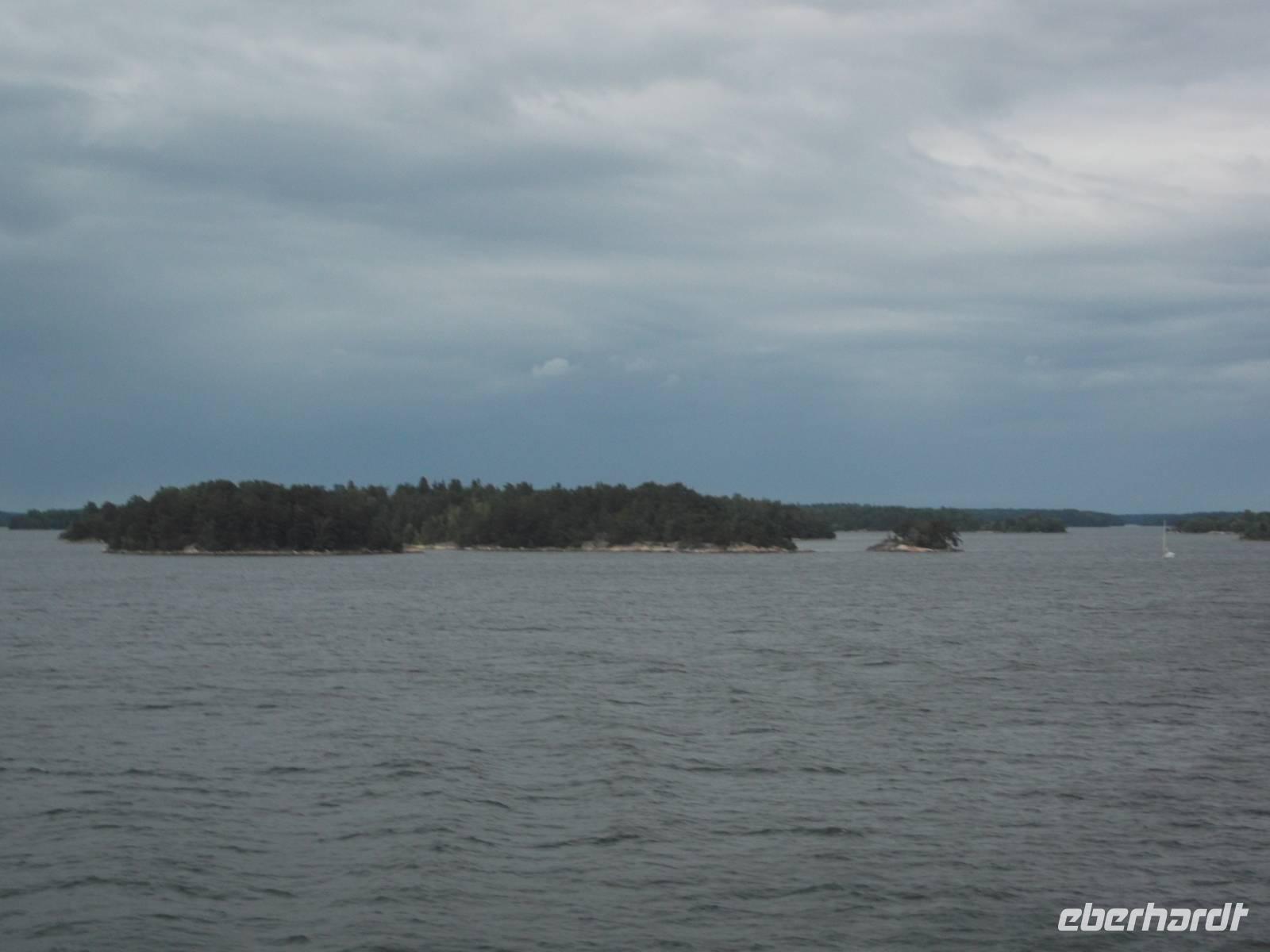 Heute Morgen hatten wir Freizeit. Obwohl das Wetter nicht optimal war - auch wenn der prasselnde Regen von gestern Nachmittag der Vergangenheit angehörte - konnten wir noch einen ausgiebigen Bummel durch Mariehamn, den Hauptort der Åland-Inseln, machen. Da wir schon vormittags auschecken mussten, konnten wir unser Gepäck in einem extra dafür vorgesehenen abgeschlossenen Raum deponieren und holten es erst gegen Mittag von hier ab. Nach Beladen des Busses fuhren wir zum Hafen und bestiegen hier nach einiger Zeit die „Galaxy", das gewaltige und große Fährschiff der Silja-Tallink-Linie, die von Turku in Finnland nach Stockholm fährt. Das Besondere bei dieser Überfahrt ist der wundervolle Weg durch den Schärengärten Stockholms. Angeblich hat er 24.000 Inseln und Felsbuckel, aber man wird beim Zählen so schnell müde, dass wohl keiner die genaue Zahl kennt. Auf jeden Fall war unsere Fahrt mit der „Galaxy" ein besonderes Erlebnis und für viele war nahezu jede Minute vor der Einfahrt in den Stockholmer Hafen eine eigene Fotosession! Gegen Abend erreichten wir erneut die schwedische Hauptstadt und unser Hotel am Stadtrand auf dem Stockholmer Messegelände.