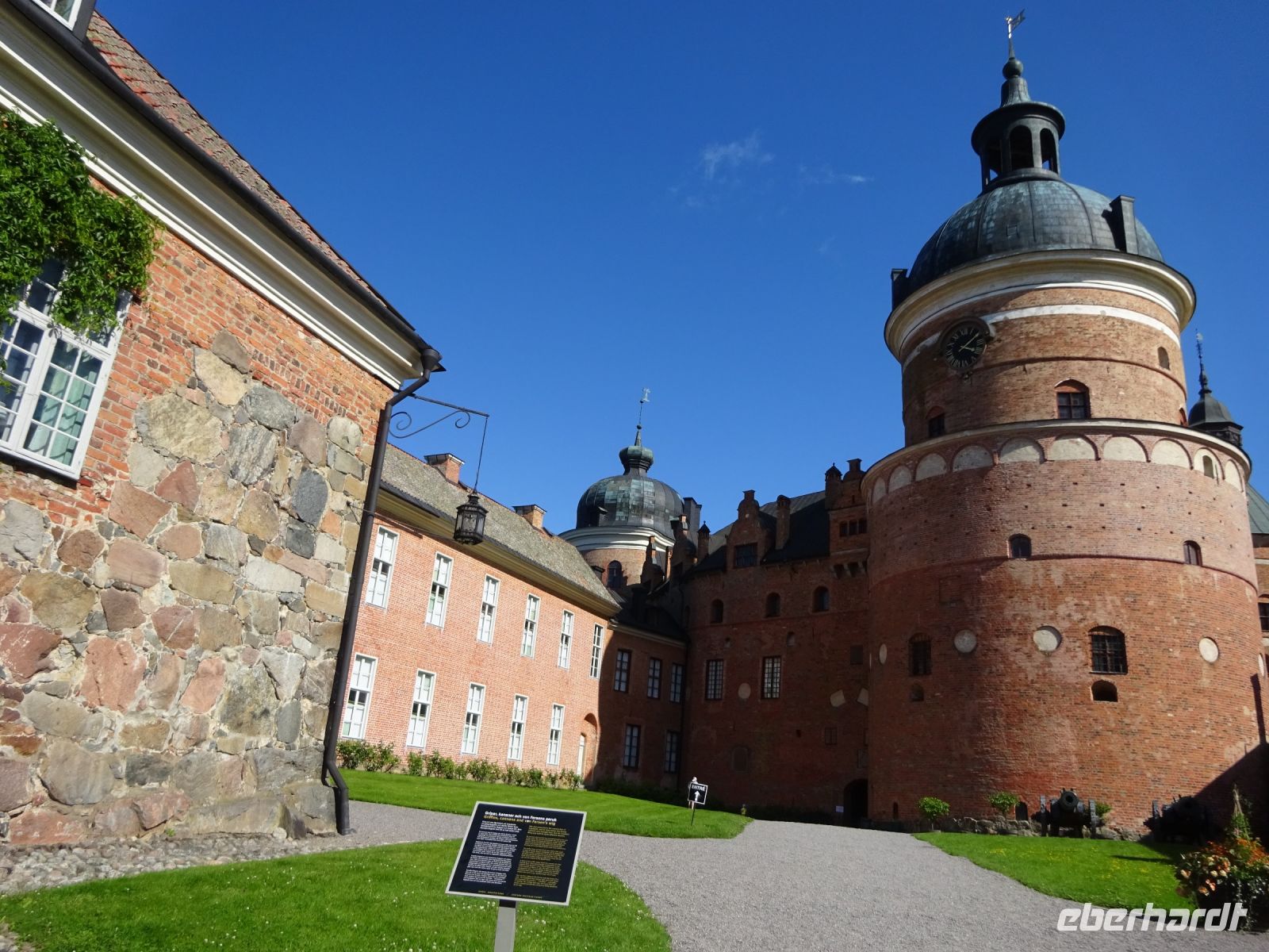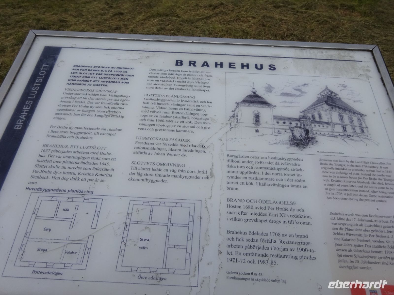 Die Route von Göteborg nach Stockholm, genauer die Südroute der Autobahn, führt durch landschaftlich sehr schöne Gegenden. Ein paar besondere Leckerbissen wollten wir unterwegs genießen. Den Anfang machten wir mit den Ruinen von Brahehus, die einen herrlichen Blick auf den Vätternsee bieten, außerdem mit einem größeren Rasthof verbunden sind, genau das Richtige für eine Busreisegruppe wie uns.