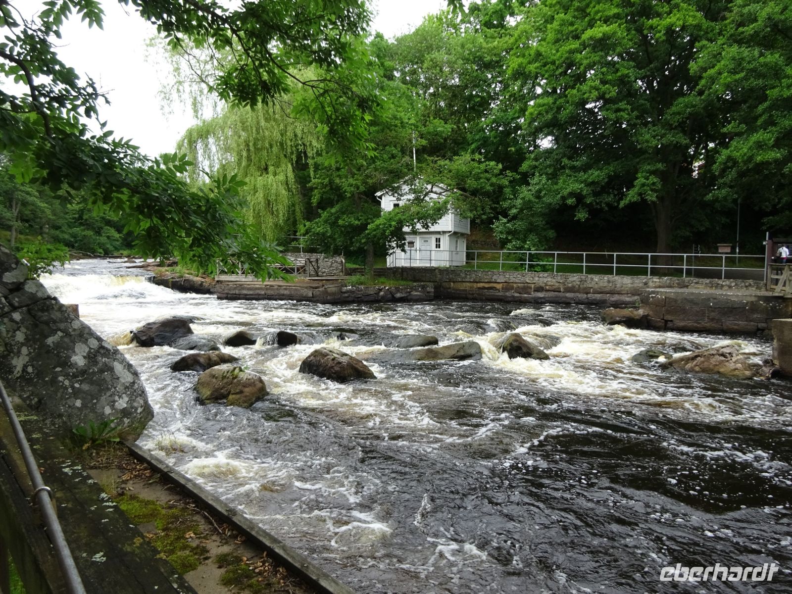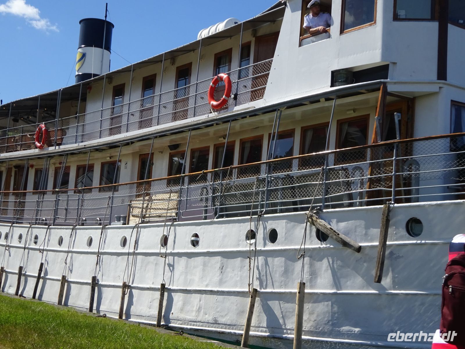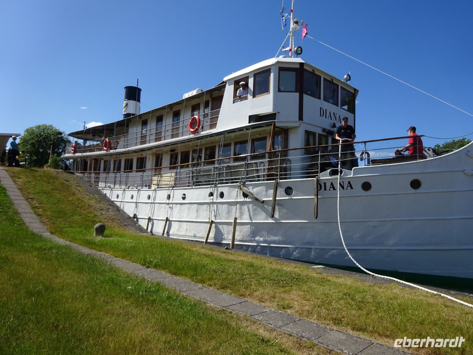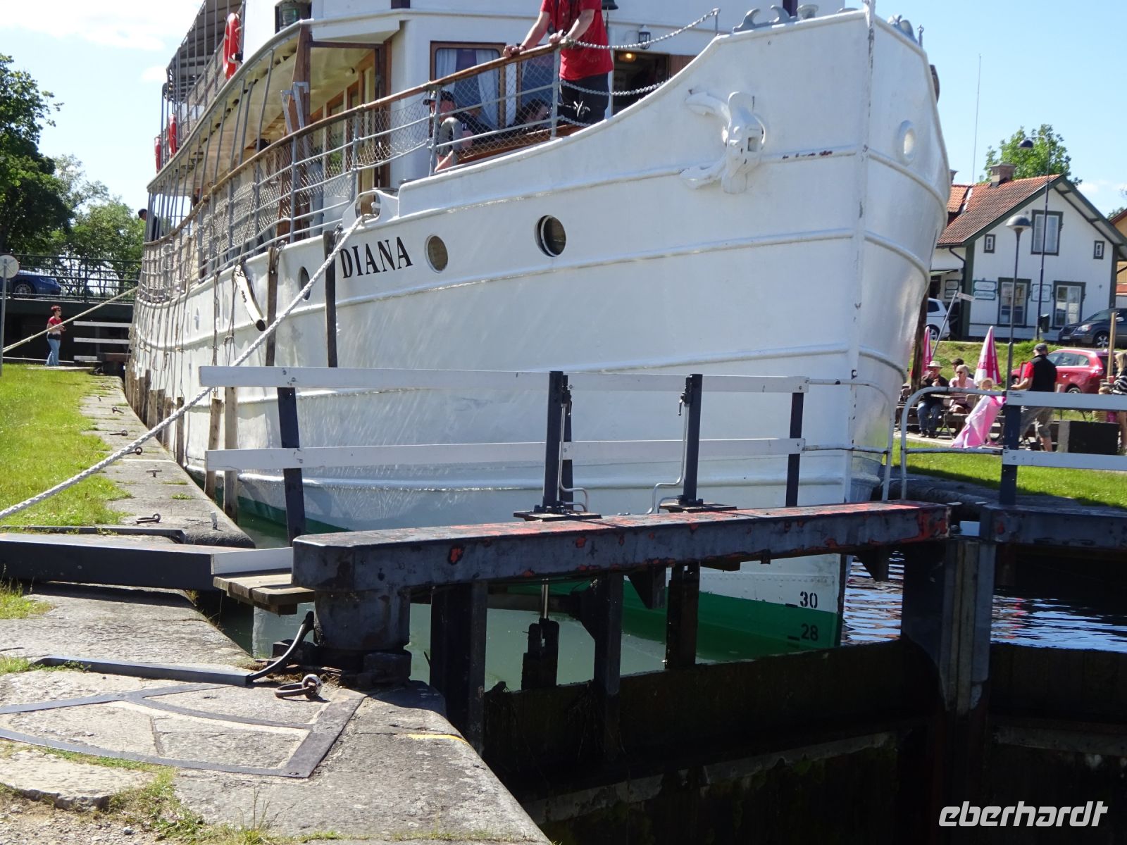 Weiter ging es dann zum wohl größten Runenstein ganz Skandinaviens, nach Rök, einem kleinen Ort, und anschließend noch nach Berg am Götakanal. Hier konnten wir nicht einfach eine ganz normale Schleusung erleben, was schon Attraktion genug gewesen wäre, sondern es erfolgte gerade die Schleusung eines der bekannten Touristenschiffe, die auf dem Götakanal fahren. Wir fühlten uns als echte Glückspilze und waren ganz schön aus dem Häuschen. Da wollte zunächst keiner in den Bus einsteigen. Dazu hatten wir passendes Wetter, d.h. Sonne satt. Also, eine solche Fahrt mit dem Schiff auf dem Götakanal wäre auch mal eine Reise wert, fanden wir übereinstimmend.