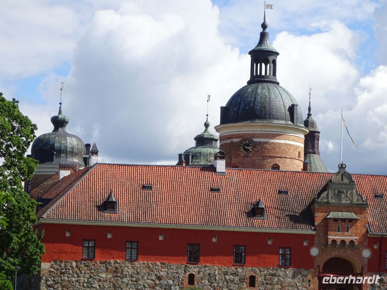 Öland ist auch bekannt für seine historischen Steinwälle und idyllischen Dörfer, für traumhafte Strände, die zahlreiche Urlaubsgäste anziehen, ganz gleich, ob in Hotels, auf Campingplätzen oder in Privatquartieren. Romanische Kirchen gehören ebenfalls zum Bild der Insel. Zum Abschluss unserer Tour machten wir noch Halt am Eingang zum Park des Schlosses Solliden, das die schwedische Königsfamilie als Sommerresidenz hat. Und nebenan liegt noch die Schlossruine Borgholm, der wir ebenfalls einen kurzen Foto-Besuch abstatteten. Wieder war es ein sehr schöner Tag mit einer großen Vielfalt an Sehenswürdigkeiten und Eindrücken. Morgen verlassen wir Kalmar auf dem Landweg. Ziel ist die Stadt Lund, auf die wir auch schon gespannt sind.
