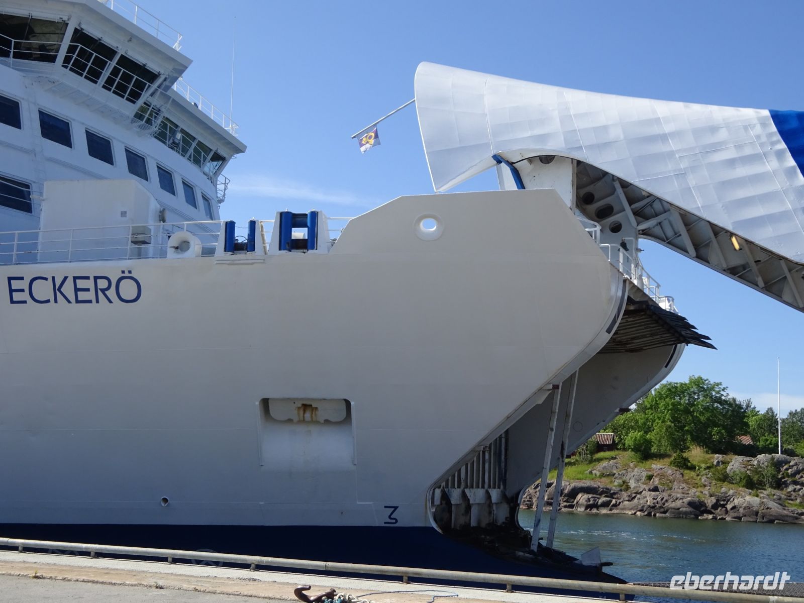 Heute sollten wir einen weiteren Fährhafen kennenlernen, Nynäshamn. Nach dem Frühstück fuhren wir los. Wieder war es die beeindruckende Schärenlandschaft, dieses Mal die von der Hafenausfahrt von Nynäshamn. Wir sind inzwischen ziemlich versierte Fähren-Reisende, lernen aber ständig dazu, denn überall ist es ein wenig anders. Aber wir sind ja lernfähig und sehr flexibel! Und langweilig wird es auf diese Art bestimmt nicht!