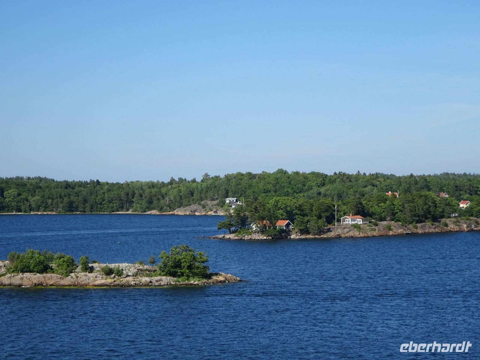 Für heute hatten wir das Frühstück zeitiger bestellt, denn schließlich wollten wir die Fähre nicht verpassen, die uns von Stockholm auf die Åland Inseln nach Mariehamn bringen sollte. Alles klappte prima. Wir waren pünktlich, erledigten die Formalitäten am Fähr-Terminal, schon waren wir auf der Fähre. Ein wenig kannten wir den Fährbetrieb ja schon. So ein Vormittag auf See ist nicht zu verachten. Wir genossen die Seeluft, die Sonne, natürlich auch die herrliche Aussicht. Die Zeit verging schnell. Es gab auch viel zu sehen. Zwischen Schweden und Finnland liegen über 6.500 Inseln und Inselchen.