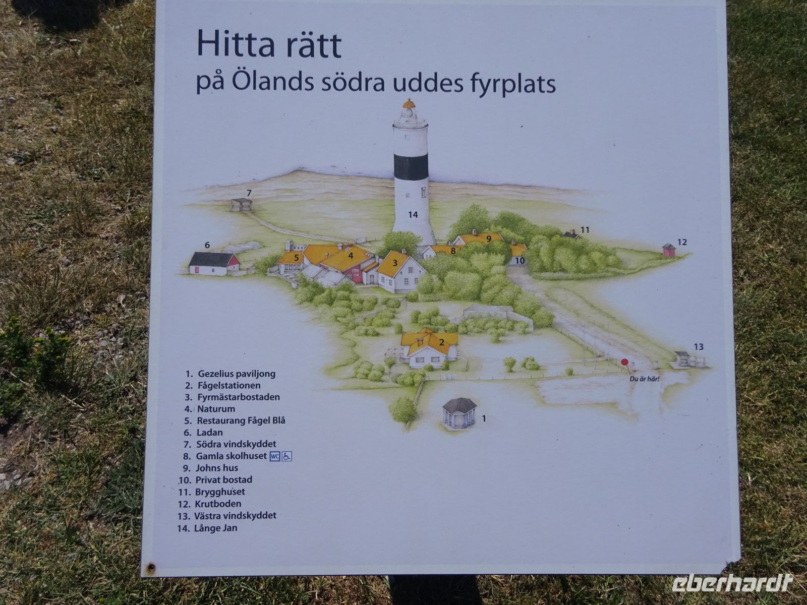 Zunächst sahen wir uns das Gräberfeld von Gettlinge an, weiter ging es zur Südspitze Ölands, Richtung Ottenby. Aus der Ferne sahen wir schon den Leuchtturm, den Langen Jan. Er ist um die 42 Meter hoch. Von oben geht der Blick weit übers Land und übers Wasser. Informationstafeln berichten mehrsprachig über die Besonderheiten von Flora und Fauna.