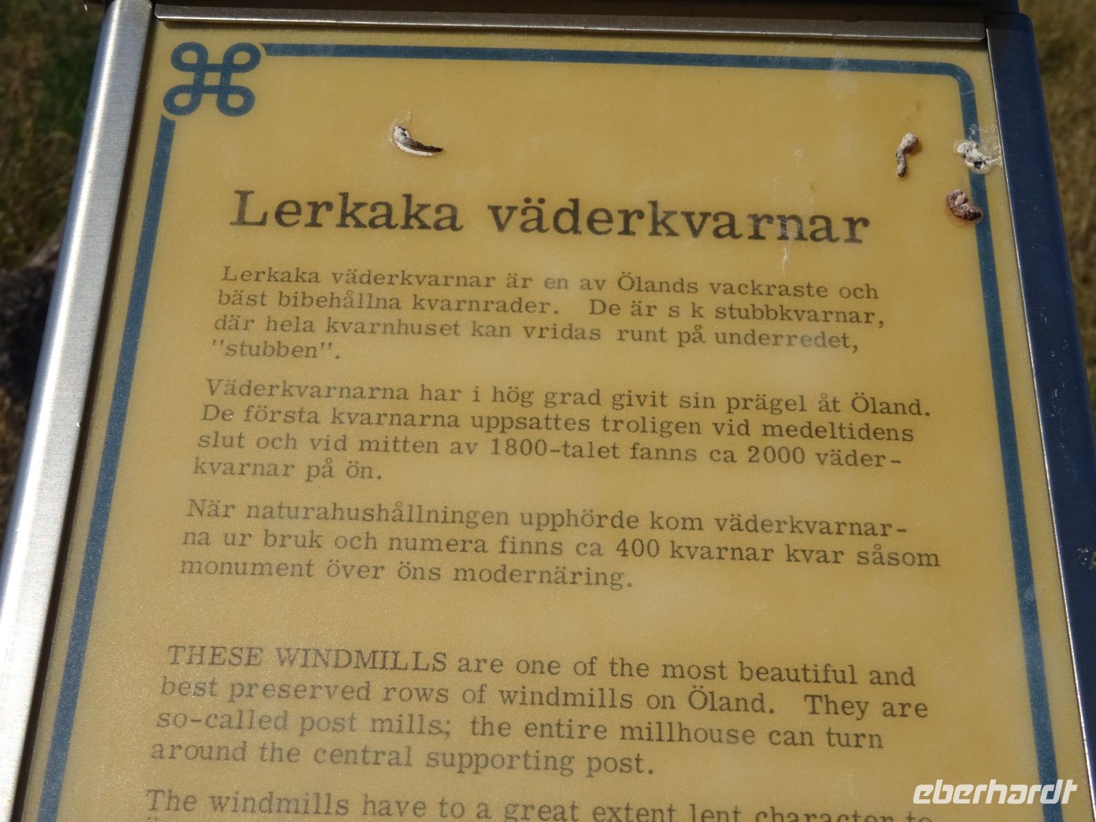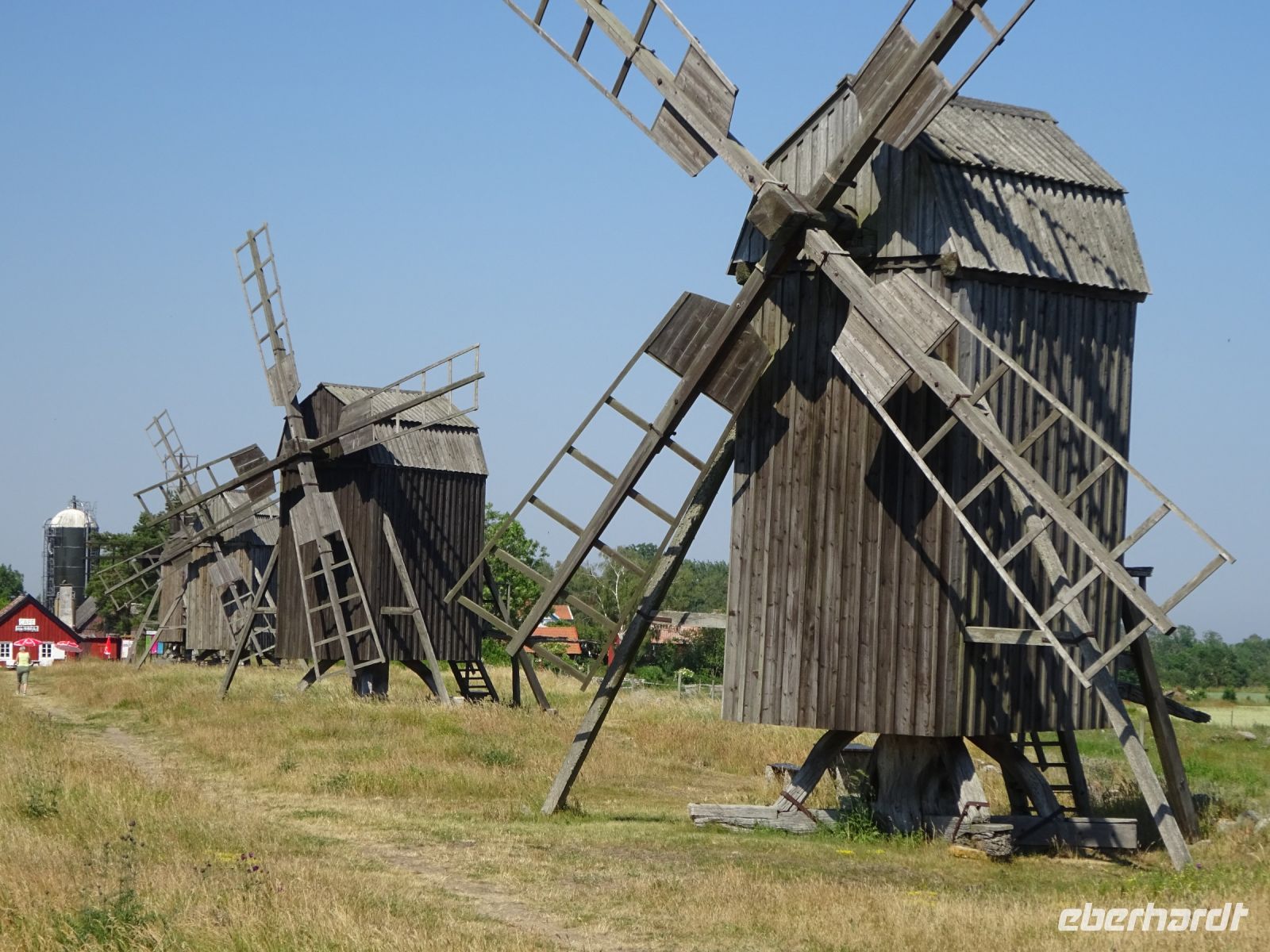 Und es sind auf Öland weitere Besonderheiten zu nennen: Windmühlen zeugen von der Nutzung der Windkraft auf der flachen Insel und sind sogar zum Wahrzeichen Ölands geworden. In Lerkaka, wo gleich 5 Windmühlen in Reih und Glied stehen, legten wir den nächsten Foto-Stopp ein.