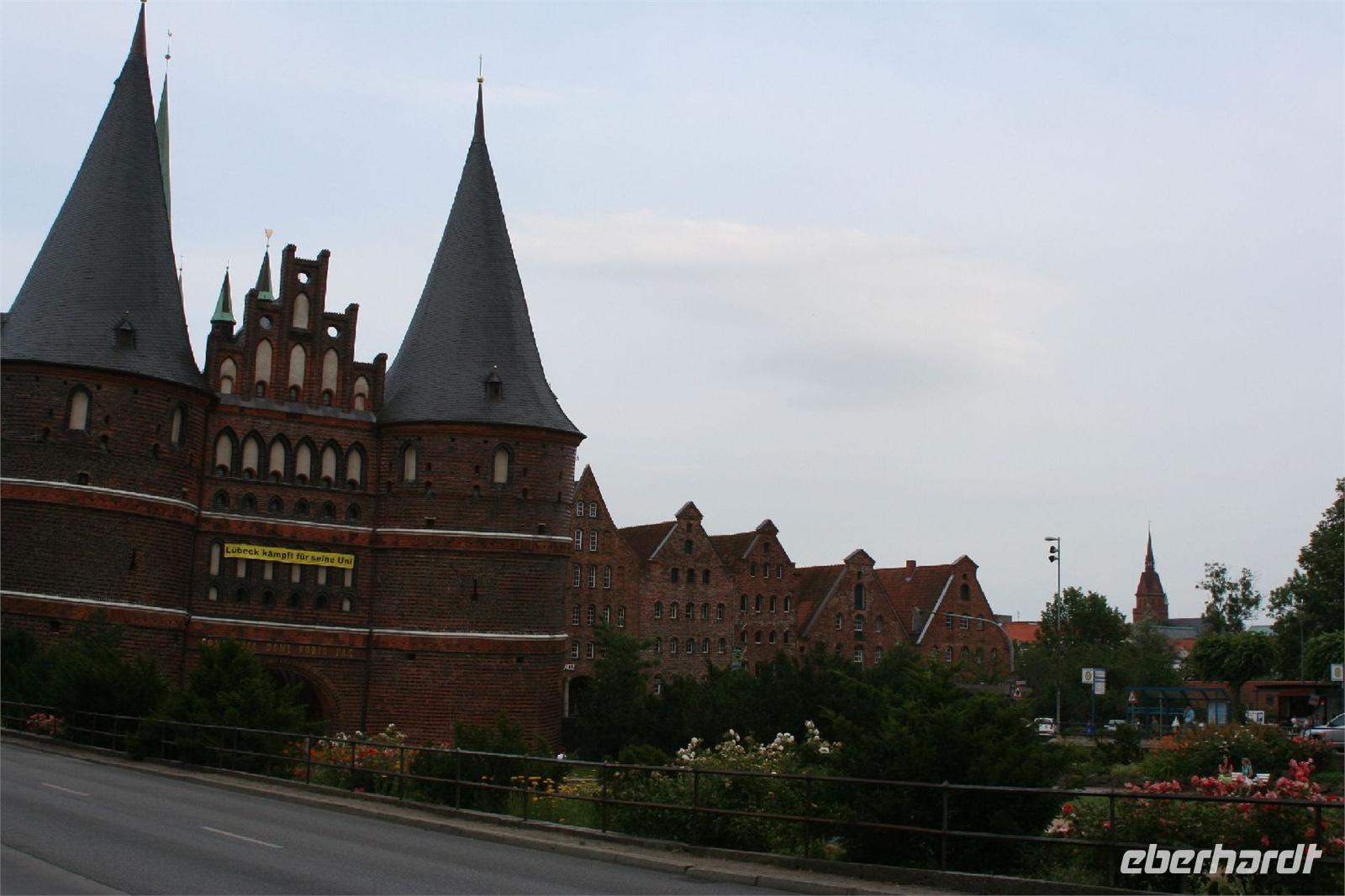 Nach heftigen Gewittergüssen in den frühen Morgenstunden starteten wir pünktlich 11 Uhr von Dresden bei wieder hochsommerlichen Temperaturen mit Claudia Bernhardt und Annett Mueller, unserer Eberhardt-Reiseleitung und unserem Busfahrer Rene von Hohlfeldt. In Döbeln und Leipzig begrüßten wir weitere Reisegäste, bis wir in Wolfslake mit 46 gut gelaunten Gästen die Reise, nun komplett, im gut klimatisierten Reisebus nach Lübeck aufnahmen. Wir kamen zügig voran, unsere Reiseleiterin Claudia bereicherte die Fahrt mit kleinen Geschichten und Wissenswerten rechts und links der Strecke. Kurz vor Gudow steckten wir im Stau! Wir befürchteten schon, unsere Fähre zu verpassen. Unsere Stoßgebete wurden aber erhört und nach 30 Minuten konnten wir die Fahrt nach Lübeck fortsetzen. Im altehrwürdigen Ratskeller der Hansestadt erwartete uns noch ein vorzügliches Abendmahl. Wir wurden freundlich und schnell bedient. Unser "Verdauungsspaziergang" führte uns am Holstentor vorbei, wo Rene mit dem Bus schon wartete.