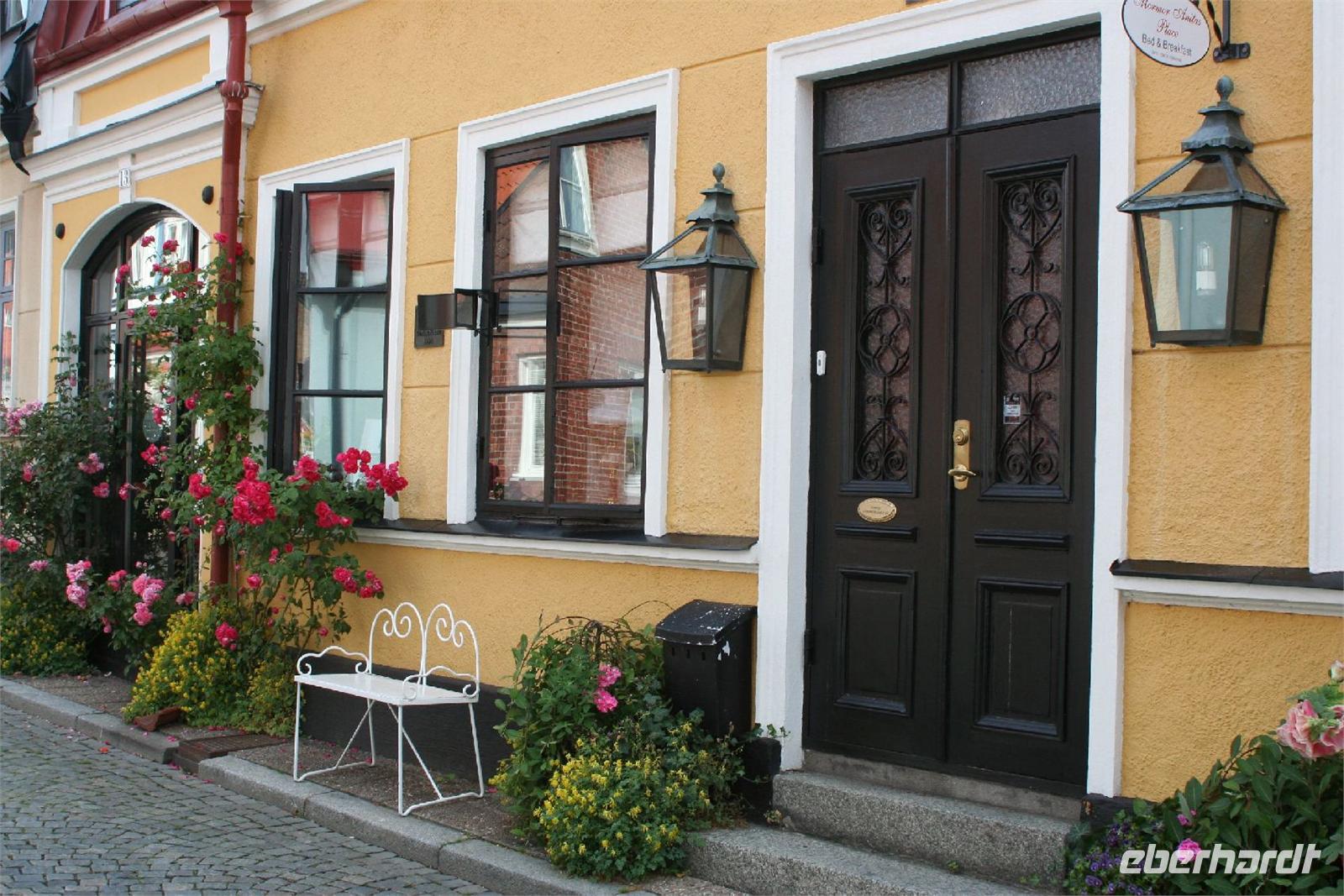 Auf unterhaltsame und spannende Weise begleitete uns Britt durch die beschauliche Kleinstadt. Ob Haus Nr. 13, der Schrebergarten dahinter oder die Konditorei - alles „Tatorte" des eigenwilligen Kommisars Kurt Wallander. Die freundlichen Einwohner nahmen es gelassen, als wir hin und wieder deren Hauseingänge blockierten und in ihre Fenster schauten. Nicht nur Krimifans kamen beim Spaziergang durch Ystad auf ihre Kosten. Wir erfreuten uns an der Blumenpracht vor den wunderschönen Fachwerkhäusern und besichtigten die Kirche St. Marien sowie das alte Kloster. Im duftenden Rosengarten pausierten wir, bevor wir weiter durch die Provinz Blekinge und Smaland fuhren.
