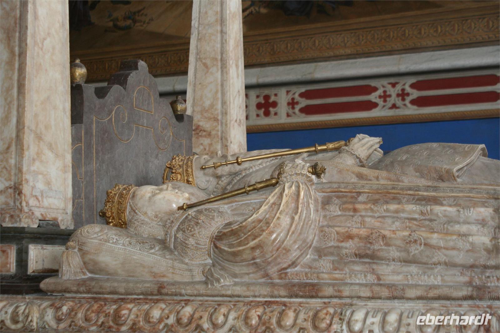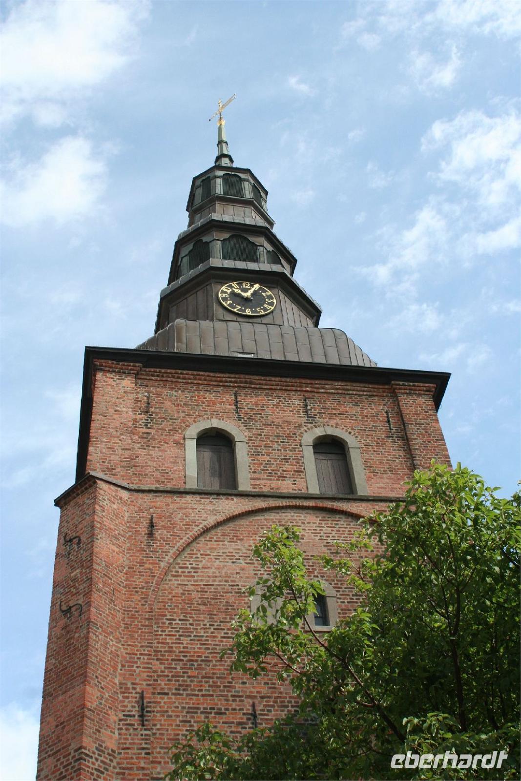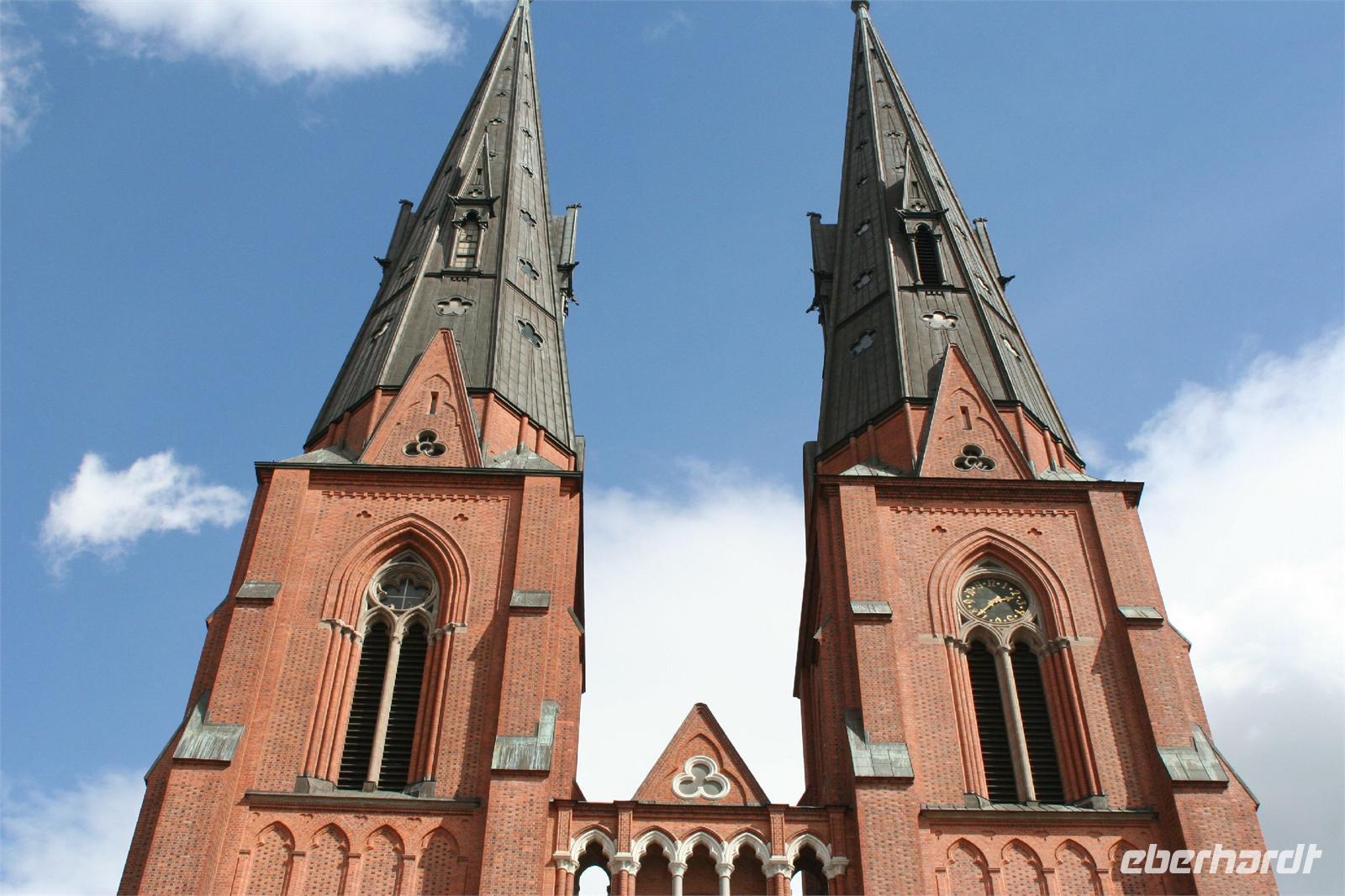 Am Nachmittag fuhren wir in die Universitäts- und Residenzstadt Uppsala. Unsere, in Rot "behütete" Stadtführerin Osa erwartete uns am Dom, der größten Kathedrale des Nordens. Die 119 m hohen Doppeltürme bestimmen das Stadtbild. Im Inneren befinden sich das prunkvolle Grabdenkmal Gustav Vasas mit zwei seiner Frauen und das Grabmal von Johan III., dessen Bildhauer ihm ein zweites rechtes Bein statt des linken schenkte.