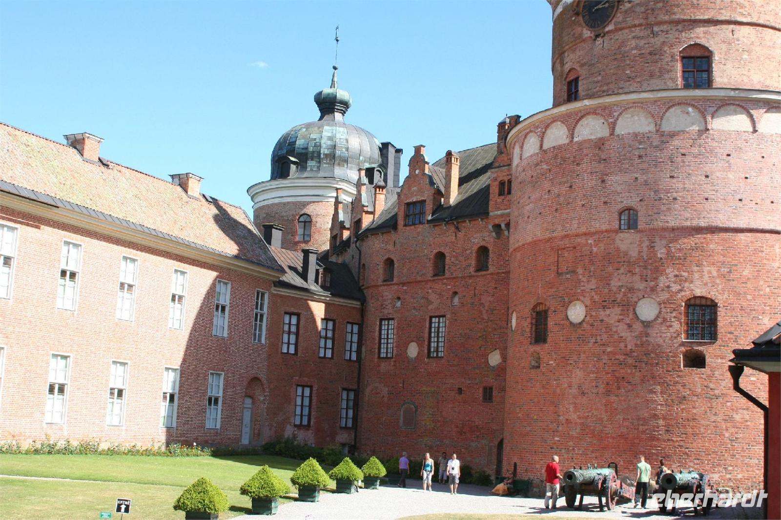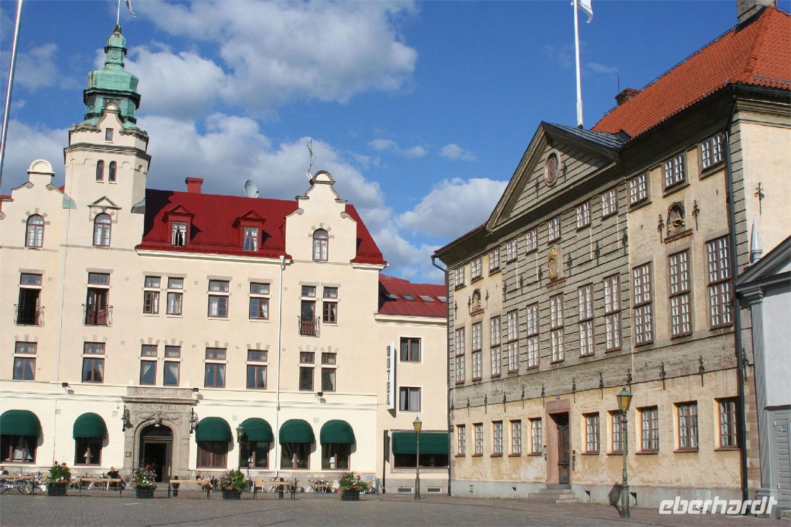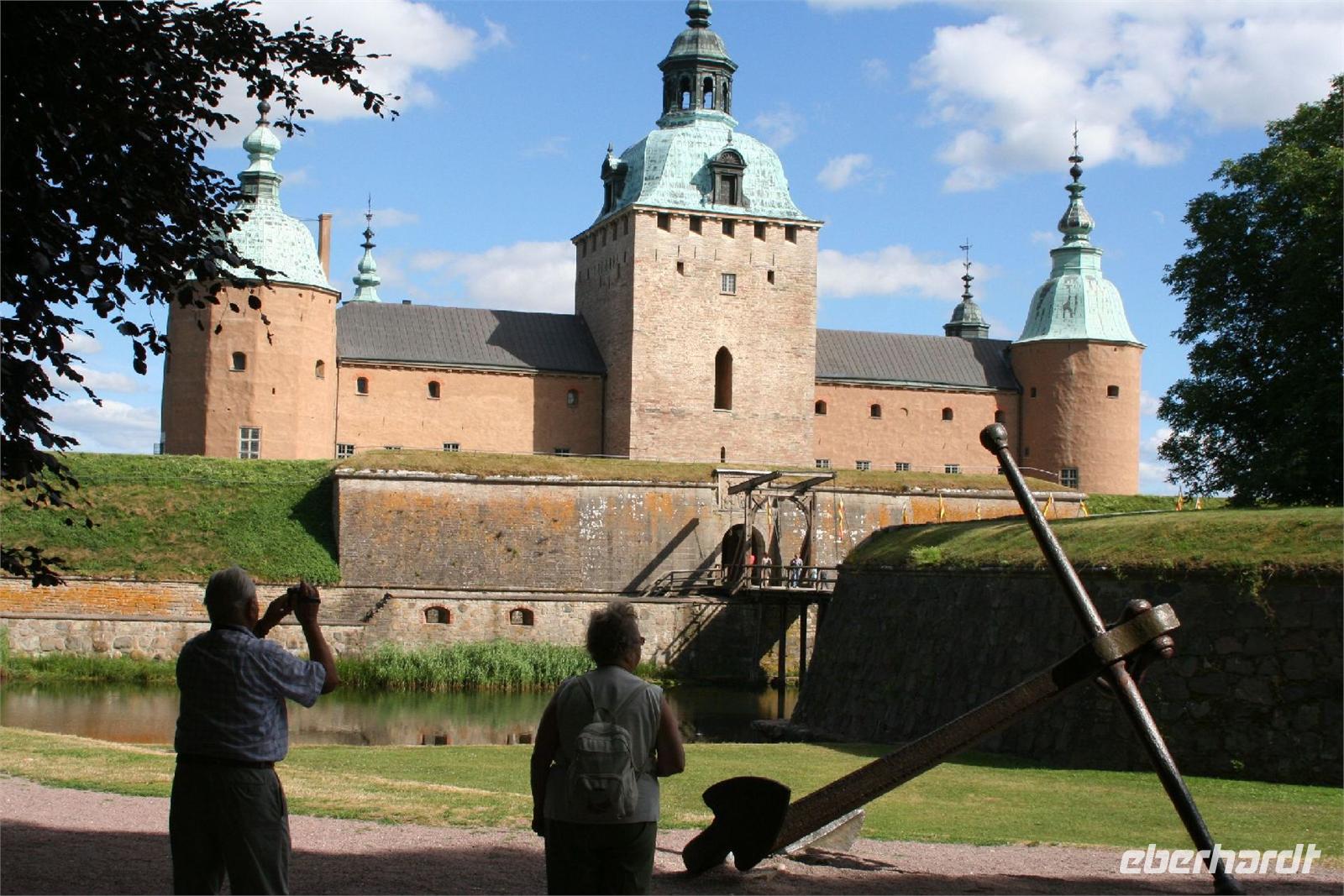 Am Nachmittag erreichten wir Kalmar, eine der ältesten Städte Schwedens. Die Stadt verbindet eine 6 km lange Autobahnbrücke über den Kalmarsund mit der Insel Öland. Bevor wir im Best Western Hotel eincheckten, besichtigten wir das Kalmarer Schloss, wo 1397 die Kalmarer Union geschlossen wurde, die vorübergehend alle skandinavischen Reiche vereinte. Später entstand daraus ein Vasaschloss mit den typischen vier runden Ecktürmen. Zum Abendessen wurde uns ein 3-Gang-Menü an gedeckten Tischen serviert, welches viele unserer Gruppe als angenehm empfanden, obwohl es bei einer großen Reisegruppe etwas länger dauert. Über die heftigen Getränkepreise, besonders alkoholische, waren wir bereits informiert. Dennoch: 4 bis 5 € für ein, für uns normales Bier mit 3,5 % (starköl) - daran mußten wir uns erst gewöhnen. Das Alkoholmonopol ist in Schweden fest in staatlicher Hand. Getränke mit einem Alkoholgehalt über 3,5 % werden hoch besteuert und nur im Systembolaget (staatlicher Alkoholladen) verkauft oder in Restaurants mit Lizenz ausgeschänkt. Dennoch hatten wir nicht den Eindruck, dass die hohen Preise die Schweden vom Alkoholkonsum abschrecken. Erschwinglich im Preis sind dagegen die einheimischen Biere mit unter 3,5 % (Lattöl = Leichtbier), welche aber dem deutschen Bierliebhaber Tränen in die Augen schiessen lassen. Ein abendlicher Bummel führte einige Gäste zum Marktplatz, wo sich der gewaltige Dom erhebt. Erhaben ertönten die Kirchglocken und läuteten ein kleines Orgelkonzert im Dom ein. Anschließend schlenderten wir zum Hafen und genossen maritime Gemütlichkeit noch bis in den späten Abend. 22 Uhr ist es noch erstaunlich hell und man vergißt die Zeit.