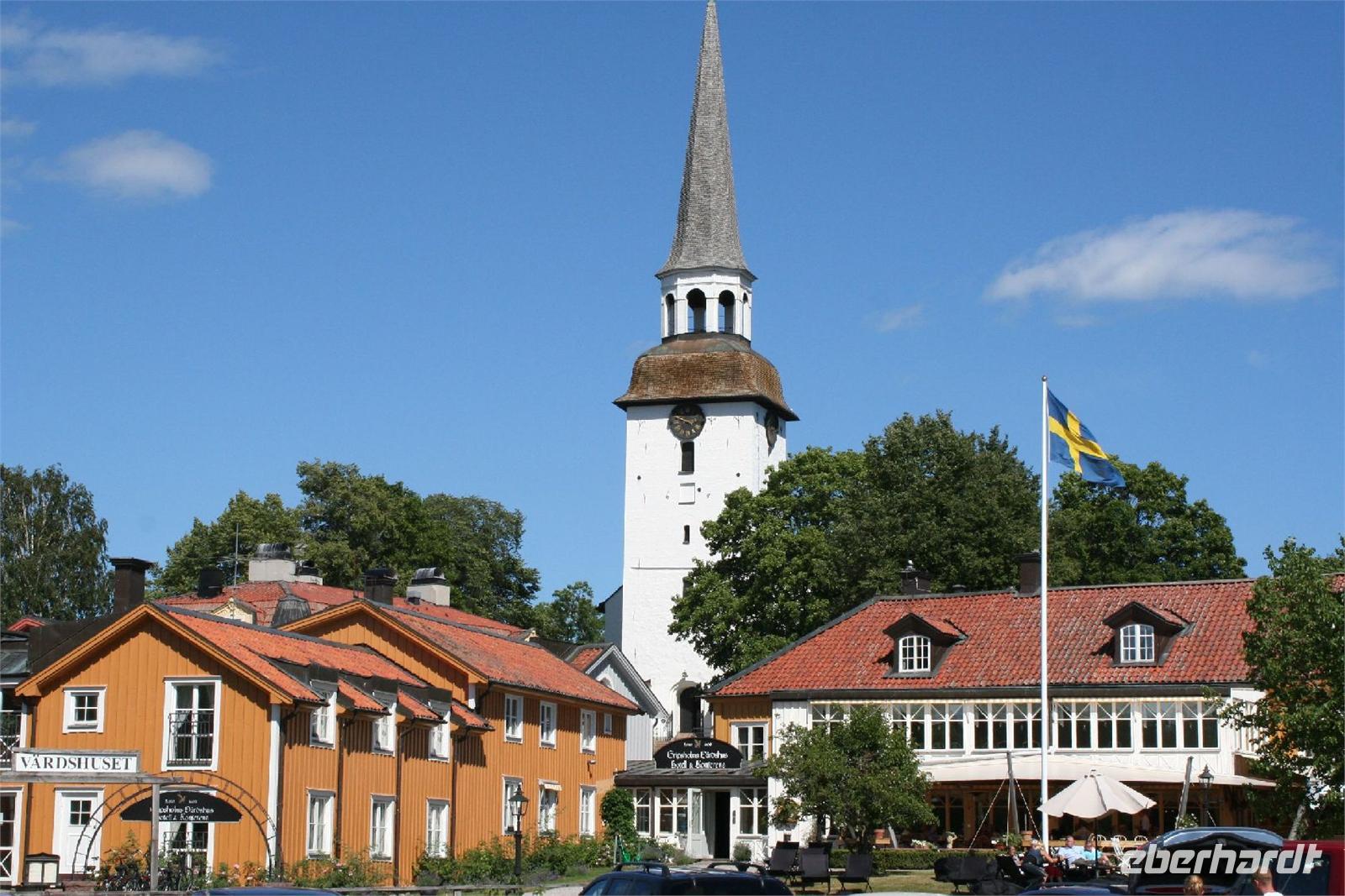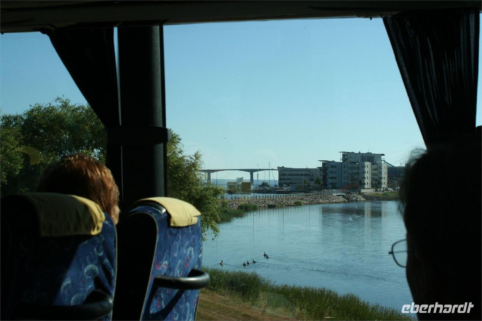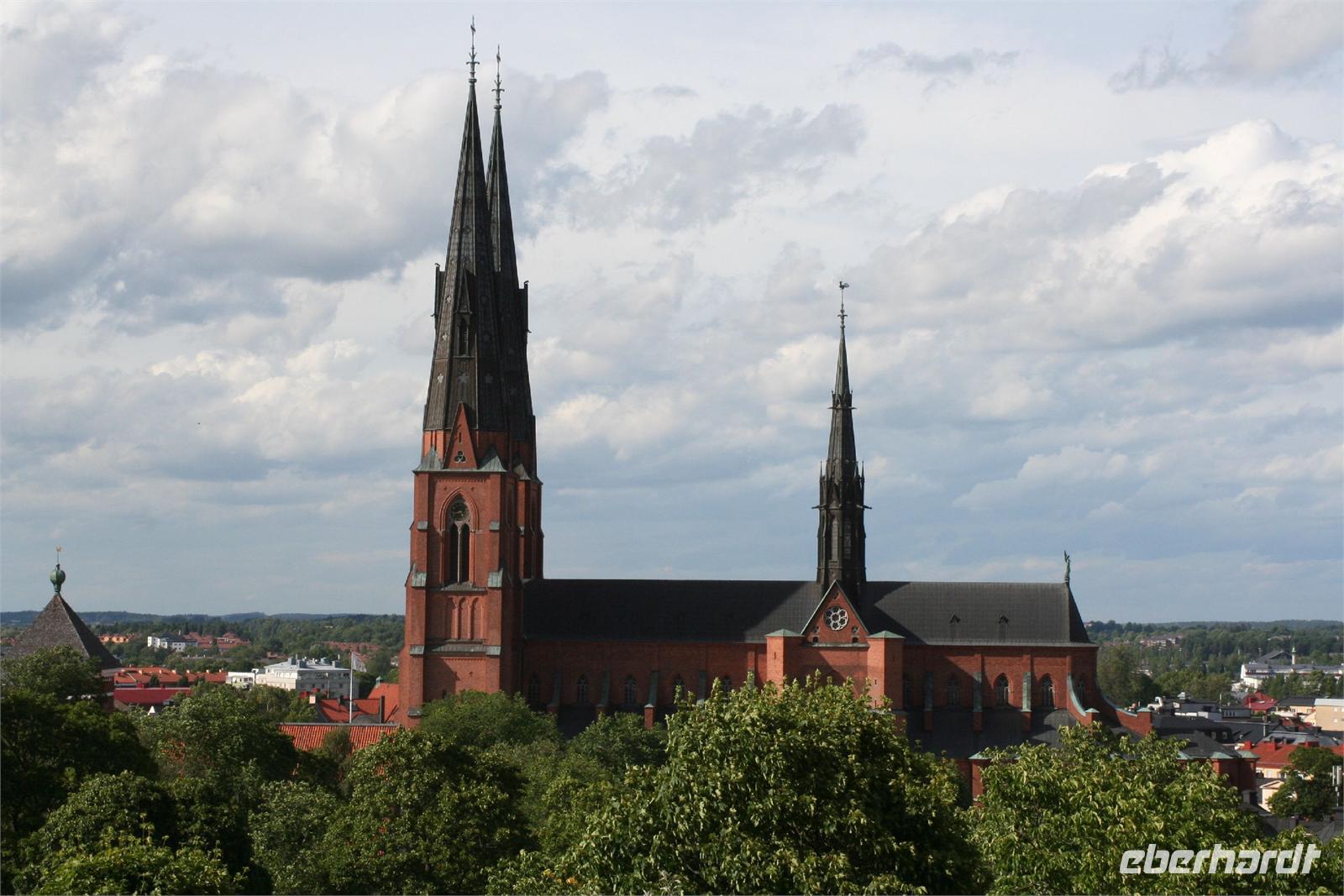 5 km von Uppsala entfernt liegt Gamla Uppsala (Alt-Uppsala). Hier befinden sich viele Königsgrabhügel, Relikte aus der Wikingerzeit. Gleich daneben steht die älteste Domkirche Uppsalas. Die Legende erzählt, dass diese schlichte Kirche Ende des 11. Jahrhunderts erbaut und erst 100 Jahre später zum schwedischen Bischofssitz erhoben wurde. Unter der Kirche fanden Forscher Reste von Holzbauten, die auf einen Kultplatz altnordischer Religion bis zum Bau der Kirche hindeuten, Beweise eines Odinstempels fanden sie aber noch nicht. Wir aber fanden in dieser Einöde einen "alten Schweden", den wir zum "unfreundlichsten" Schweden kürten! Es blieb aber der Einzigste auf unserer Reise, ansonsten begegneten wir immer freundlichen und aufgeschlossen Menschen. Auf der höchsten Erhebung von Uppsala befindet sich das Vasa-Schloss aus dem 16. Jahrhundert. In den Gemäuern wurden nicht nur zahlreiche Krönungen vollzogen, die bekannteste ist sicher die von Gustav II. Adolf, sondern Schwedens berühmteste Königin Kristina gab hier ihre Krone zurück als sie zum katholischen Glauben konvertierte. Von der Aussichtsterrasse blickten wir noch einmal auf den Dom, bevor wir nach Stockholm zurückkehrten. Zu Abendessen begrüßten wir eine weitere Eberhardt-Gruppe, die im Hotel einen Zwischenstopp auf ihrer Reise zum Nordkap einlegte.