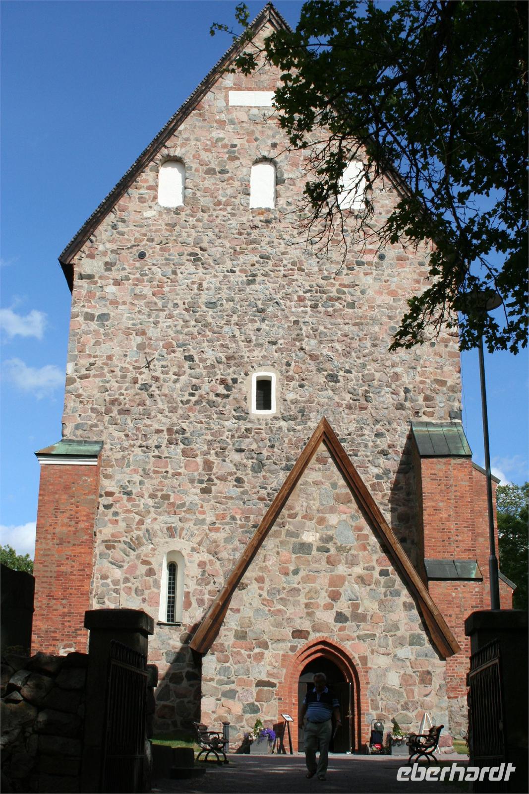 Die Kirche aus dem 11. Jahrhundert ist die älteste Kirche Finnlands. Fasziniert waren wir von den Fragmenten alter Wandgemälde, die der Kirche eine schlichte Schönheit verleihen. Oben an der Decke im Turmgewölbe blickt ein hölzerner Kopf herab. Etwa um 1185 aus alandischer Kiefer geschnitzt, zählt er zu den ältesten Holzskulpturen Finnlands. Die außergewöhnliche Akustik der Kirche konnten wir beim gemeinsamen Gesang "Am Brunnen vor dem Tore" hautnah erleben.