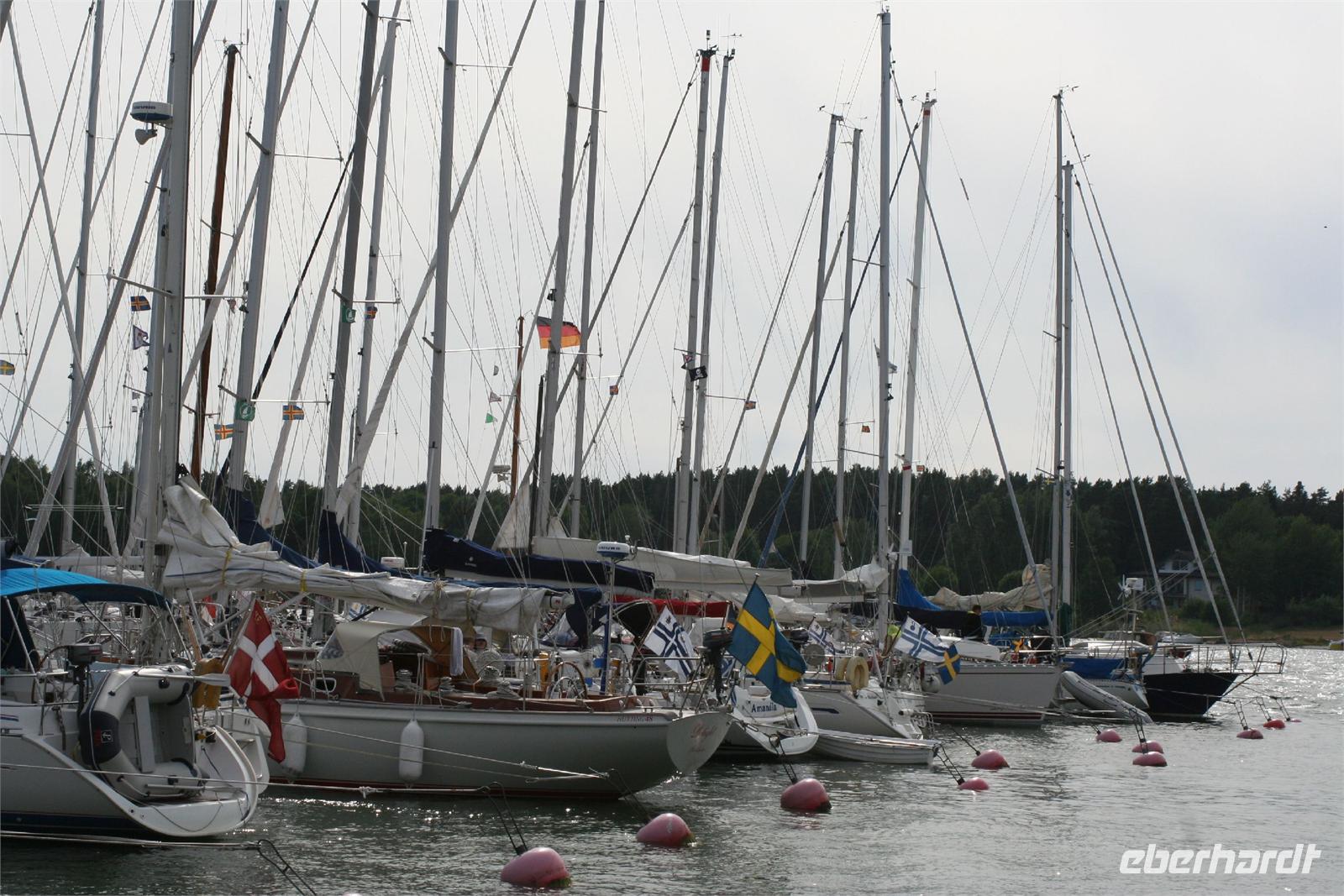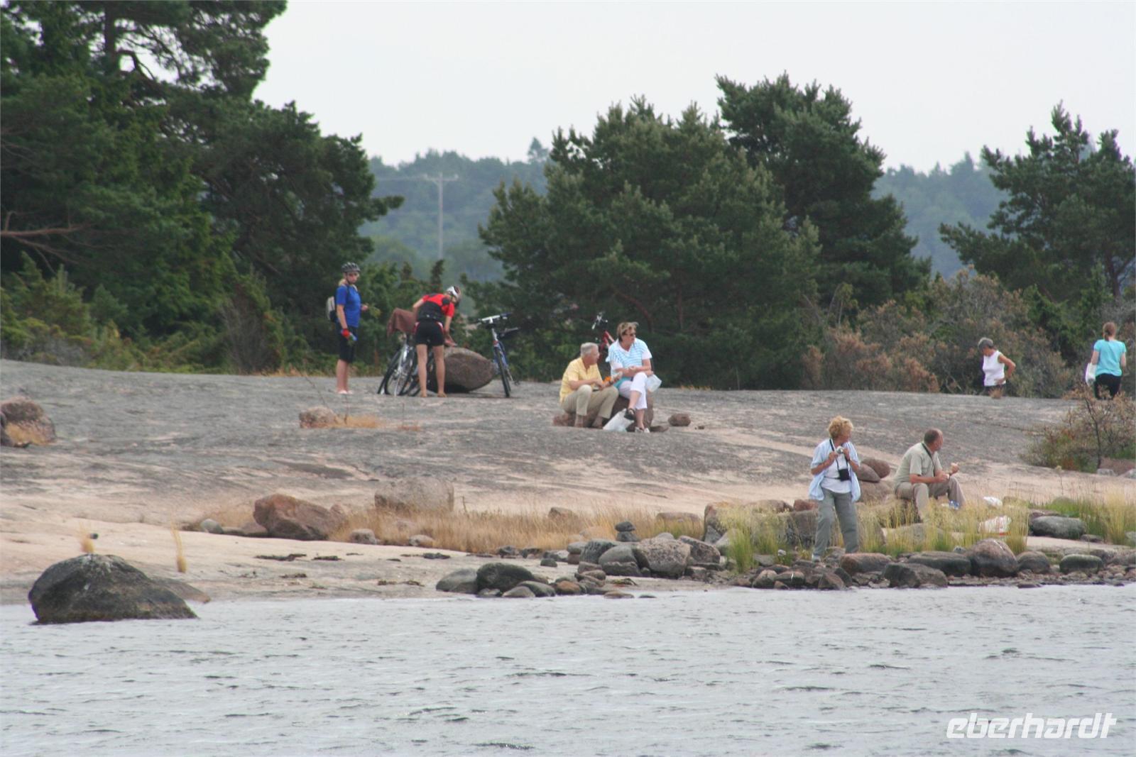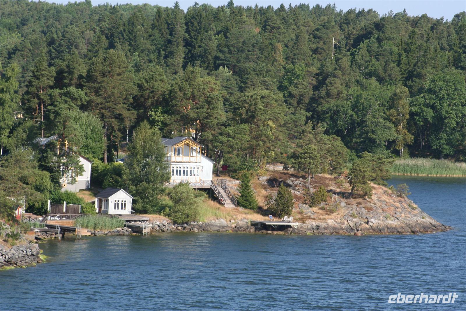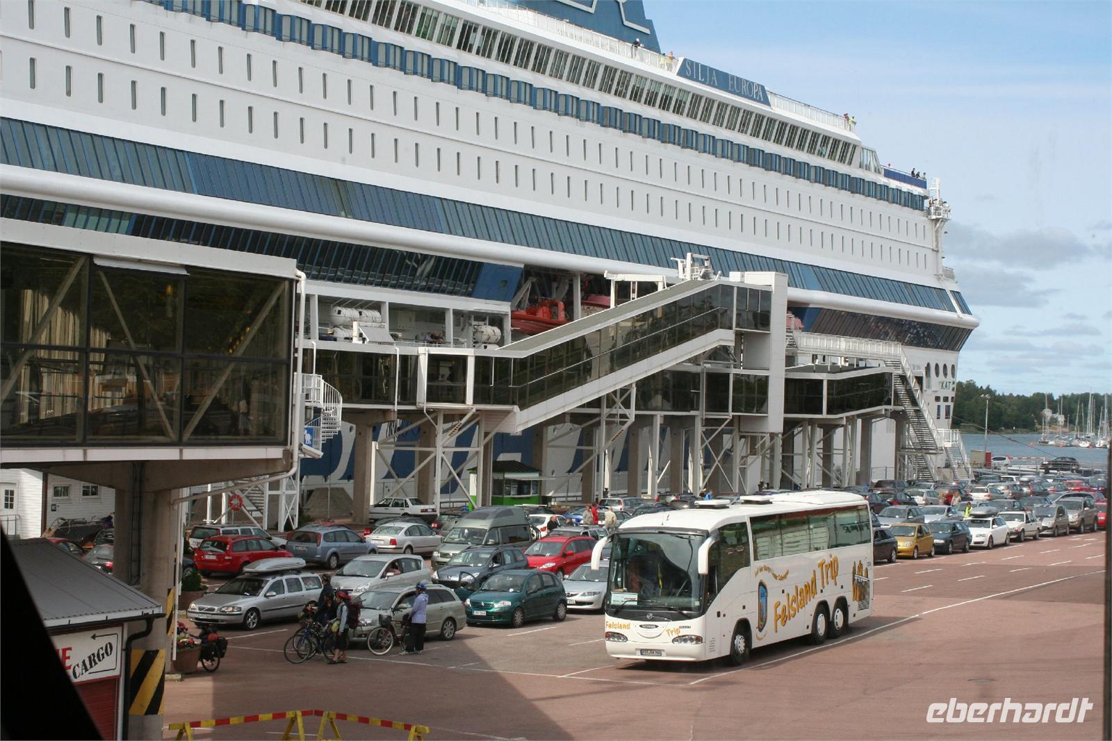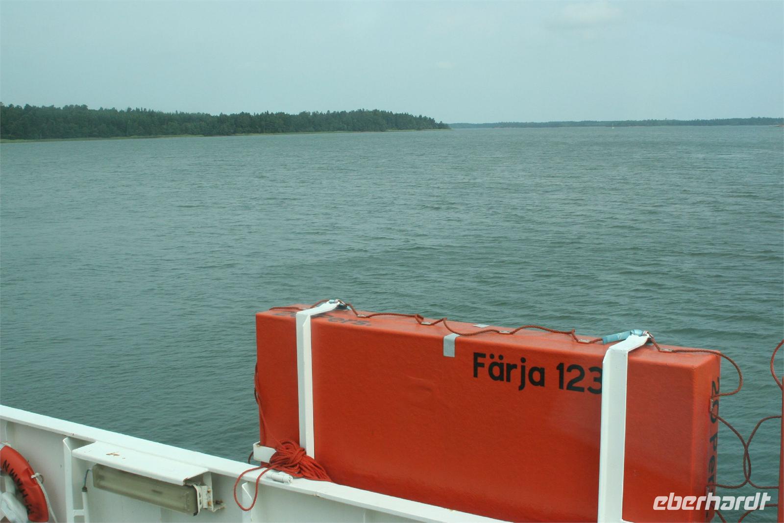 Heute klingelte sehr früh der Wecker bzw. der Fernseher machte Krach (moderner Weckruf durch TV). 5:30 Uhr wünschten wir uns in der Lobby einen müden "Guten Morgen". Kaffee und Tee standen uns als kleiner Wachmacher zur Verfügung und ein Frühstückspaket für jeden war gepackt. Eine kurze Busfahrt brachte uns zum Fährhafen, wo wir auf die "Isabella" der Viking Line eincheckten. Eine 6-stündige Schifffahrt durch die Stockholmer Schären stand auf unserem Programm. Die finnischen Aland-Inseln waren unser heutiges Ziel - erstmalig im Eberhardt-Reiseprogramm, also Premiere! Diese interessante Reiseroute findet man sehr selten in Katalogen und war für viele Gäste das überzeugende Argument, diese Reise zu wählen. Nach einem zusätzlichen, äußerst ausgiebigen und entspannten Frühstücksbuffet an Bord begann unsere fantastische Reise durch die Schären (Inseln).