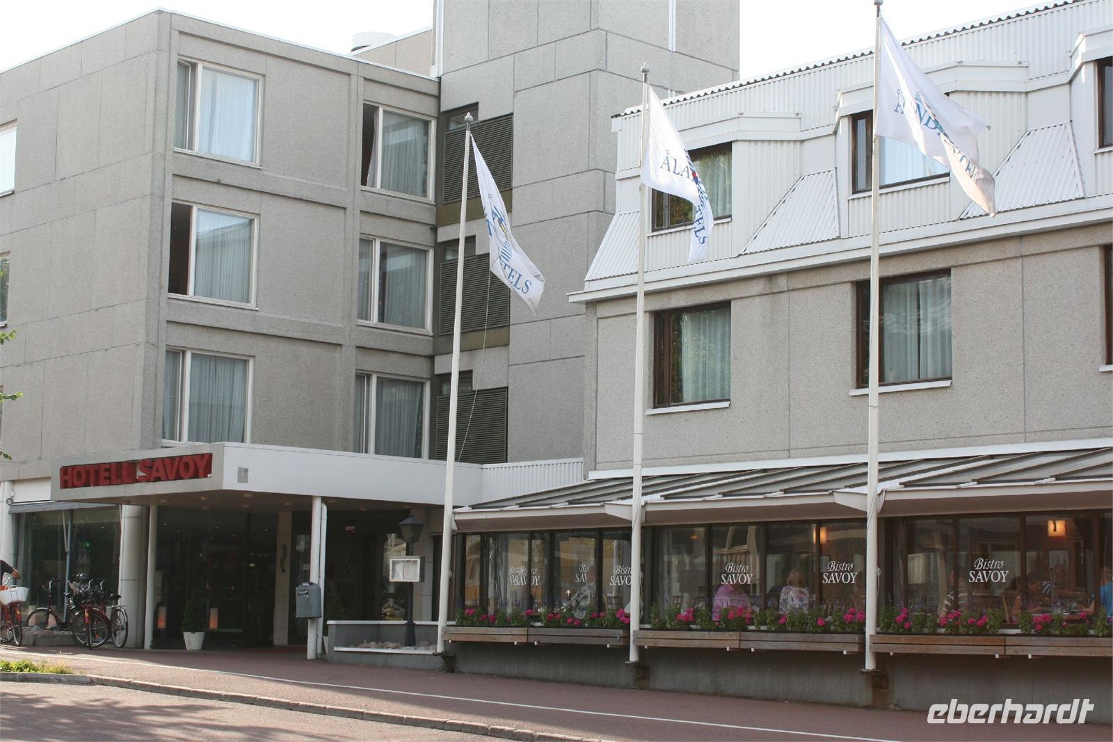 Im Westhafen liegt das Museumsschiff "Pommern", welches wir besichtigten. Es ist das letzte 4-mastige Frachtsegelschiff, das in seinem ursprünglichen Zustand noch erhalten ist. Landschaftlich einzigartig ist Aland für den internationalen Tourismus noch ein "exotisches" Reiseziel. Die Hotelauswahl ist entsprechend überschaubar, es gibt nur 2 Hotels, die für Gruppen geeignet sind. Wir bezogen unsere Zimmer im Hotel "Savoy", direkt im Zentrum von Mariehamn. Durch die außergwöhnlichen, hochsommerlichen Temperaturen waren unsere Zimmer "aufgeheizt", so dass wir zunächst den Ventilator in Bewegung setzen mußten. Das Abendessen wurde uns im Restaurant serviert.