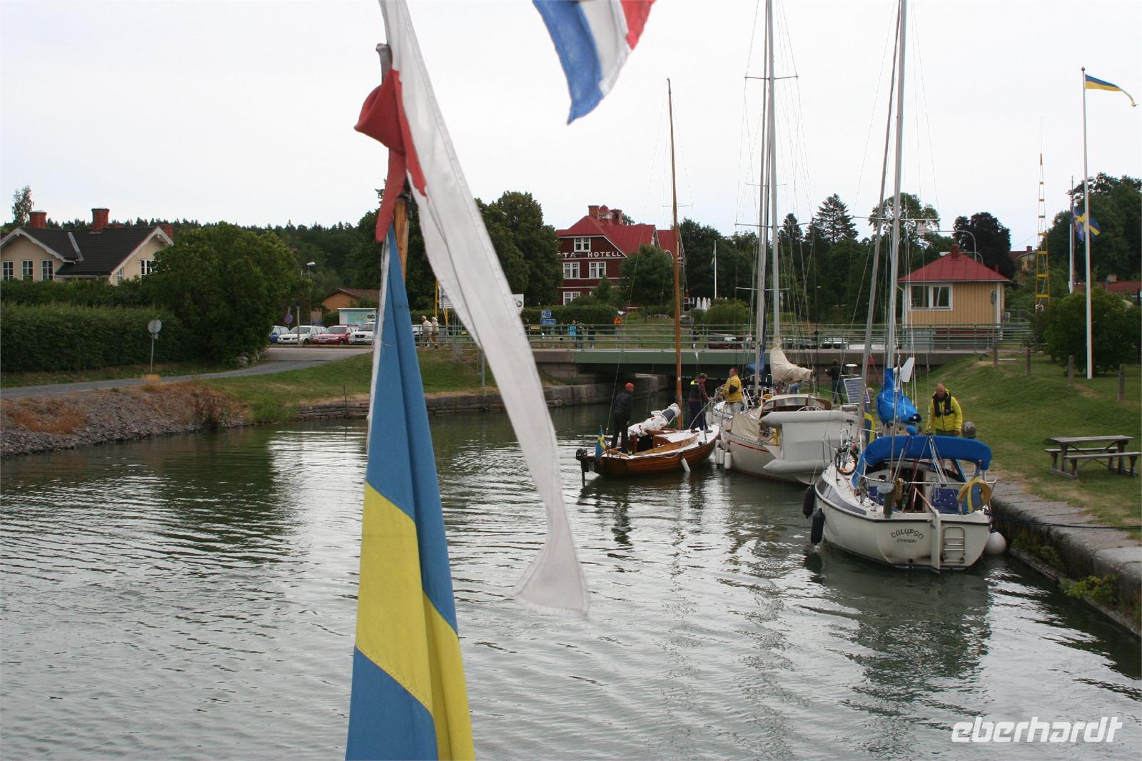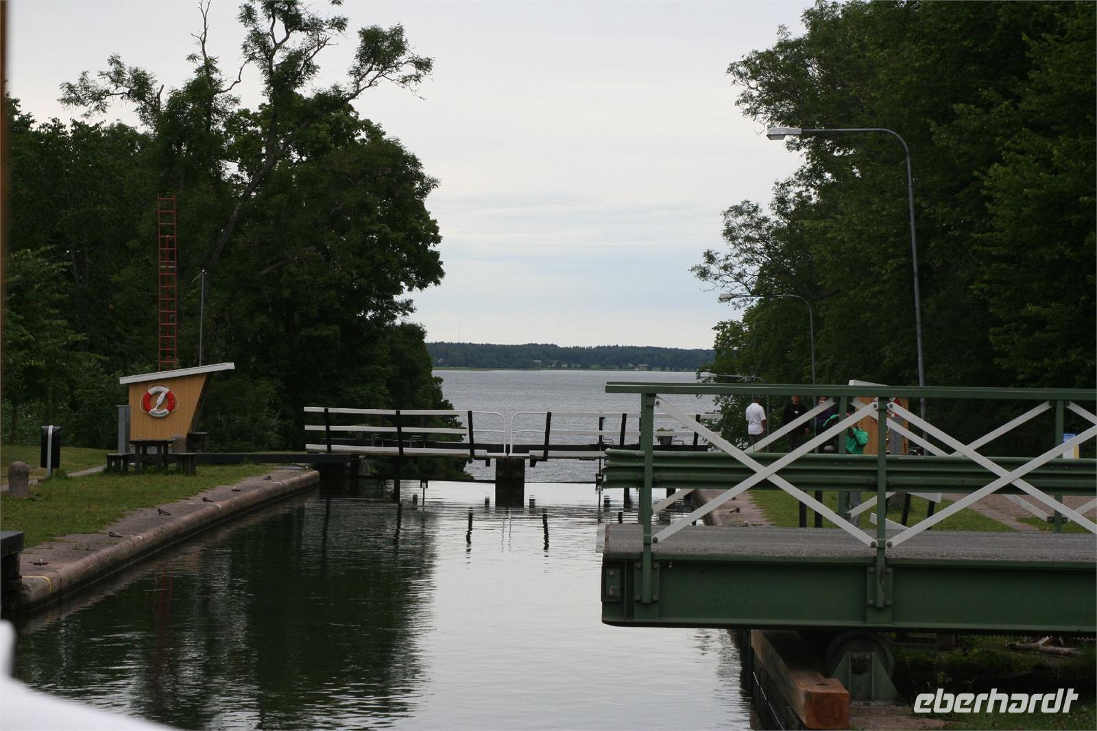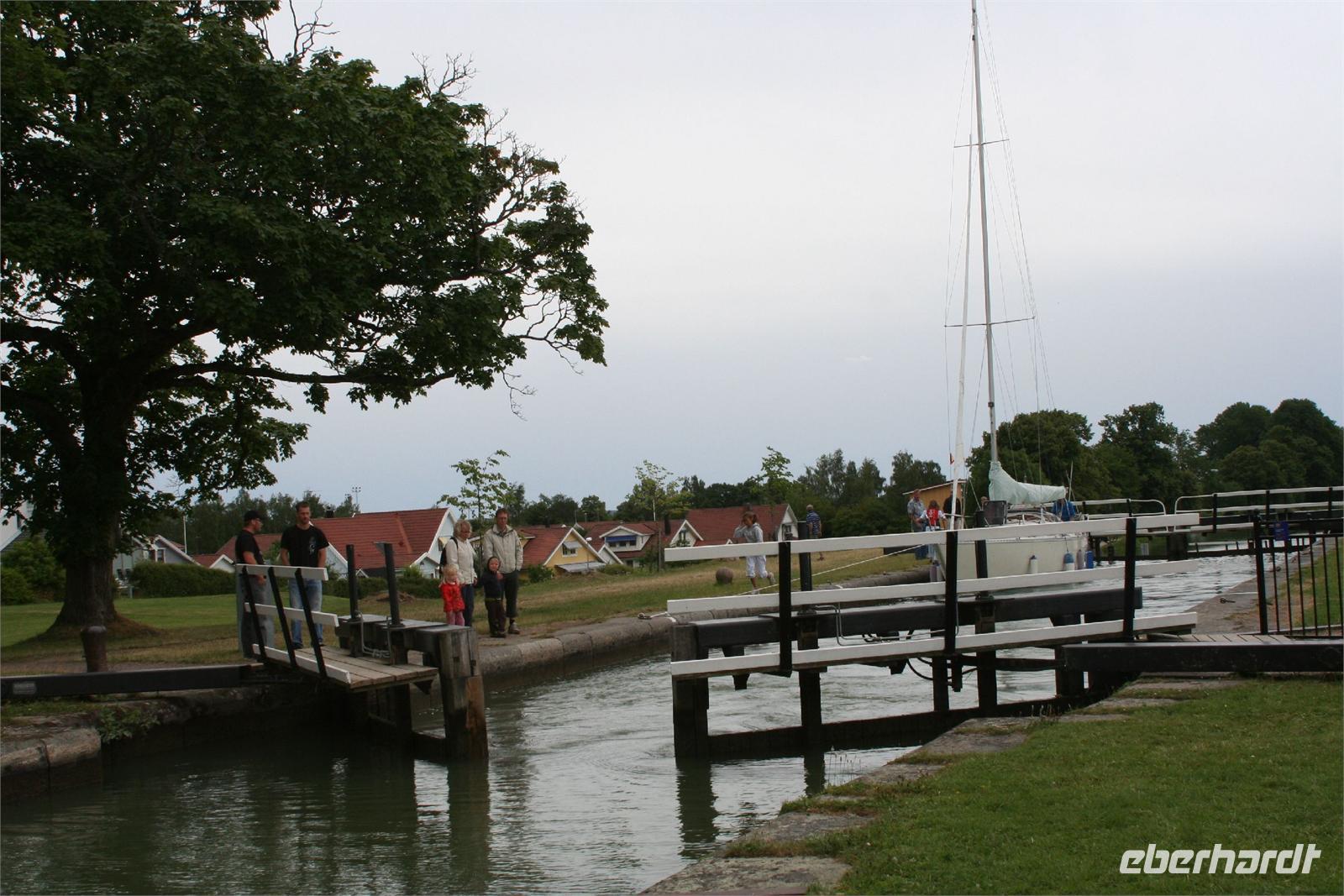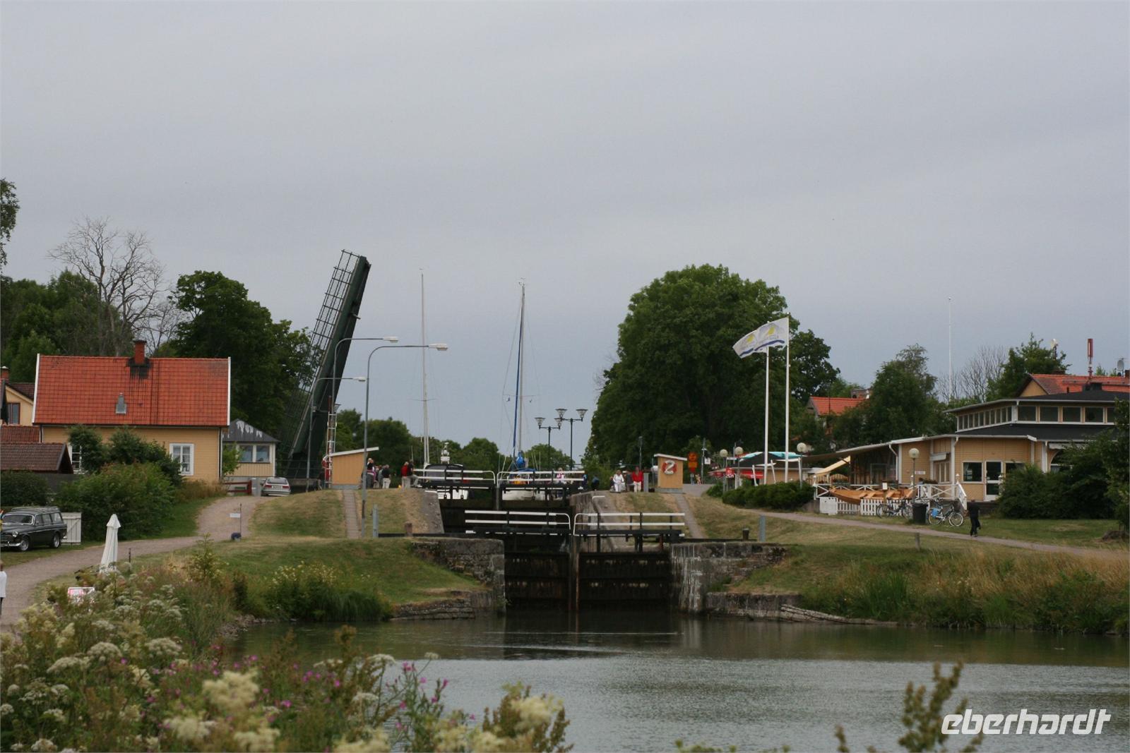Ingesamt 6 Schleusen passierten wir. Die interessanteste war die Schleusentreppe von Borenshult, bei der wir 5 Schleusen mit einem Höhenunterschied von 15,3 m überwinden mußten, bevor wir über den Borensee Borensberg erreichten. An Bord wurden wir von der Ehefrau des schwedischen Kapitäns, welche aus Sri Lanka stammt, bewirtet. Viele probierten ihre frisch gebackenen "Kanellbullar" (Zimtschnecken). Von Borensberg fuhren wir mit dem Bus nach Berg am Roxensee. Dort pausierten wir und besichtigten die bekannteste, längste Schleusentreppe des Göta-Kanals mit insgesamt 9 Schleusen.