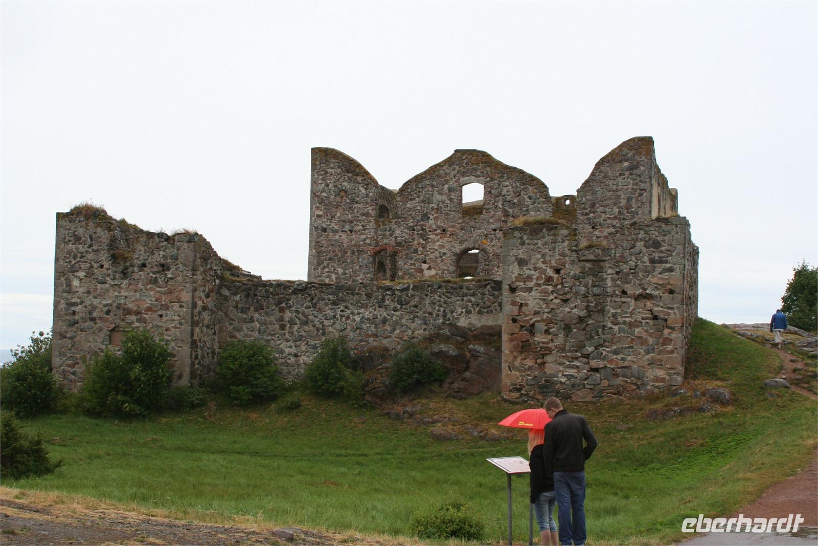 Weiter führte uns die Reise in östliche Richtung. Mit der Autofähre erreichen wir Töftö, ein idyllisches Archipel aus kleineren Schären. Hier überraschten wir die Gäste mit einem Picknick. Mittlerweile wehte der Wind sehr heftig, aber die Alander Spezialitäten wie der Bormasunder und Kastelholmer Käse sowie das typische Svartbröd aus Ingeborgs Bageri (ein lang haltbares, süßlich schmeckendes Schwarzbrot, was mit unserem Pumpernickel vergleichbar ist) schmeckten lecker. In Bormasund machten wir einen kurzen Fotostopp, um die Reste der Bormasunder Festung zu besichtigen. Der Bau der stattlichen Festungsanlage des zaristischen Russlands (geplant für 5.000 Mann), Bormasund war damals russisch, diente militärischen Zwecken und wirkte sich entscheidend auf das alandische Gemeinwesen aus. Die "Bormasunder Zeit" wurde 1854 abrupt mit der vollständigen Zerstörung der Festung beendet.