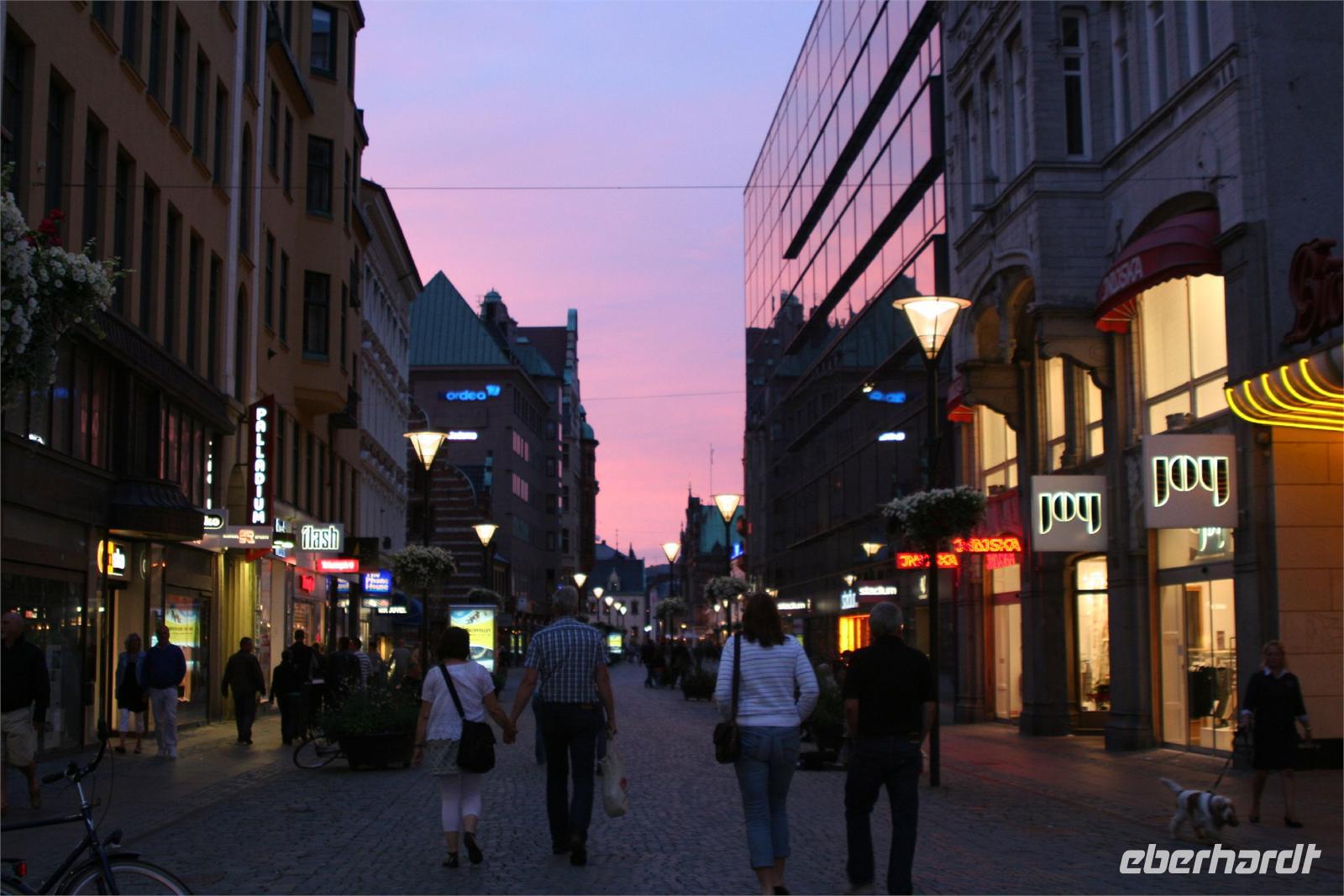 Nach dem wiederum späten Buffetabendessen unternahmen einige Gäste noch einen abendlichen Bummel durch die Altstadt von Malmö. Am Samstagabend war die Stadt äußerst lebendig. Besonders auf dem Lilla Torget hatte man den Eindruck, dass ein Festival stattfindet. Die Restaurants und Biergärten quollen vor Menschen über, Security wachte über die zahlreichen Besucher (meist Einheimische), Alkohol wird nur an über 21-jährige ausgeschenkt. An den wenigen hellen Samstagabenden im Sommer wird ausgiebig gefeiert und viel getrunken. Für uns etwas unverständlich, bei den hohen Preisen.