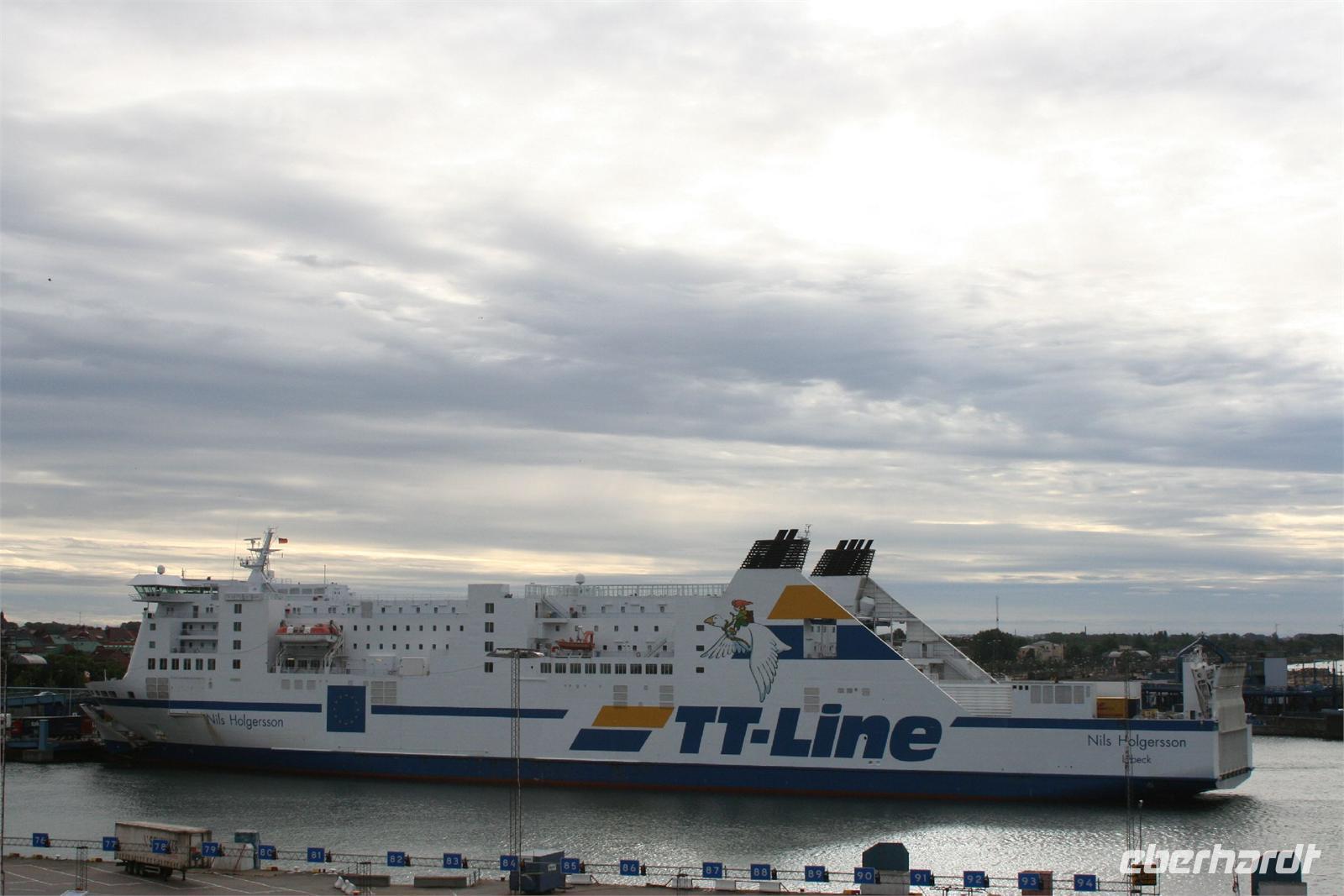 Von Lübeck bis Travemünde ist es nur ein kurzes Stück und so erreichten wir halbwegs pünktlich um 21:30 Uhr den Fährhafen. Noch während wir die Bordkarten verteilten, legte die Fähre schon ab. Überrascht waren wir über die modernen, geräumigen Kabinen, in denen wir die erste, kurze Nacht verbrachten. Da es um 22 Uhr noch relativ hell war, begaben sich viele noch auf einen Rundgang auf dem modernen Fährschiffe "Nils Holgerson" der TT-Line. Auf dem Schiff konnten wir bequem Geld wechseln (Kurs 1:10 plus Gebühr) und auch in € bezahlen. Den Abend ließen wir mit Live-Musik und einem "Betthüpferl" in der Bar ausklingen.