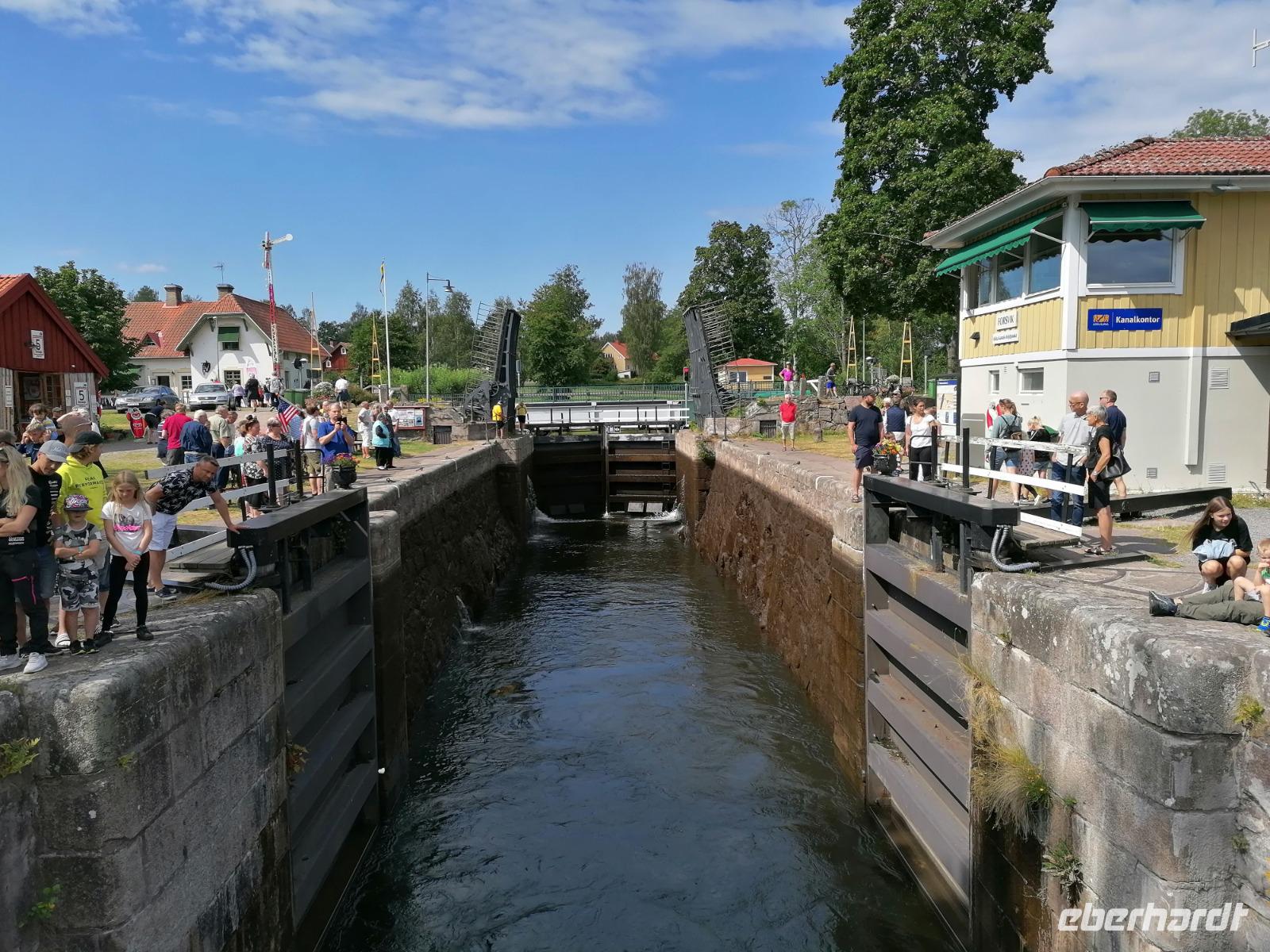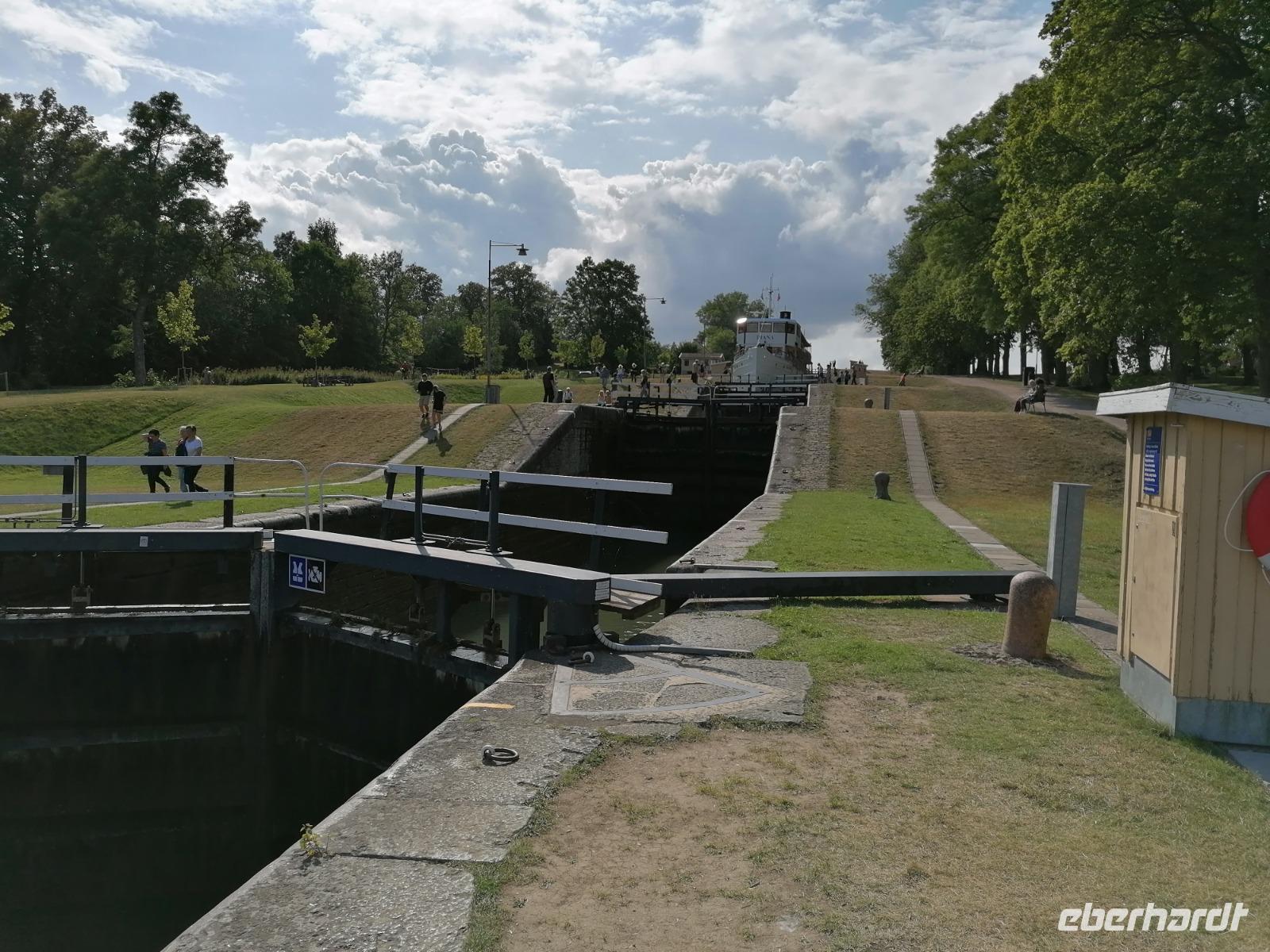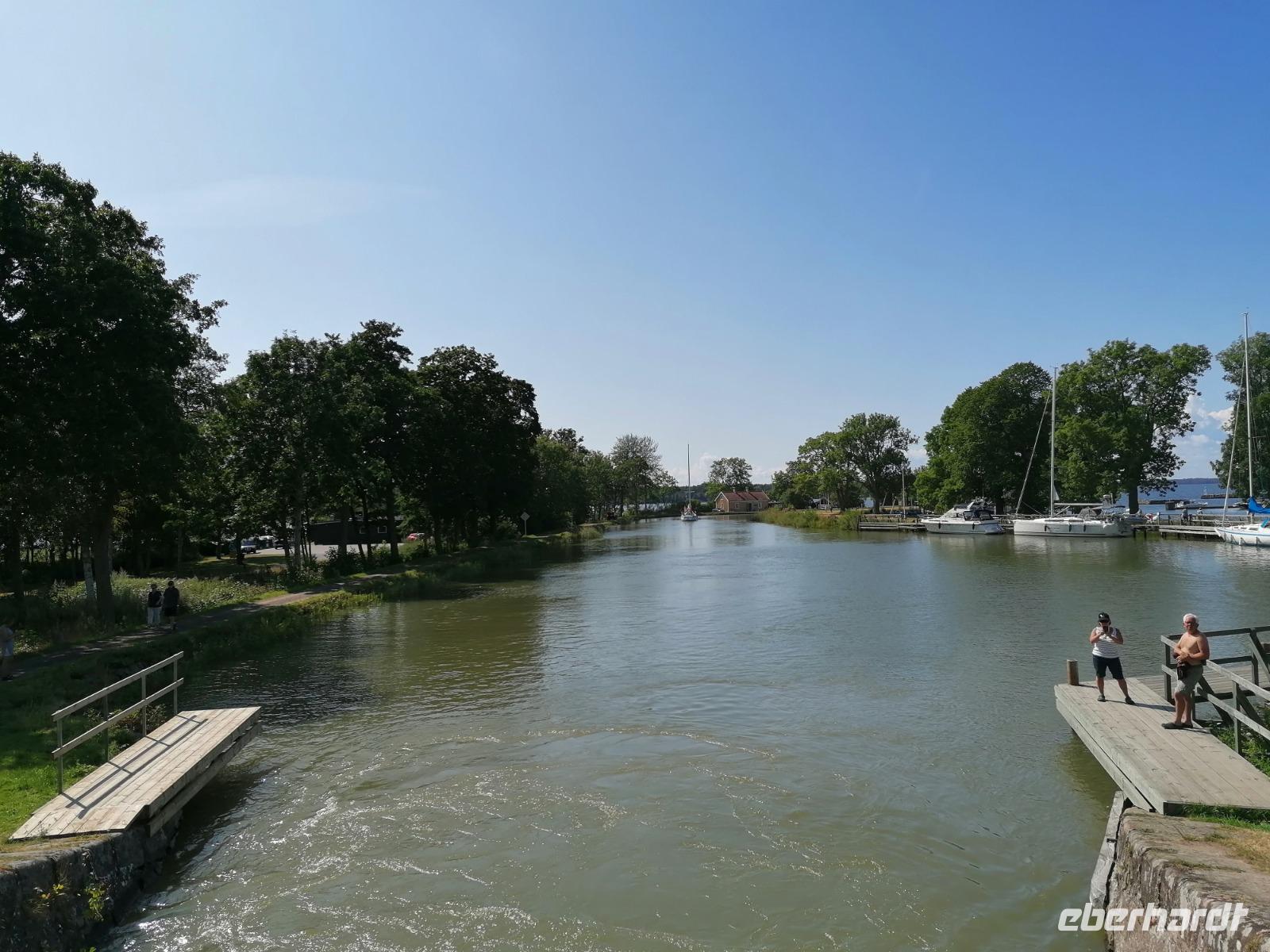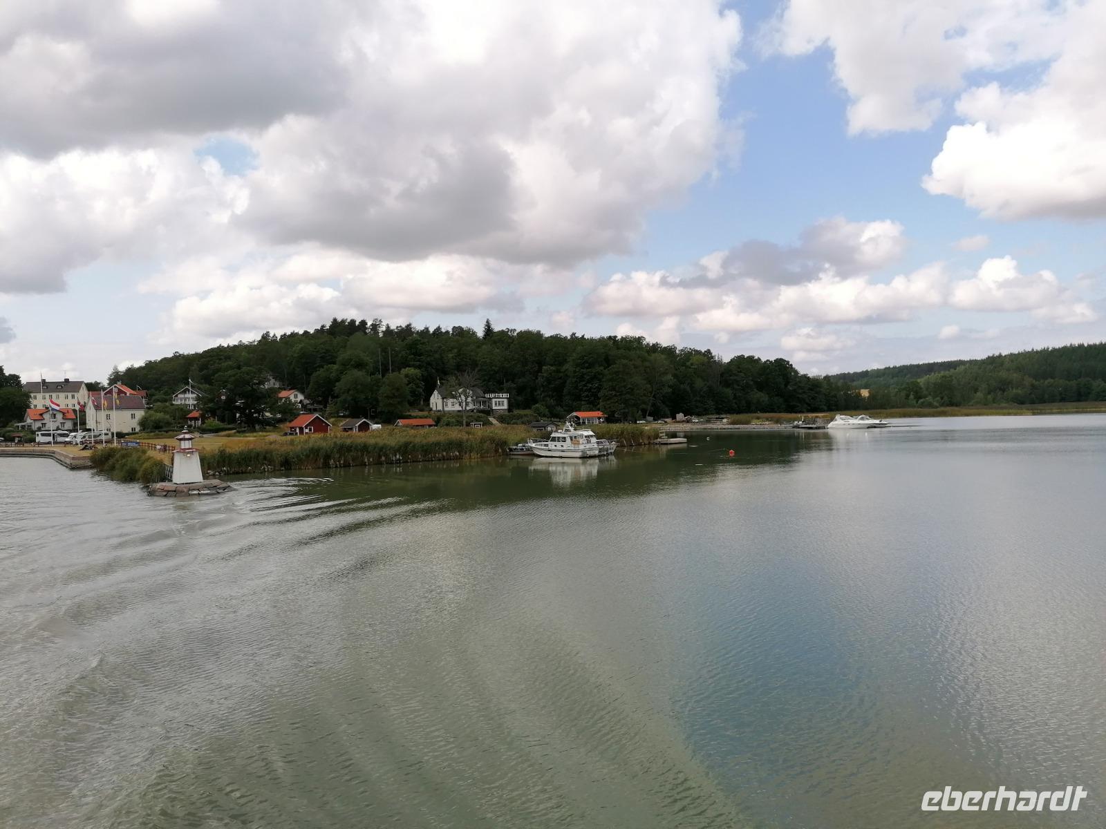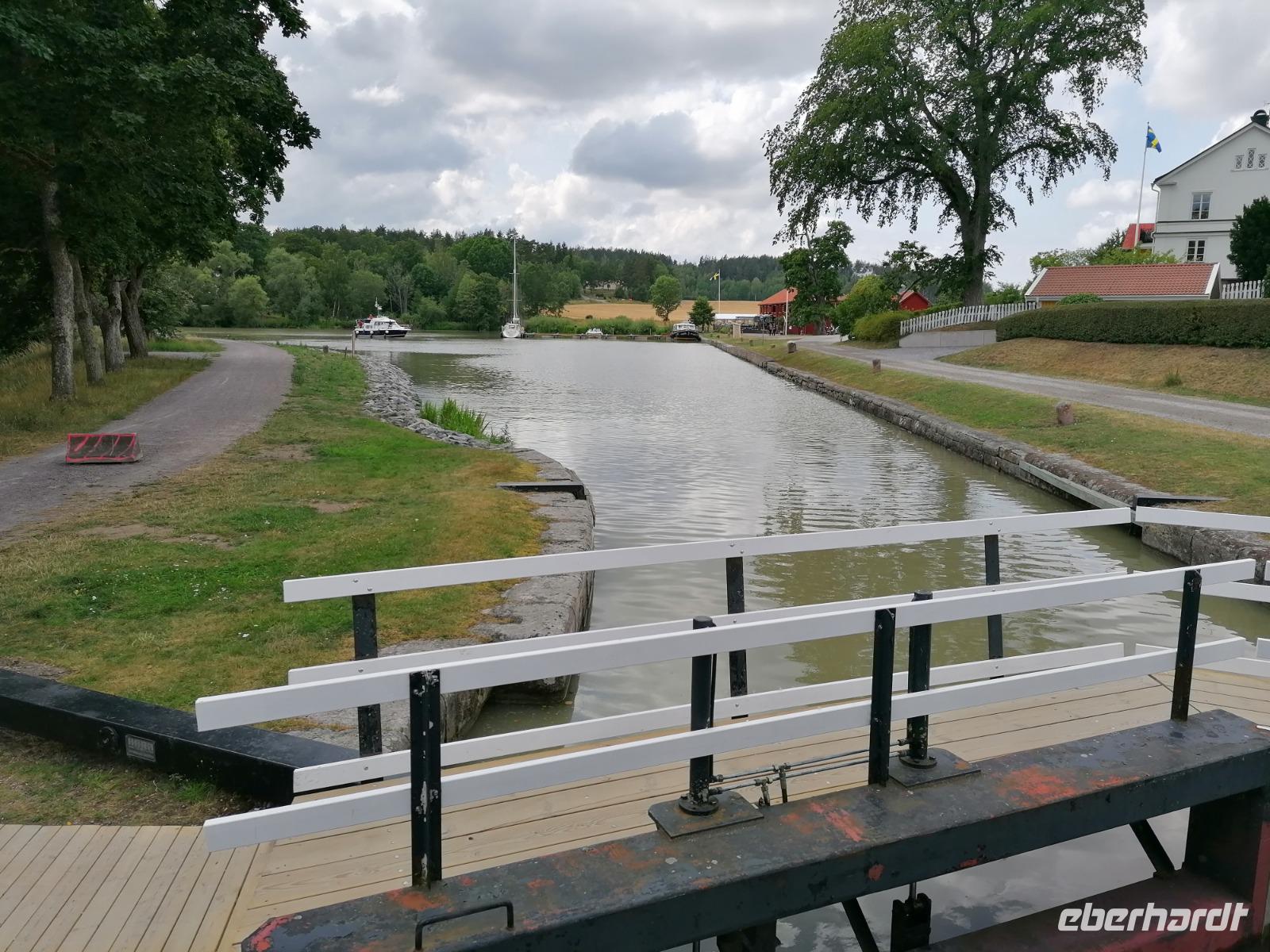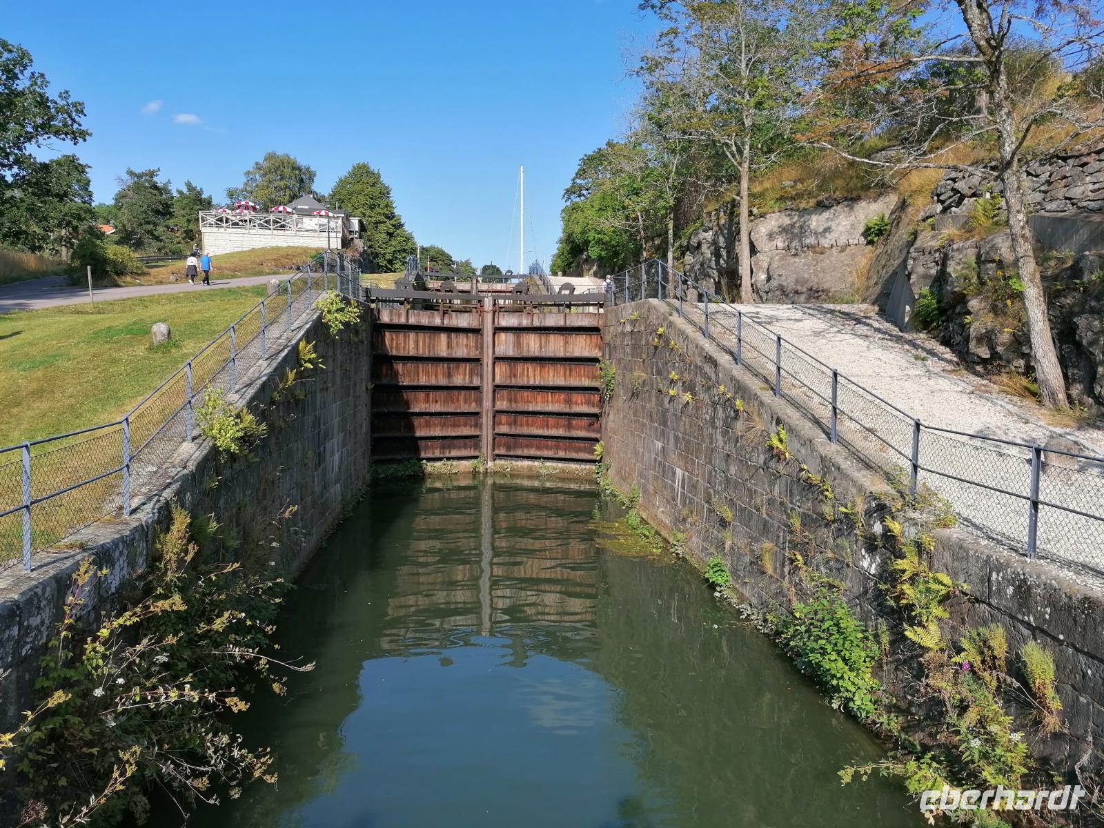 In der Schleuse von Klämman nahmen wir heute unser Frühstück zu uns. Wie immer konnten wir im Speisesaal oder auf dem Oberdeck frühstücken. Nach dem Frühstück oder früh eine Infoveranstaltung anberaumt. Nachdem zusammen uns weitere Informationen über den Göta-Kanal gegeben hatte, verteilte sie Stadtkarten von Söderköping und er läutete uns im Tagesablauf von heute. Unser erster Stopp erfolgte an der Oberschleuse von Carlsborg. Hier beginnt eine Folge von acht aufeinanderfolgenden Schleusen. Heute hatten wir sogar etwas Gegenverkehr, so dass das schleusen etwas länger dauert. In der Zwischenzeit spazierten wir bis zur vierten Schleuse neben dem Boot her. Zurück an Bord fuhren wir weiter nach Söderköping. Sie gab es etwas Freizeit in der idyllischen Stadt den Anfang des 13 Jahrhunderts gegründet wurde. Während der Hansezeit war die Stadt von großer Bedeutung. Heute ist der kleine Kurort vor allem bekannt für seine vielen und guten Eisdielen. Diese lernt natürlich gemeinsam kennen und probiert den das köstliche Eis. Nach der kleinen Erfrischung machten wir einen kleinen Stadtrundgang. Wir spazierten durch die romantische Kleinstadt bis hin zur Kathedrale. Im Anschluss hatten wir etwas Zeit zur freien Verfügung, welche wir zum Shoppen nutzten. Zurück an Bord gab es zunächst einmal Mittagessen. Während des Essens verließen wir den Göta-Kanal und fuhren auf die Ostsee hinaus. Nach einer kleinen Fahrt erreichten wir Stegeborg. Auf einer kleinen Insel an der Ostsee Bucht liegt die ehemalige Schlossruine Stegeborg. Susan führte uns herum und klärt uns über die Geschichte der alten Ruine und der Kräutergärten auf. Das Schloss war früher der Schlüssel zum Göta-Kanal und man musste es passieren, wenn man zum Göta-Kanal wollte. Heute Abend stand ein kleiner Sektumtrunk auf dem Programm. Beim anschließenden Captains Dinner, konnten wir noch mal in vollen Zügen das leckere Essen an Bord genießen. Nach dem Essen wurde die Crew nochmals vorgestellt und wir konnten uns für tüchtige Arbeit bedanken. Unser Nachtquartier verlegten wir heute auf die Insel Sävsundet. Beim privaten Anlegesteg gab es die Möglichkeit schwimmen zu gehen oder einen Spaziergang, um die Insel zu machen. Ein toller letzter Tag ging inmitten einer romantischen Atmosphäre zu Ende.