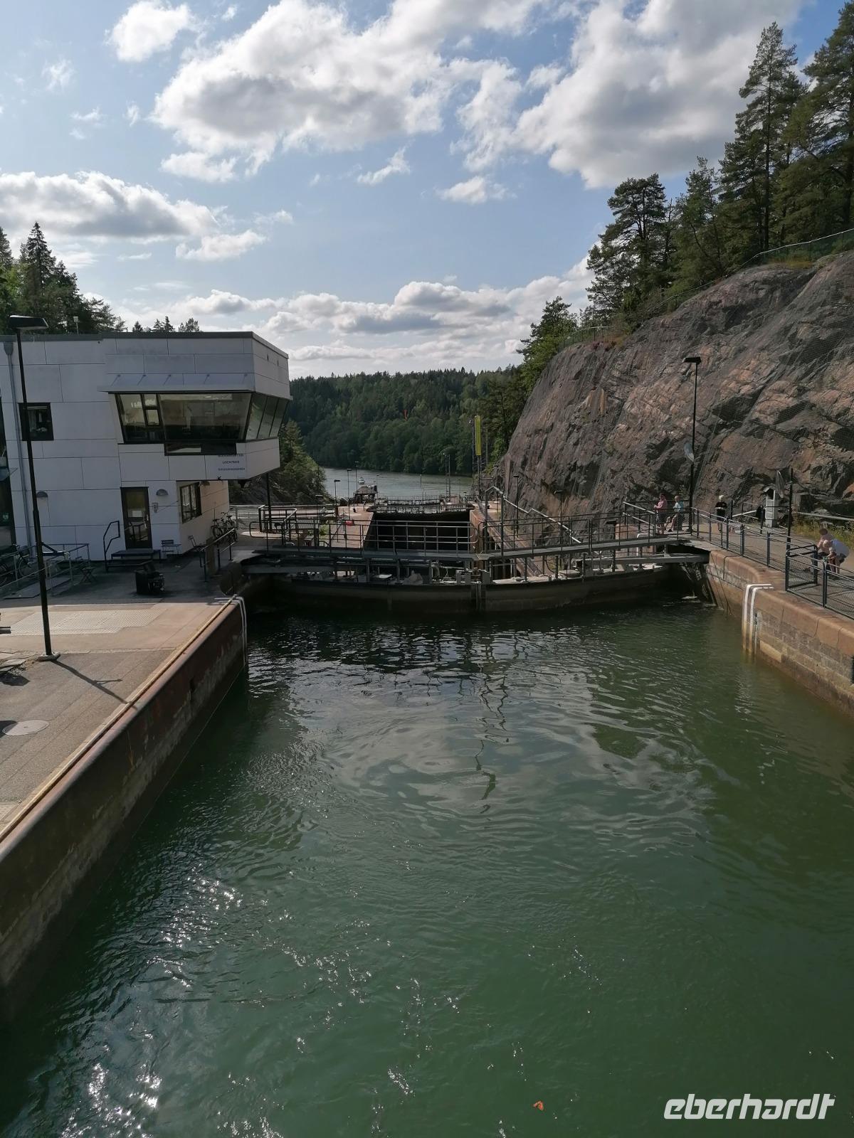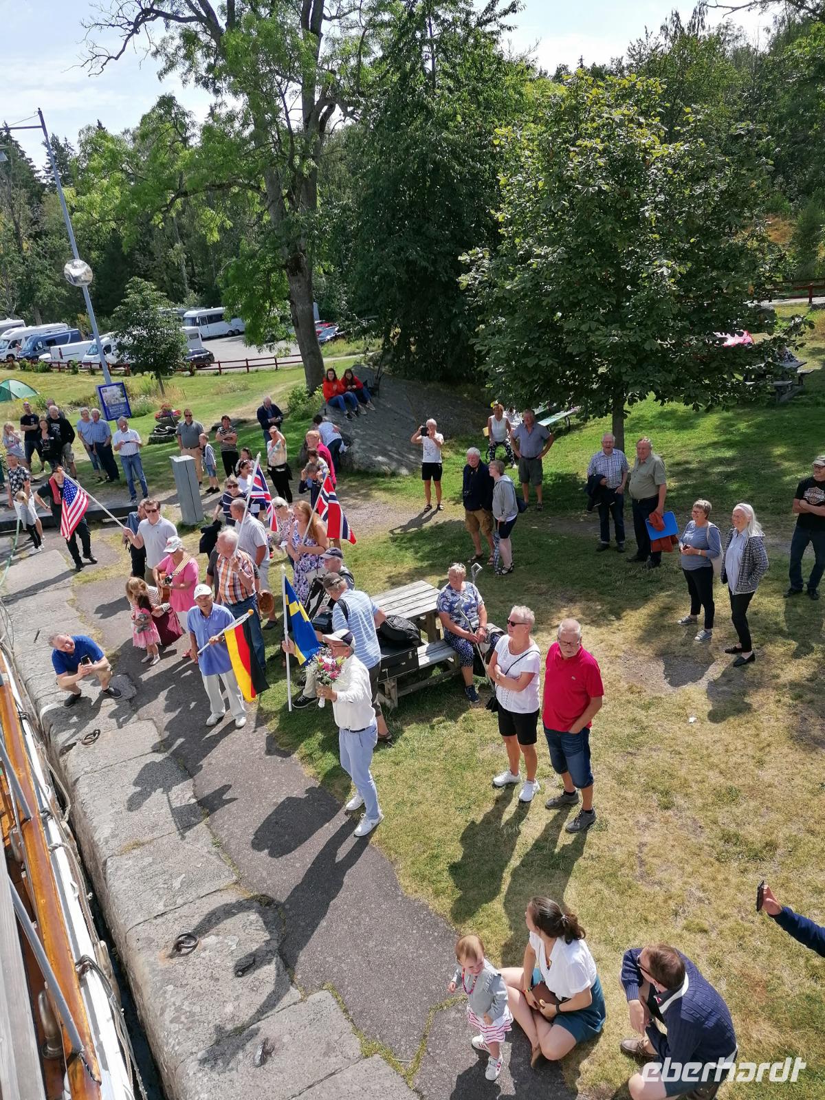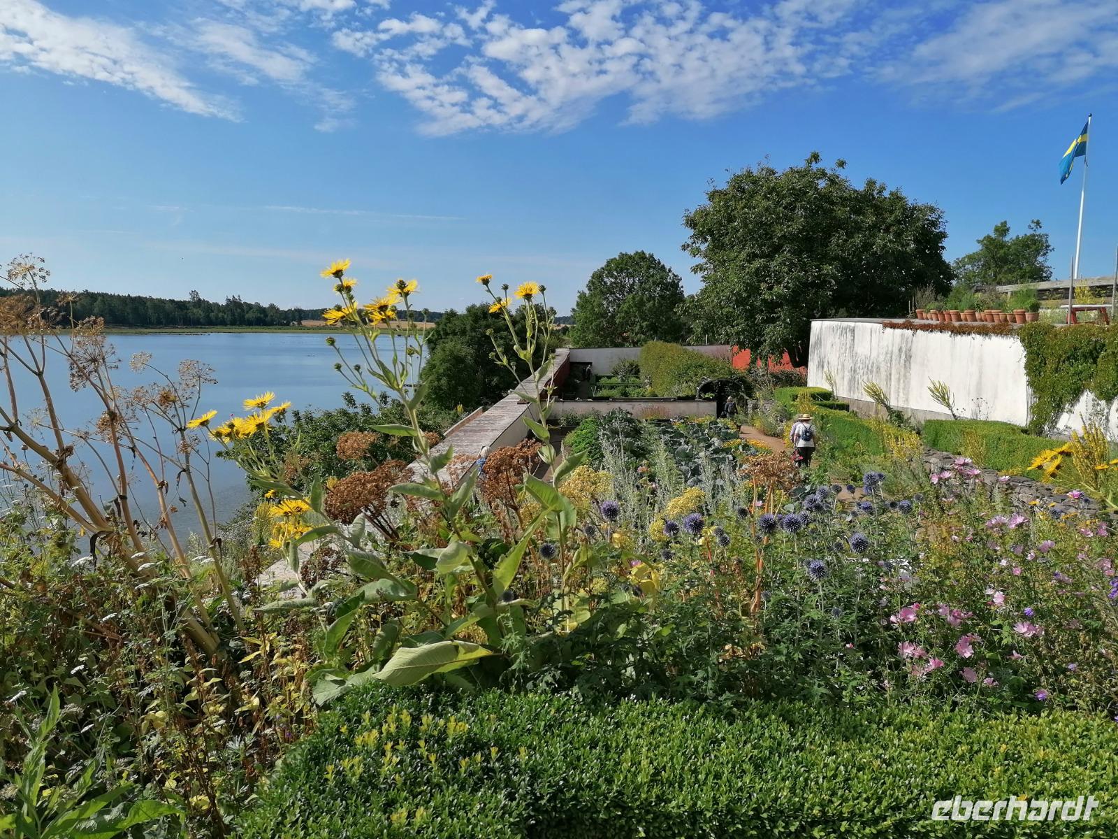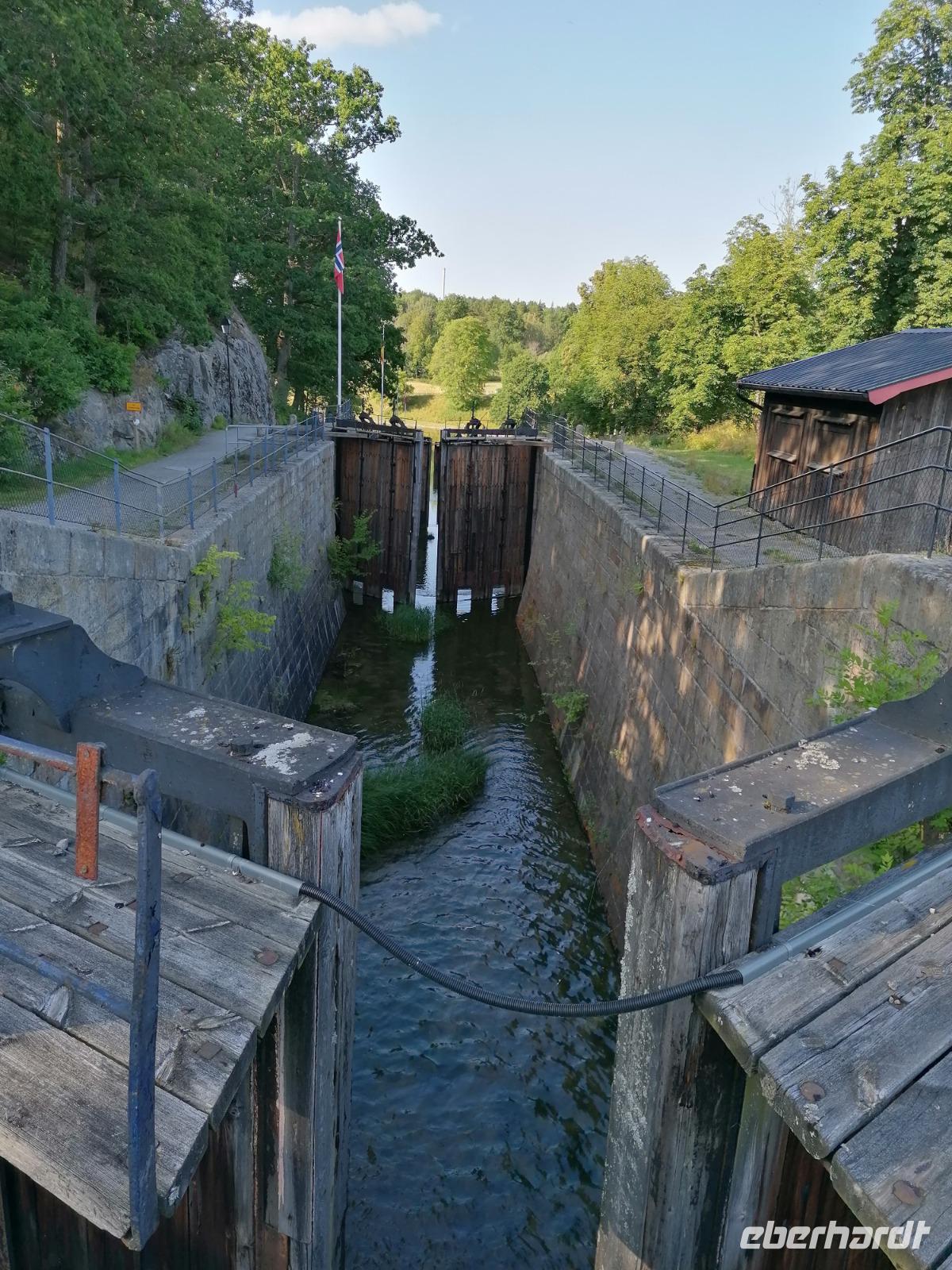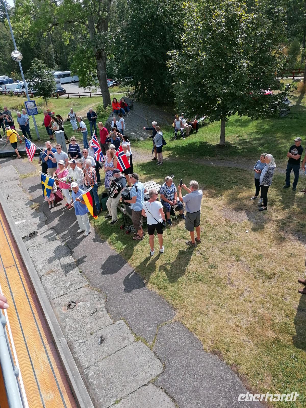 In der Schleuse von Klämman nahmen wir heute unser Frühstück zu uns. Wie immer konnten wir im Speisesaal oder auf dem Oberdeck frühstücken. Nach dem Frühstück oder früh eine Infoveranstaltung anberaumt. Nachdem zusammen uns weitere Informationen über den Göta-Kanal gegeben hatte, verteilte sie Stadtkarten von Söderköping und er läutete uns im Tagesablauf von heute. Unser erster Stopp erfolgte an der Oberschleuse von Carlsborg. Hier beginnt eine Folge von acht aufeinanderfolgenden Schleusen. Heute hatten wir sogar etwas Gegenverkehr, so dass das schleusen etwas länger dauert. In der Zwischenzeit spazierten wir bis zur vierten Schleuse neben dem Boot her. Zurück an Bord fuhren wir weiter nach Söderköping. Sie gab es etwas Freizeit in der idyllischen Stadt den Anfang des 13 Jahrhunderts gegründet wurde. Während der Hansezeit war die Stadt von großer Bedeutung. Heute ist der kleine Kurort vor allem bekannt für seine vielen und guten Eisdielen. Diese lernt natürlich gemeinsam kennen und probiert den das köstliche Eis. Nach der kleinen Erfrischung machten wir einen kleinen Stadtrundgang. Wir spazierten durch die romantische Kleinstadt bis hin zur Kathedrale. Im Anschluss hatten wir etwas Zeit zur freien Verfügung, welche wir zum Shoppen nutzten. Zurück an Bord gab es zunächst einmal Mittagessen. Während des Essens verließen wir den Göta-Kanal und fuhren auf die Ostsee hinaus. Nach einer kleinen Fahrt erreichten wir Stegeborg. Auf einer kleinen Insel an der Ostsee Bucht liegt die ehemalige Schlossruine Stegeborg. Susan führte uns herum und klärt uns über die Geschichte der alten Ruine und der Kräutergärten auf. Das Schloss war früher der Schlüssel zum Göta-Kanal und man musste es passieren, wenn man zum Göta-Kanal wollte. Heute Abend stand ein kleiner Sektumtrunk auf dem Programm. Beim anschließenden Captains Dinner, konnten wir noch mal in vollen Zügen das leckere Essen an Bord genießen. Nach dem Essen wurde die Crew nochmals vorgestellt und wir konnten uns für tüchtige Arbeit bedanken. Unser Nachtquartier verlegten wir heute auf die Insel Sävsundet. Beim privaten Anlegesteg gab es die Möglichkeit schwimmen zu gehen oder einen Spaziergang, um die Insel zu machen. Ein toller letzter Tag ging inmitten einer romantischen Atmosphäre zu Ende.
