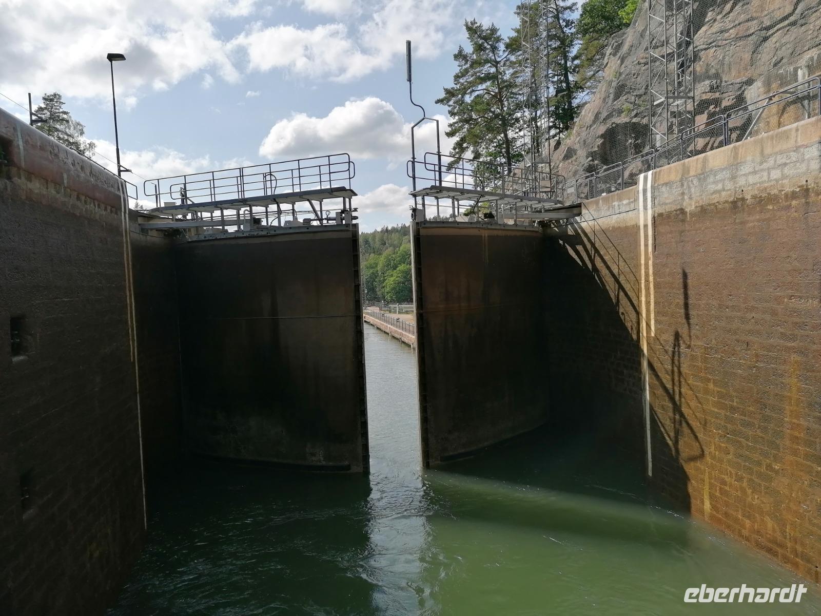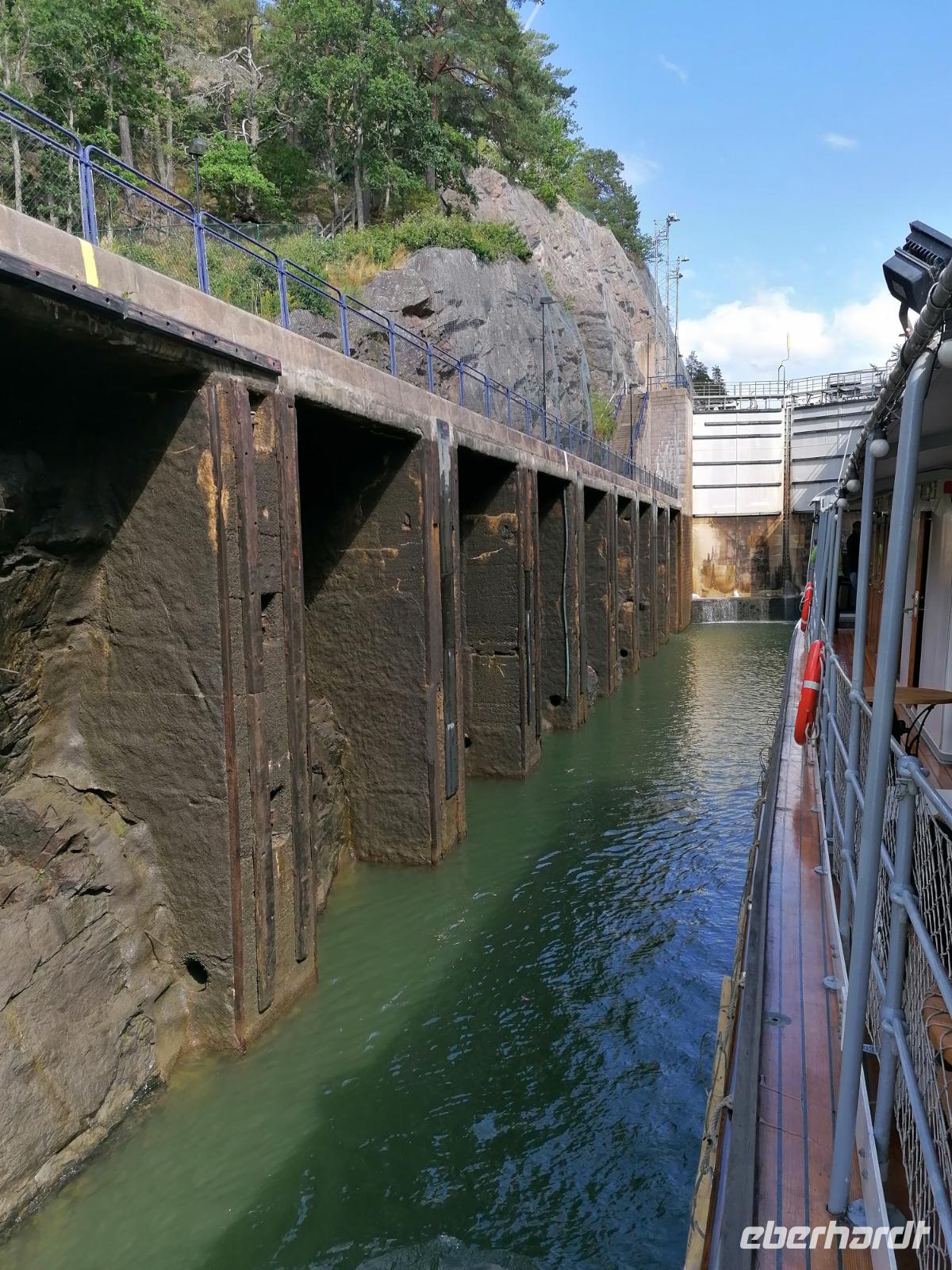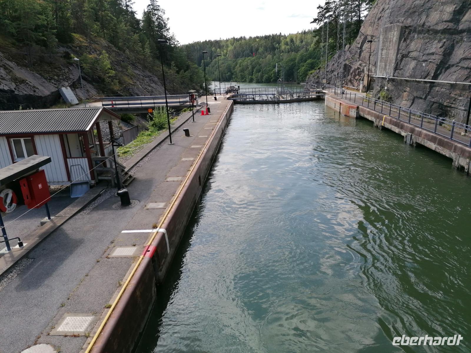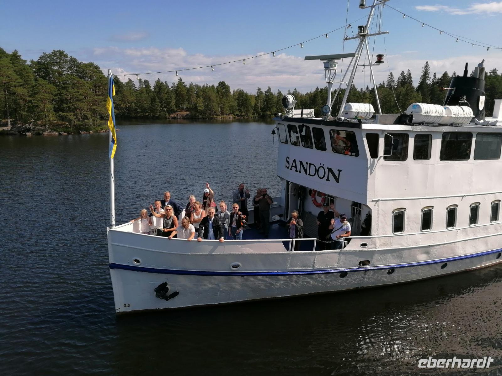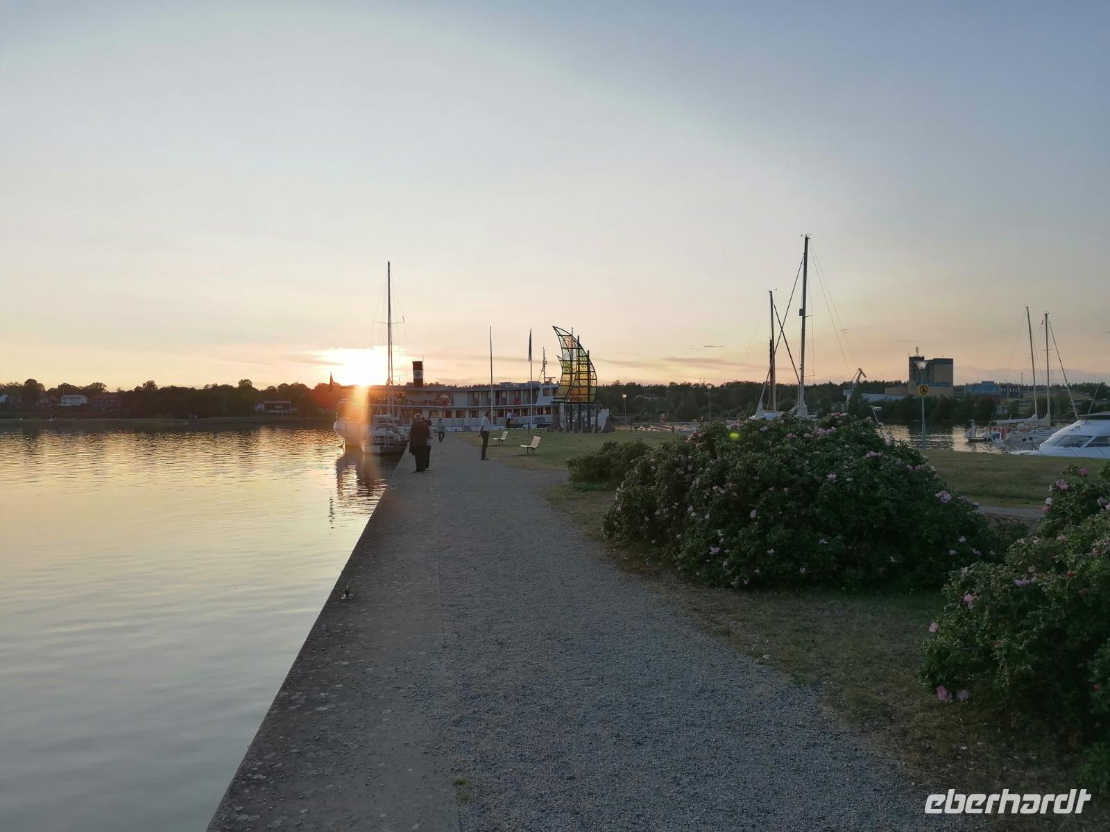 In der Schleuse von Klämman nahmen wir heute unser Frühstück zu uns. Wie immer konnten wir im Speisesaal oder auf dem Oberdeck frühstücken. Nach dem Frühstück oder früh eine Infoveranstaltung anberaumt. Nachdem zusammen uns weitere Informationen über den Göta-Kanal gegeben hatte, verteilte sie Stadtkarten von Söderköping und er läutete uns im Tagesablauf von heute. Unser erster Stopp erfolgte an der Oberschleuse von Carlsborg. Hier beginnt eine Folge von acht aufeinanderfolgenden Schleusen. Heute hatten wir sogar etwas Gegenverkehr, so dass das schleusen etwas länger dauert. In der Zwischenzeit spazierten wir bis zur vierten Schleuse neben dem Boot her. Zurück an Bord fuhren wir weiter nach Söderköping. Sie gab es etwas Freizeit in der idyllischen Stadt den Anfang des 13 Jahrhunderts gegründet wurde. Während der Hansezeit war die Stadt von großer Bedeutung. Heute ist der kleine Kurort vor allem bekannt für seine vielen und guten Eisdielen. Diese lernt natürlich gemeinsam kennen und probiert den das köstliche Eis. Nach der kleinen Erfrischung machten wir einen kleinen Stadtrundgang. Wir spazierten durch die romantische Kleinstadt bis hin zur Kathedrale. Im Anschluss hatten wir etwas Zeit zur freien Verfügung, welche wir zum Shoppen nutzten. Zurück an Bord gab es zunächst einmal Mittagessen. Während des Essens verließen wir den Göta-Kanal und fuhren auf die Ostsee hinaus. Nach einer kleinen Fahrt erreichten wir Stegeborg. Auf einer kleinen Insel an der Ostsee Bucht liegt die ehemalige Schlossruine Stegeborg. Susan führte uns herum und klärt uns über die Geschichte der alten Ruine und der Kräutergärten auf. Das Schloss war früher der Schlüssel zum Göta-Kanal und man musste es passieren, wenn man zum Göta-Kanal wollte. Heute Abend stand ein kleiner Sektumtrunk auf dem Programm. Beim anschließenden Captains Dinner, konnten wir noch mal in vollen Zügen das leckere Essen an Bord genießen. Nach dem Essen wurde die Crew nochmals vorgestellt und wir konnten uns für tüchtige Arbeit bedanken. Unser Nachtquartier verlegten wir heute auf die Insel Sävsundet. Beim privaten Anlegesteg gab es die Möglichkeit schwimmen zu gehen oder einen Spaziergang, um die Insel zu machen. Ein toller letzter Tag ging inmitten einer romantischen Atmosphäre zu Ende.