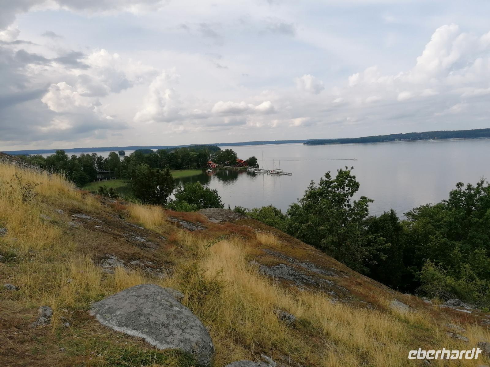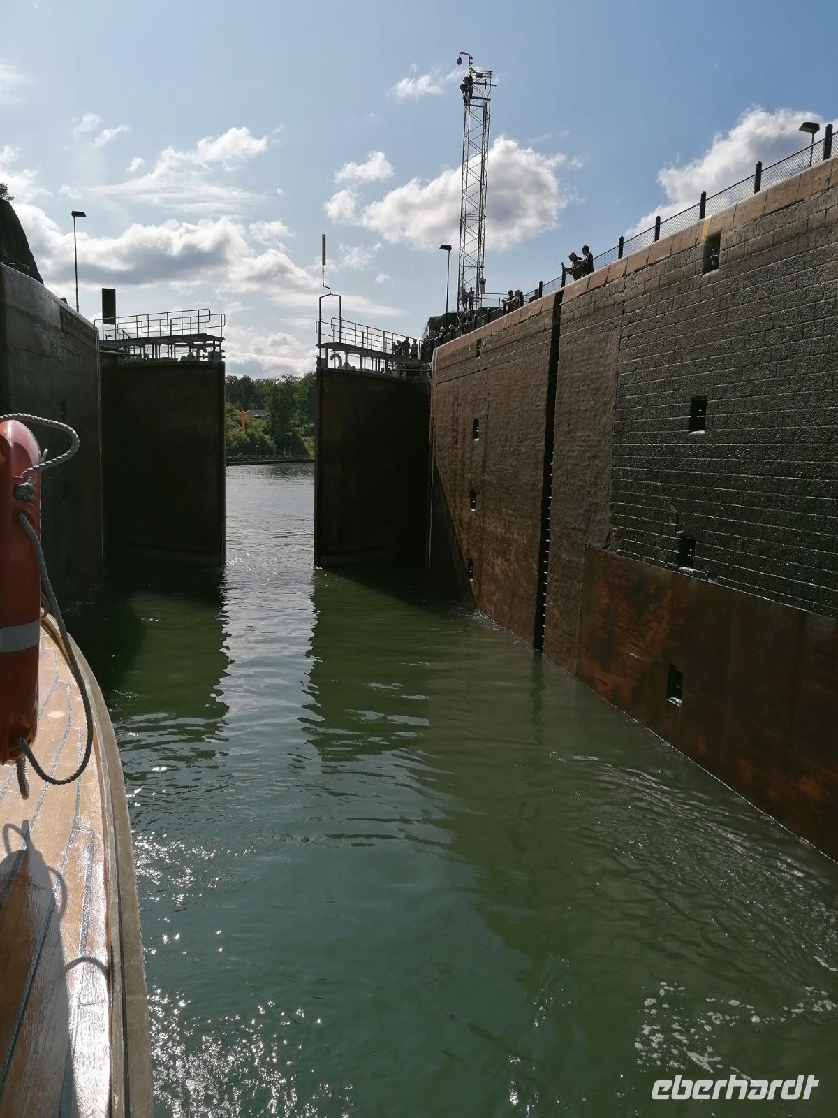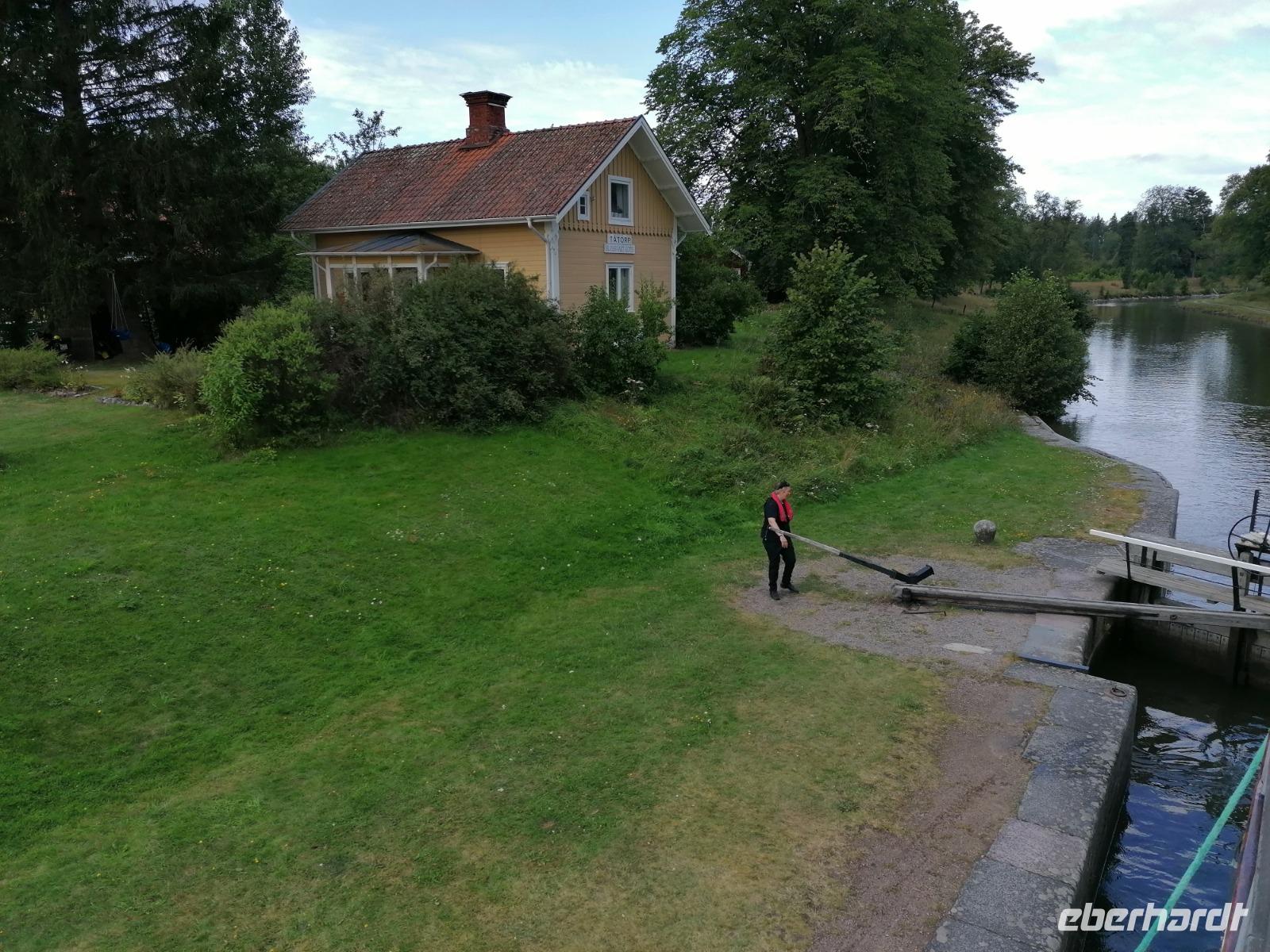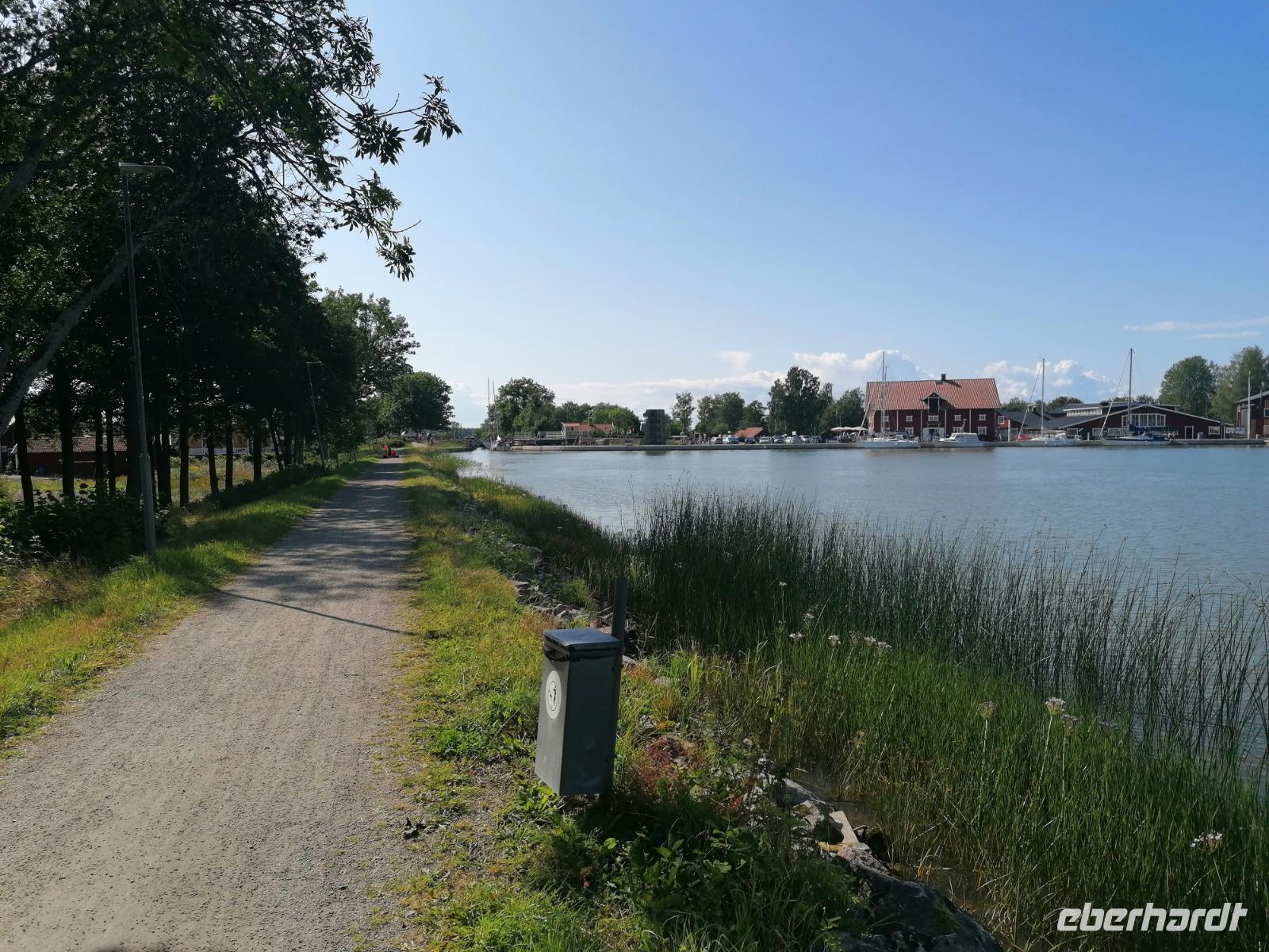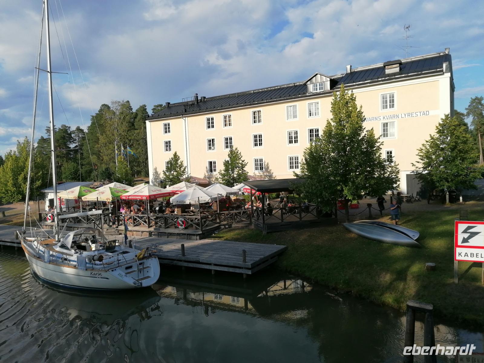 In der Schleuse von Klämman nahmen wir heute unser Frühstück zu uns. Wie immer konnten wir im Speisesaal oder auf dem Oberdeck frühstücken. Nach dem Frühstück oder früh eine Infoveranstaltung anberaumt. Nachdem zusammen uns weitere Informationen über den Göta-Kanal gegeben hatte, verteilte sie Stadtkarten von Söderköping und er läutete uns im Tagesablauf von heute. Unser erster Stopp erfolgte an der Oberschleuse von Carlsborg. Hier beginnt eine Folge von acht aufeinanderfolgenden Schleusen. Heute hatten wir sogar etwas Gegenverkehr, so dass das schleusen etwas länger dauert. In der Zwischenzeit spazierten wir bis zur vierten Schleuse neben dem Boot her. Zurück an Bord fuhren wir weiter nach Söderköping. Sie gab es etwas Freizeit in der idyllischen Stadt den Anfang des 13 Jahrhunderts gegründet wurde. Während der Hansezeit war die Stadt von großer Bedeutung. Heute ist der kleine Kurort vor allem bekannt für seine vielen und guten Eisdielen. Diese lernt natürlich gemeinsam kennen und probiert den das köstliche Eis. Nach der kleinen Erfrischung machten wir einen kleinen Stadtrundgang. Wir spazierten durch die romantische Kleinstadt bis hin zur Kathedrale. Im Anschluss hatten wir etwas Zeit zur freien Verfügung, welche wir zum Shoppen nutzten. Zurück an Bord gab es zunächst einmal Mittagessen. Während des Essens verließen wir den Göta-Kanal und fuhren auf die Ostsee hinaus. Nach einer kleinen Fahrt erreichten wir Stegeborg. Auf einer kleinen Insel an der Ostsee Bucht liegt die ehemalige Schlossruine Stegeborg. Susan führte uns herum und klärt uns über die Geschichte der alten Ruine und der Kräutergärten auf. Das Schloss war früher der Schlüssel zum Göta-Kanal und man musste es passieren, wenn man zum Göta-Kanal wollte. Heute Abend stand ein kleiner Sektumtrunk auf dem Programm. Beim anschließenden Captains Dinner, konnten wir noch mal in vollen Zügen das leckere Essen an Bord genießen. Nach dem Essen wurde die Crew nochmals vorgestellt und wir konnten uns für tüchtige Arbeit bedanken. Unser Nachtquartier verlegten wir heute auf die Insel Sävsundet. Beim privaten Anlegesteg gab es die Möglichkeit schwimmen zu gehen oder einen Spaziergang, um die Insel zu machen. Ein toller letzter Tag ging inmitten einer romantischen Atmosphäre zu Ende.