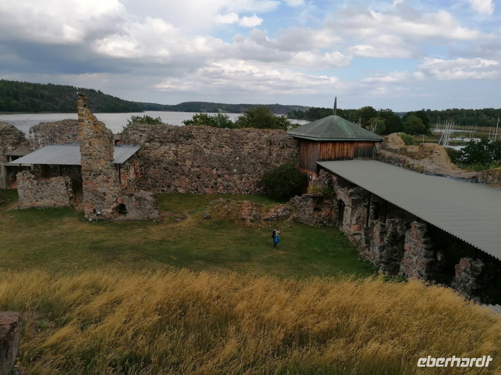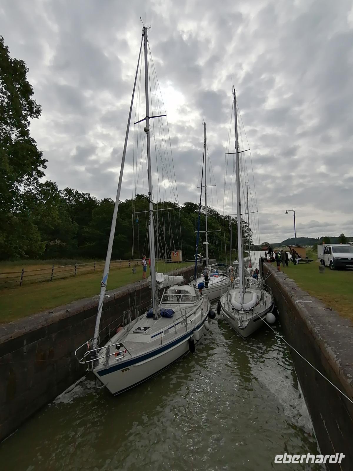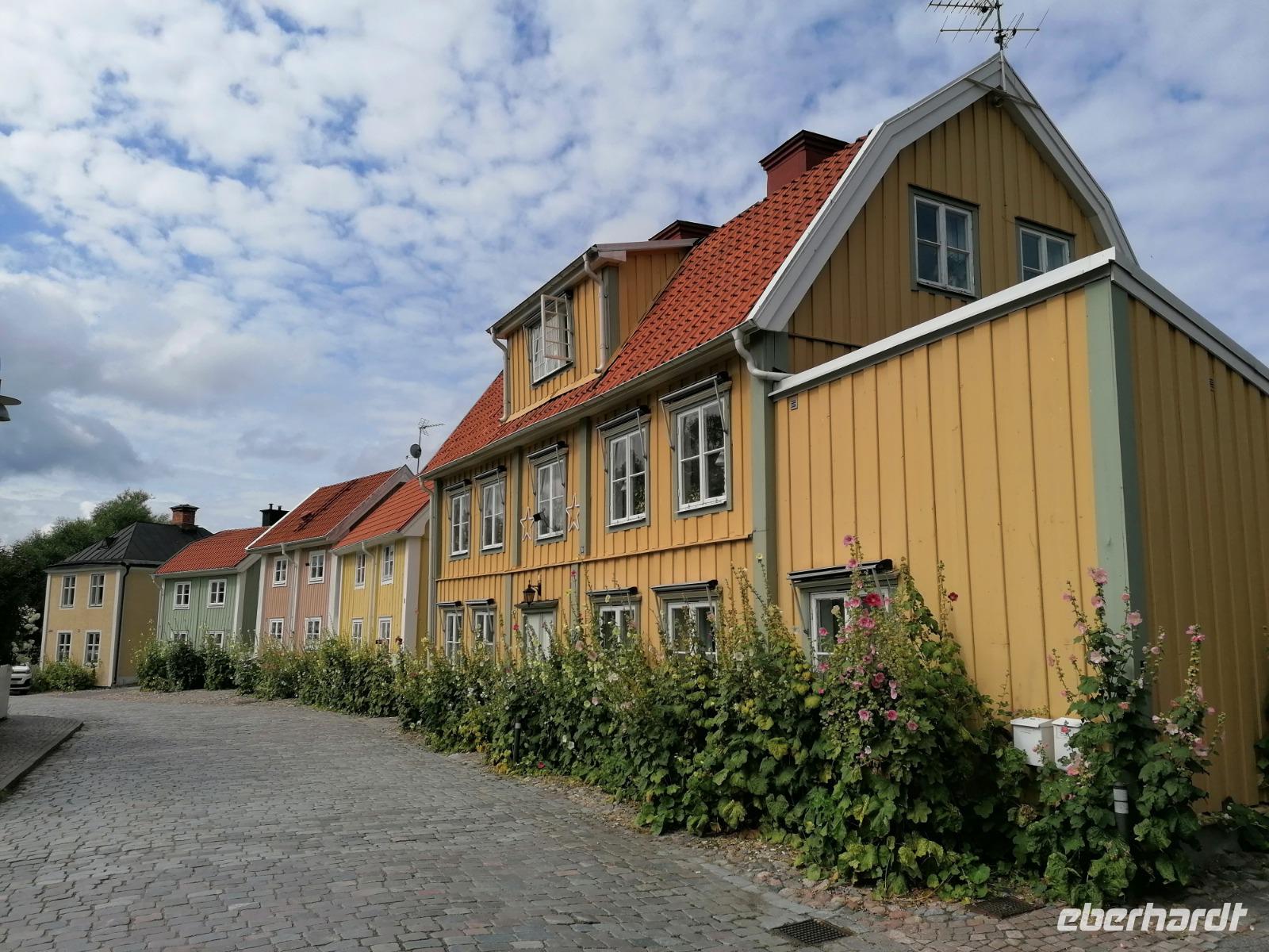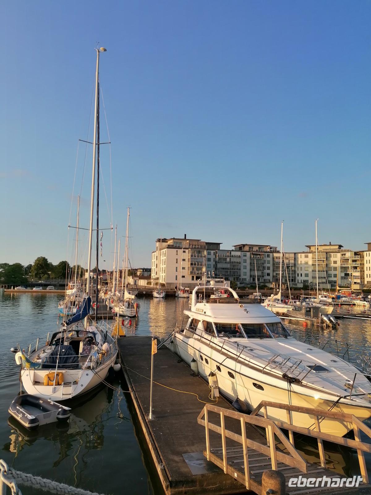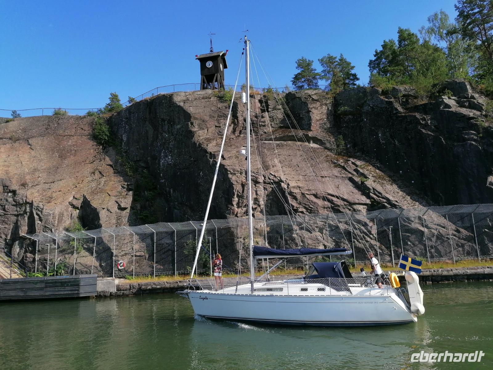 In der Schleuse von Klämman nahmen wir heute unser Frühstück zu uns. Wie immer konnten wir im Speisesaal oder auf dem Oberdeck frühstücken. Nach dem Frühstück oder früh eine Infoveranstaltung anberaumt. Nachdem zusammen uns weitere Informationen über den Göta-Kanal gegeben hatte, verteilte sie Stadtkarten von Söderköping und er läutete uns im Tagesablauf von heute. Unser erster Stopp erfolgte an der Oberschleuse von Carlsborg. Hier beginnt eine Folge von acht aufeinanderfolgenden Schleusen. Heute hatten wir sogar etwas Gegenverkehr, so dass das schleusen etwas länger dauert. In der Zwischenzeit spazierten wir bis zur vierten Schleuse neben dem Boot her. Zurück an Bord fuhren wir weiter nach Söderköping. Sie gab es etwas Freizeit in der idyllischen Stadt den Anfang des 13 Jahrhunderts gegründet wurde. Während der Hansezeit war die Stadt von großer Bedeutung. Heute ist der kleine Kurort vor allem bekannt für seine vielen und guten Eisdielen. Diese lernt natürlich gemeinsam kennen und probiert den das köstliche Eis. Nach der kleinen Erfrischung machten wir einen kleinen Stadtrundgang. Wir spazierten durch die romantische Kleinstadt bis hin zur Kathedrale. Im Anschluss hatten wir etwas Zeit zur freien Verfügung, welche wir zum Shoppen nutzten. Zurück an Bord gab es zunächst einmal Mittagessen. Während des Essens verließen wir den Göta-Kanal und fuhren auf die Ostsee hinaus. Nach einer kleinen Fahrt erreichten wir Stegeborg. Auf einer kleinen Insel an der Ostsee Bucht liegt die ehemalige Schlossruine Stegeborg. Susan führte uns herum und klärt uns über die Geschichte der alten Ruine und der Kräutergärten auf. Das Schloss war früher der Schlüssel zum Göta-Kanal und man musste es passieren, wenn man zum Göta-Kanal wollte. Heute Abend stand ein kleiner Sektumtrunk auf dem Programm. Beim anschließenden Captains Dinner, konnten wir noch mal in vollen Zügen das leckere Essen an Bord genießen. Nach dem Essen wurde die Crew nochmals vorgestellt und wir konnten uns für tüchtige Arbeit bedanken. Unser Nachtquartier verlegten wir heute auf die Insel Sävsundet. Beim privaten Anlegesteg gab es die Möglichkeit schwimmen zu gehen oder einen Spaziergang, um die Insel zu machen. Ein toller letzter Tag ging inmitten einer romantischen Atmosphäre zu Ende.