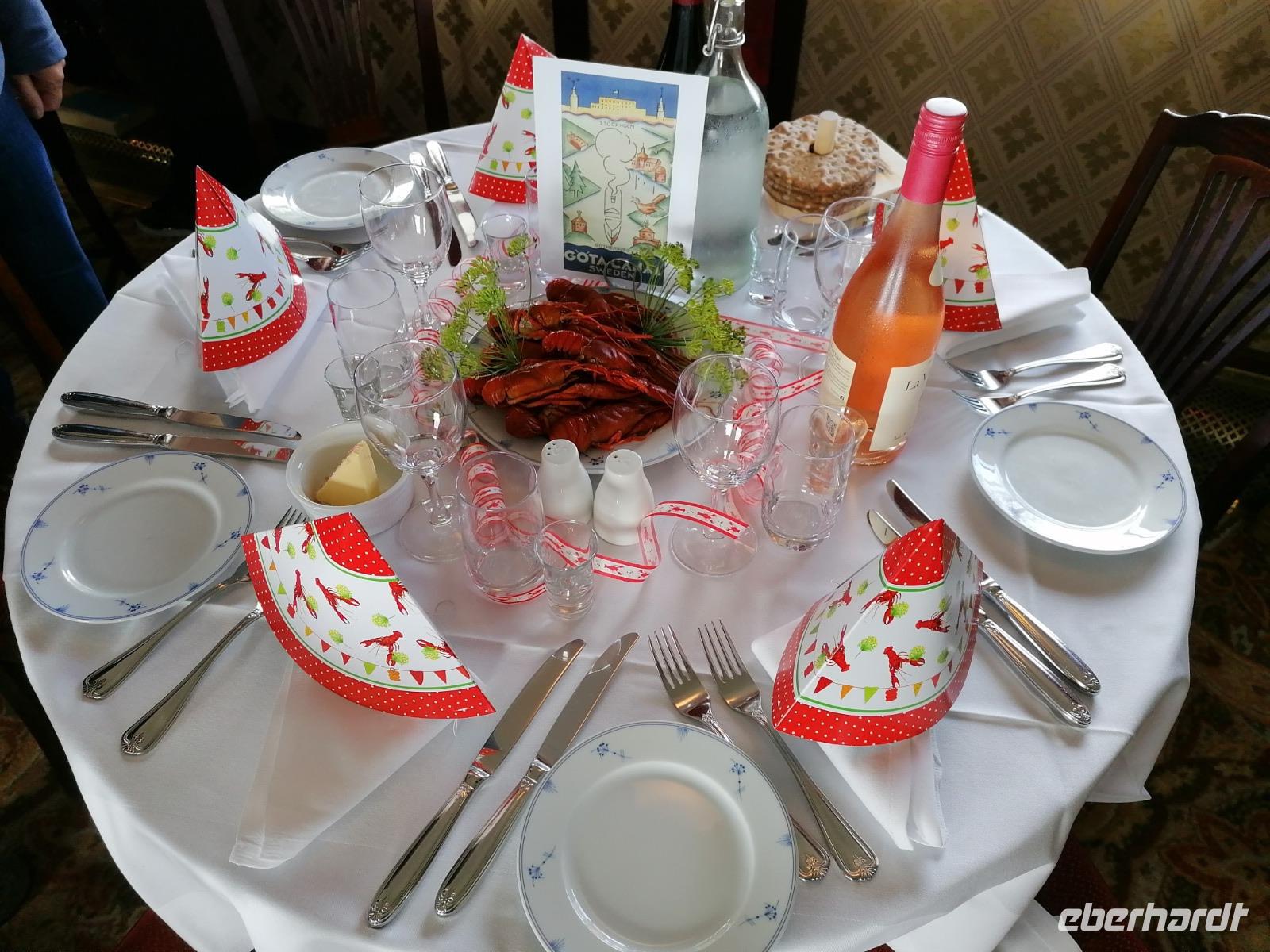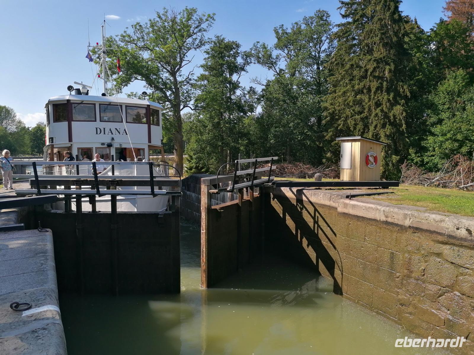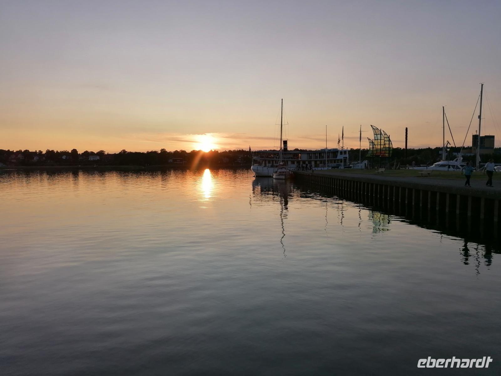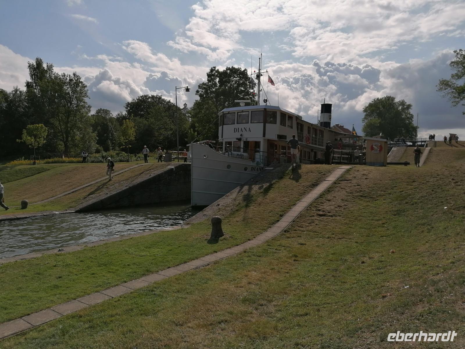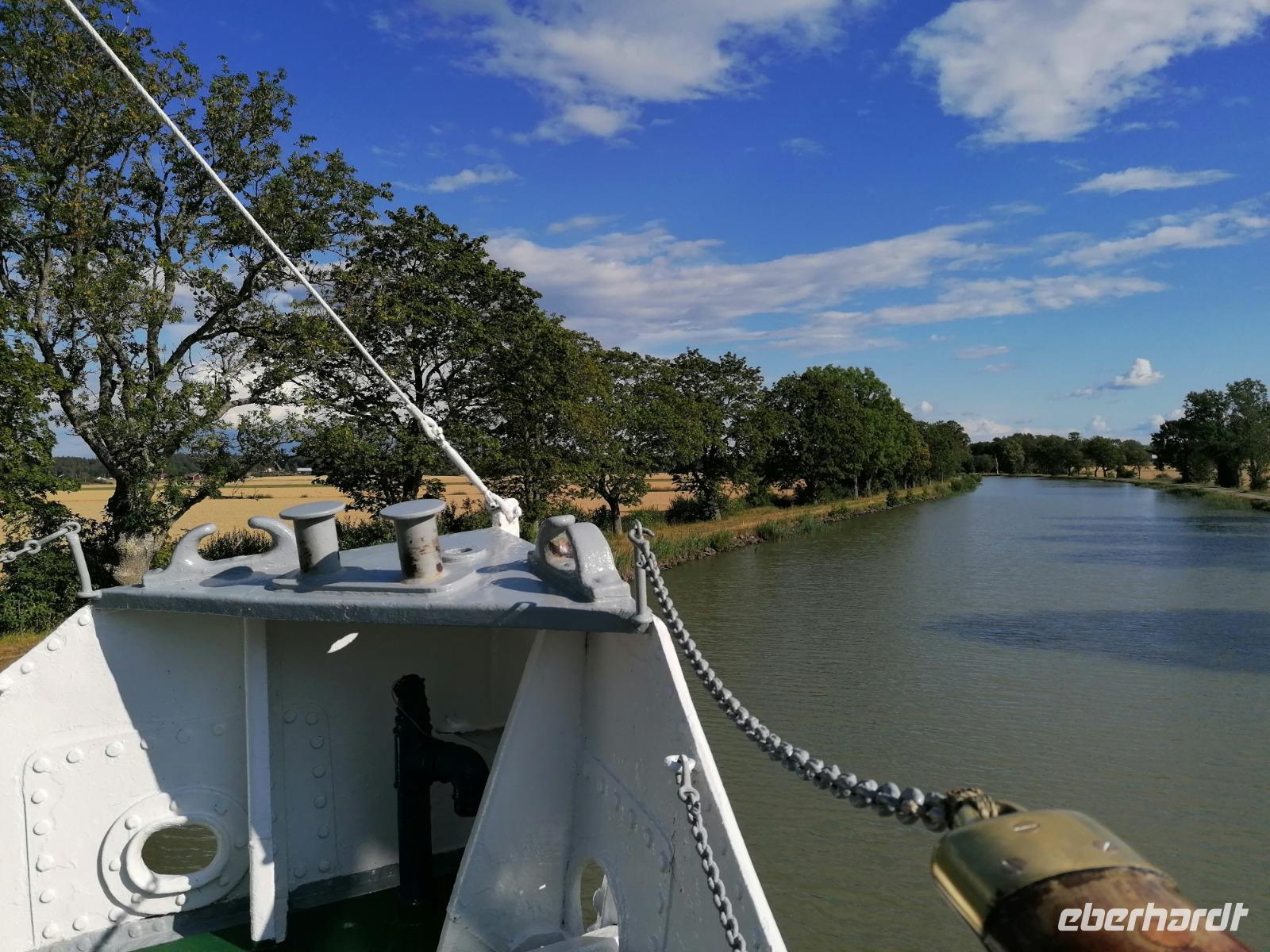 Heute startet der unser Tag etwas später in Motala. Nach dem Frühstück brachen wir auf in Richtung Borenslut. Hier gibt es eine Schleusentreppe von fünf zusammenhängenden Schleusen, die insgesamt eine von 15,3 m überwinden müssen. Während die Crew allerhand mit dem Schleusen zu tun hatten, konnten wir entlang der Schleusentreppe spazieren und wunderschöne Bilder schießen. Nach der Schleusentreppe von Borenslut fuhren wir weiter über den Boren See bis zur gefürchteten Kurve von Borensberg. Die Spitze Kurve meist hatten wir mit Hilfe eines Seils mit Bravour. Nach der Aufregung des Morgens konnten wir am Oberdeck entspannen. Um die Mittagszeit erreichten wir das Aquädukt Jungs Norrby. Hier überquert der Götakanal die Reichsstraße 63 und wurde im Jahre 1993 erbaut. Bevor wir ein weiteres Highlight der Reise erreichten, stärken wir uns erstmal mit einem Mittagessen. Beim Mittagessen wurden wir jedoch mit einem festlich geschmückten Speisesaal überrascht. Zum Mittagessen hatte sich die Crew etwas Besonderes einfallen lassen. In typisch schwedischer Tradition feierten wir das Fest der Krebse. Die Crew zeige uns wie man die Krebse isst und reichte dabei einen typisch schwedischen Aquavit. Nach dem ausführlichen Mittagessen erreichten wir schließlich die Schleusen von Berg. Das Schleusensystem von Berg umfasst 15 Schleusen, die insgesamt eine Höhe von 40 m bis zum See überwinden. Während das Boot noch in der ersten Schleuse steckte, spazierten wir zum Kloster Vreta. Das alte Nonnenkloster wurde der heiligen Brigitta gewidmet und war das erste Nonnenkloster in Schweden. Nachdem die Kirche und das Kloster besichtigt hatten, gingen wir zurück zu Schleusentreppe. Mittlerweile war die MS Diana mitten in der Schleusentreppe gefangen und wir konnten neben dem Schiff entlang spazieren. Die Schleusentreppe von Berg ist wirklich ein faszinierendes Meisterwerk der damaligen Technik. Zurück am Schiff fuhren über den See Roxen und genossen beim Abendessen die herrliche Aussicht. Nach dem Abendessen reichte mir die Schleuse Klämman. Wie es schon Tradition war, spazierten wir entlang des Kanals in den Sonnenuntergang hinein.