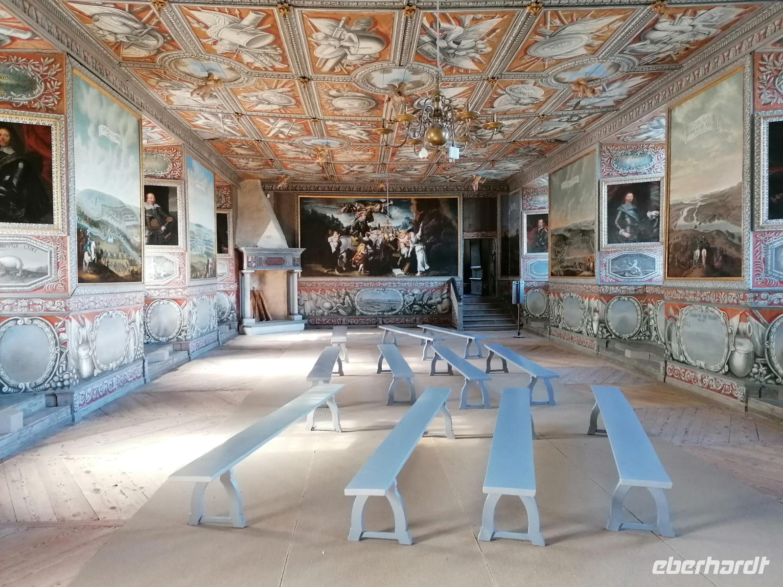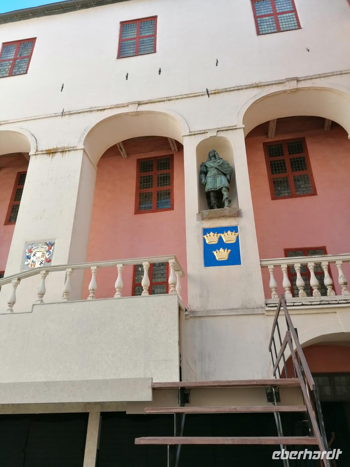 Unsere erste Nacht auf dem Schiff war etwas ungewohnt aber gut. Das Frühstück kommt im Speiseraum oder auch auf dem Oberdeck eingenommen werden. Nach dem Frühstück erreichten wir den Schärengarten von Läckö. Auf der Insel Kallandsö thront das gut erhaltene Barockschloss Läckö inmitten des Vännern-Sees. Am Schloss wurden wir von einer Schlossführerin abgeholt. Wir hätten viele Formationen über das schöne Schloss und deren Vergangenheit. Im Schloss besichtigten wir wunderschöne Seele mit Wandmalereien und Deckenornamenten. Die Geschichte des Schlosses wurde uns lebendig und detailreich wiedergegeben. Nachdem wie die Seele des Schlosses besichtigt hatten gab es Freizeit. Wir besuchten die Gärten des Schlosses, den Kerker und sonstige übriggebliebenen Räume. Die Gärten des Schlosses wo wilde Blumen blühten faszinierte uns am meisten. Unterhalb des Schlosses lag auch noch ein altes Wikingerschiff ein Land, wo wir einen ersten Eindruck über die Wikinger erhalten konnten. Kurz vor Mittag gehen wir dann wieder zurück zum Schiff und wie erhielten wieder ein 2-Gang Mittagsmenü. Am Nachmittag hielten wir in Sjörtorp. Hier beginnt der eigentliche Göta-Kanal mitsamt seinen 66 Schleusen. Der Kanal wurde von 1810 bis 1832 erbaut und führt von Göteborg bis nach Stockholm an die Ostküste. In Sjörtorp findet sich ein Schleusensystem mit 4 Stufen. Bei der ersten Stufe konnten wir an Land gehen. Zunächst besuchten wir das Museum von Sjörtorp und im Anschluss konnten wir neben dem Boot bis zur vierten Schleuse spazieren. Zurück an Bord gab es dann eine Kaffeepause mit Kuchen und wir konnten gemütlich auf dem Schiff die Landschaft genießen. Nach dem Abendessen erreichten wir Hajstorp, wo wir in der obersten Schleuse angelegten. Hier blieben wir über Nacht und wir nutzen die Möglichkeit für einen weiteren Abendspaziergang entlang des Kanals.