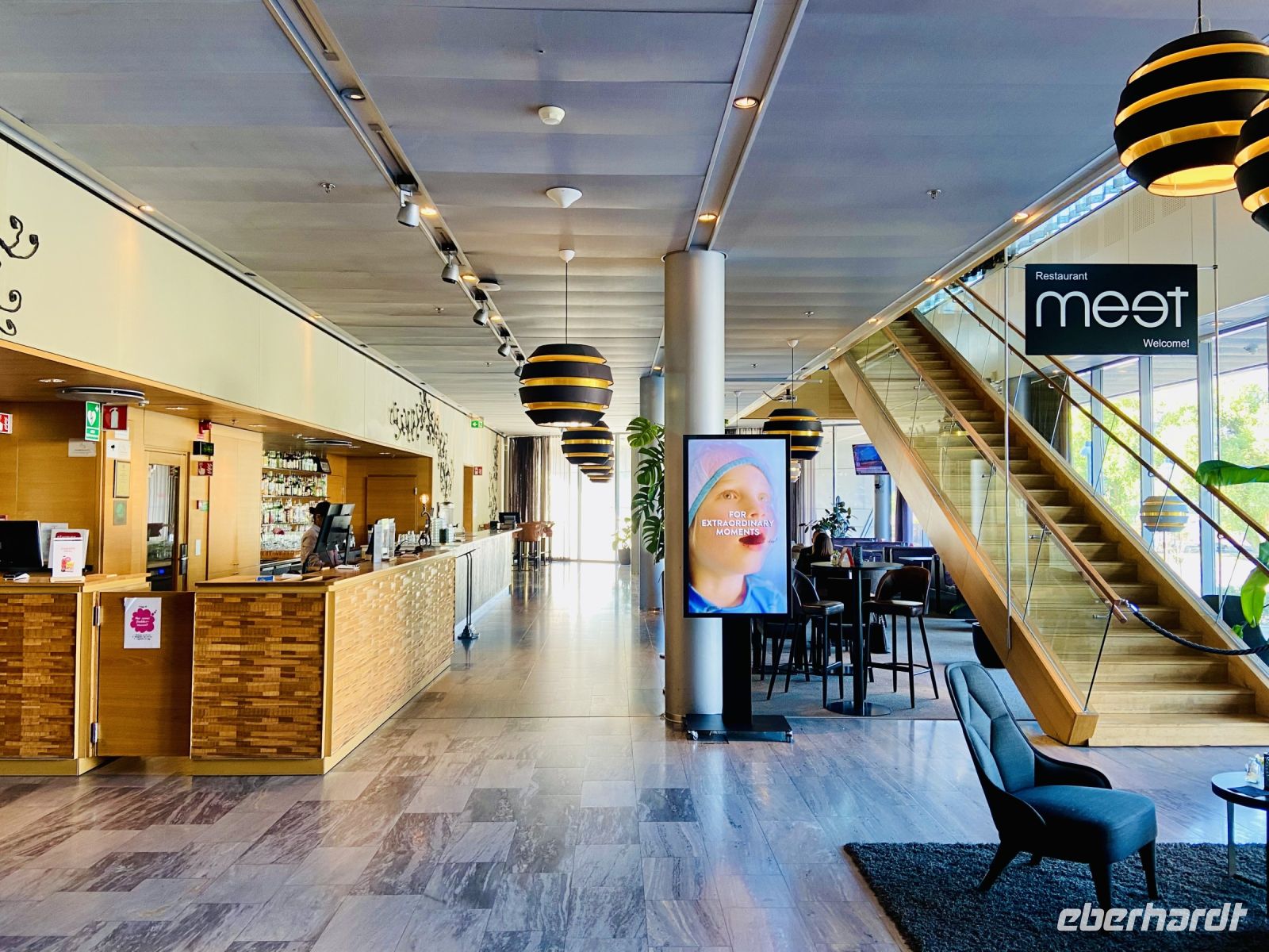 Der Himmel freut sich mit uns: Beim Abflug in Deutschland lacht die Sonne – und bei der Ankunft in Stockholm haben wir ebenfalls bestes Wetter. Nach einem entspannten Lufthansa-Flug erreichen wir gut gelaunt, voller Erwartung und Vorfreude die schwedische Hauptstadt – das Venedig des Nordens. Unser Gepäck kommt relativ schnell und auch der Weg vom Terminal 5 zum Busparkplatz beim Terminal 4 ist leicht zu bewältigen. Nach ca. 40 km erreichen wir unser Hotel Scandic Talk im Messeviertel. Geräumige Zimmer erwarten uns und wir haben Zeit für eine kleine Ruhepause oder einen ersten Erkundungsgang. Am Abend treffen wir uns im Restaurant des Hotels und besprechen den Ablauf des nächsten Tages, danach erwartet uns ein gemeinsames Abendessen. Extra für unsere Gruppe ist ein Buffet aufgebaut und wir können nach Herzenslust schlemmen.