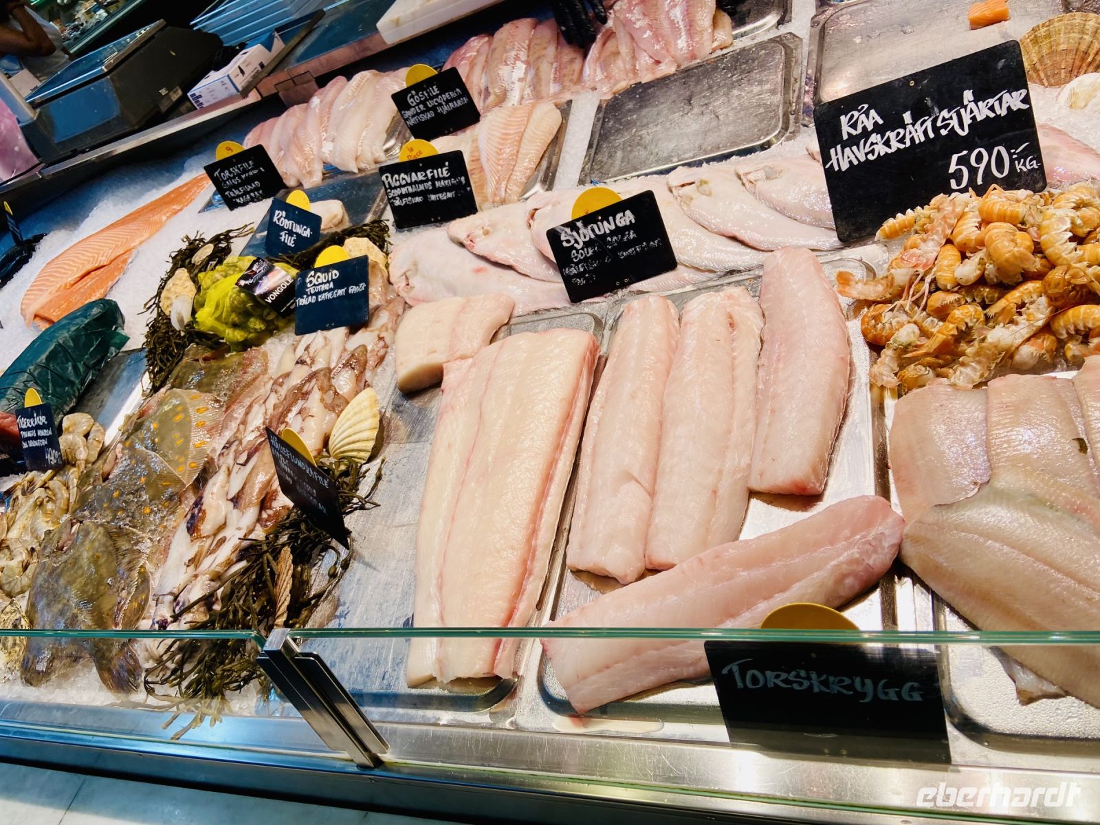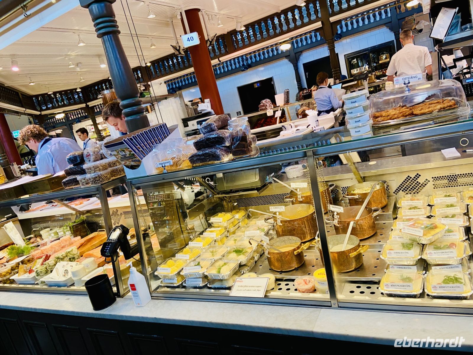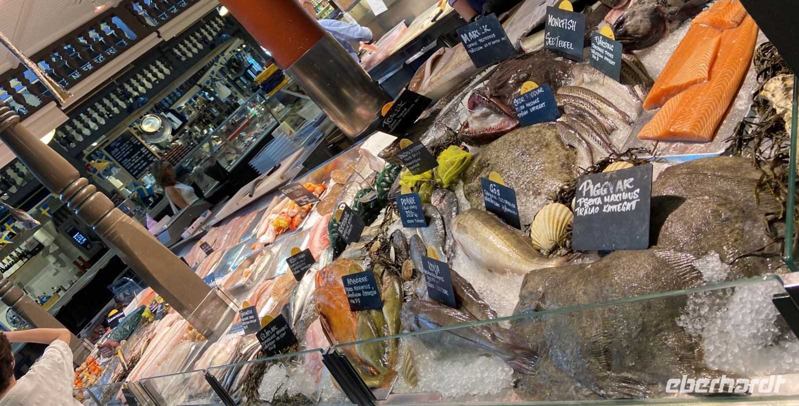 Am Mittag verabschiedet sich unser Stadtführer Pieter von uns und übergibt den Staffelstab an seinen Kollegin Jenny, die uns nun in die kulinarischen Geheimnisse Stockholms einführt. Unsere erste Station ist die historische Markthalle Saluhallen, wo wir Smörrebröt mit Lachs und Shrimps, verschiedene Käsesorten sowie Elch und Rentier verkosten dürfen. Weiter geht es in die teilweise künstlerisch gestalteten Gewölbe der Stockholmer U-Bahn, die uns zum Nystekt Stömming, dem legendären Stockholmer Fisch-Imbiss, führt. Hier kommen wir dann in den Genuss des gebratenen Herings auf Knäckebrot. Als Nachtisch knabbern wir noch die leckeren Lakritzstangen, die unsere Reisebegleitung Heike wie Rotkäppchen in einem Körbchen für uns bereithält. Danach sind wir sehr, sehr satt und spazieren gemächlich weiter mit Jenny durch die Stadt. Sie unterhält uns mit zahlreichen Informationen über Stockholm und seine Bürger und wir werfen einen Blick in Stockholms engste Gasse.