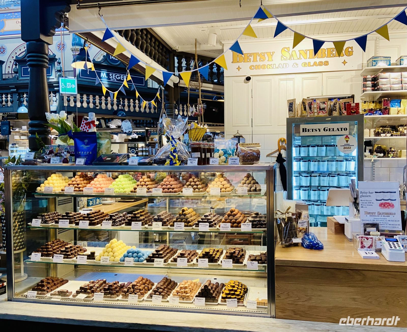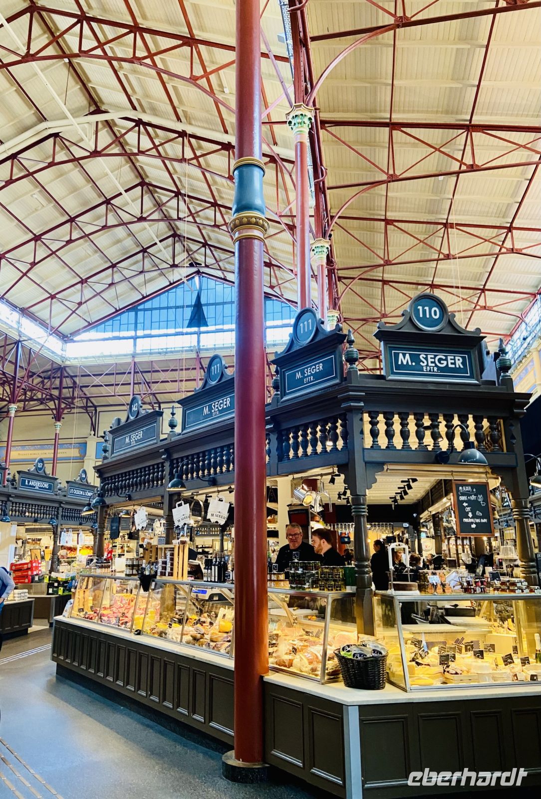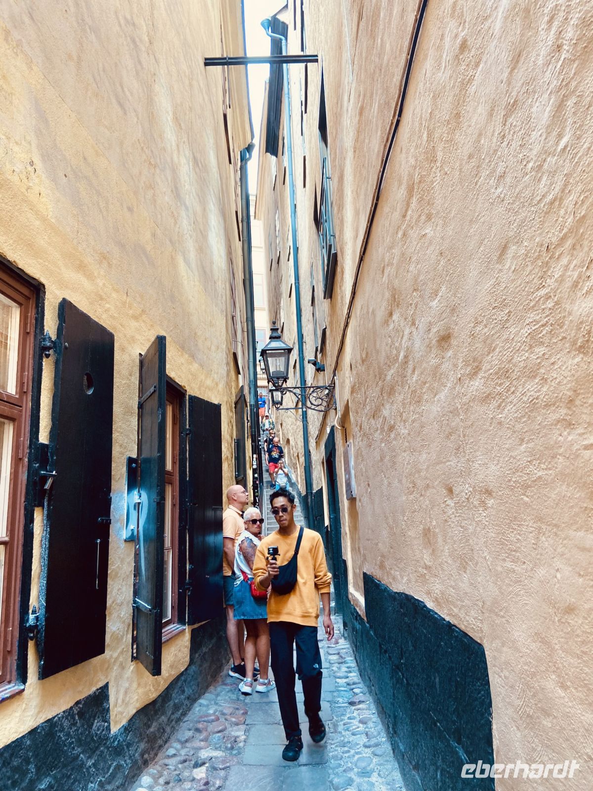 Am Mittag verabschiedet sich unser Stadtführer Pieter von uns und übergibt den Staffelstab an seinen Kollegin Jenny, die uns nun in die kulinarischen Geheimnisse Stockholms einführt. Unsere erste Station ist die historische Markthalle Saluhallen, wo wir Smörrebröt mit Lachs und Shrimps, verschiedene Käsesorten sowie Elch und Rentier verkosten dürfen. Weiter geht es in die teilweise künstlerisch gestalteten Gewölbe der Stockholmer U-Bahn, die uns zum Nystekt Stömming, dem legendären Stockholmer Fisch-Imbiss, führt. Hier kommen wir dann in den Genuss des gebratenen Herings auf Knäckebrot. Als Nachtisch knabbern wir noch die leckeren Lakritzstangen, die unsere Reisebegleitung Heike wie Rotkäppchen in einem Körbchen für uns bereithält. Danach sind wir sehr, sehr satt und spazieren gemächlich weiter mit Jenny durch die Stadt. Sie unterhält uns mit zahlreichen Informationen über Stockholm und seine Bürger und wir werfen einen Blick in Stockholms engste Gasse.