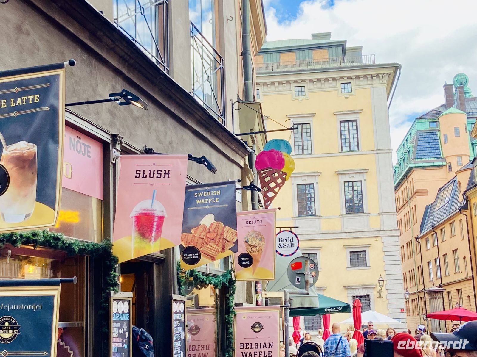 Obwohl unsere Bäuche schon gut gefüllt sind, erwartet uns noch ein kleines Sahnehäubchen in Form der Prinzesstorte, die in dem pittoresken Café Grillska Huset am Stortorget in der Altstadt serviert wird. Über Abendessen denken wir an diesem Tag nicht mehr nach, das wird ersatzlos gestrichen. Am Nachmittag verabschieden wir uns von Jenny und erobern die Stadt noch weiter auf eigene Faust, es gibt sooooo viel zu entdecken. Die grüne SL-Karte, die wir von Eberhardt-Reisen bekamen, eröffnet uns den Zugang zum gesamten Netz des ÖPNV: U-Bahn, Metro, Straßenbahn, Busse und Fähren können wir damit benutzen und so schwärmen wir in alle Richtungen aus, um die Stadt zu erobern. Erst am Abend kehren wir zurück in unser Hotel - müde, aber glücklich über all die schönen Eindrücke.