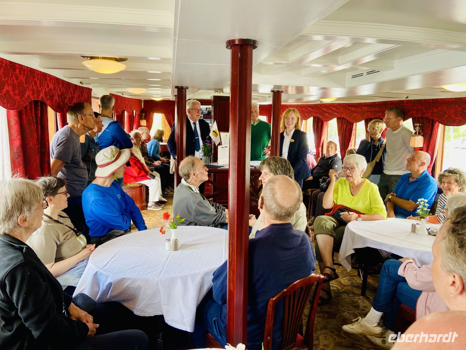 Selbst erfahrene Reisende, die schon die unterschiedlichsten Länder erleben durften, sind sich einig in ihrem Urteil: diese Reise ist etwas ganz besonderes. Es ist ein dreidimensionales Erlebnis, bei dem man - neben der eigentlichen Strecke mit ihren Stationen, Bildern und Sehenswürdigkeiten - eintaucht wie in einen Zauber. Das Licht, die Wolken, die Stille, durch die das Schiff gemächlich zieht, sind oft fast unwirklich. Es herrscht eine friedvolle, familiäre Stimmung an Bord. Jeder sucht sich seinen Lieblingsplatz, um ganz in den Impressionen zu versinken: malerische bunte Häuser, grüne Wiesen und dunkle Wälder säumen die Strecke. Kleine Segelhäfen mit beschaulichem Treiben werden passiert und überall an den Schleusen und den Häfen stehen Menschen, die uns zuwinken und die Diana begrüßen.