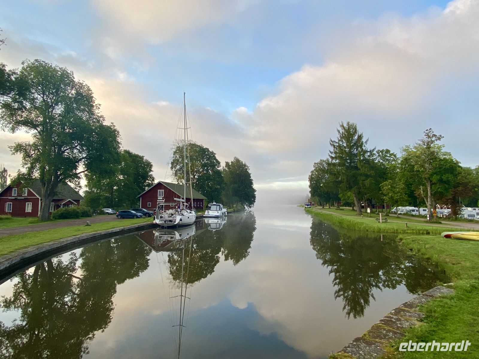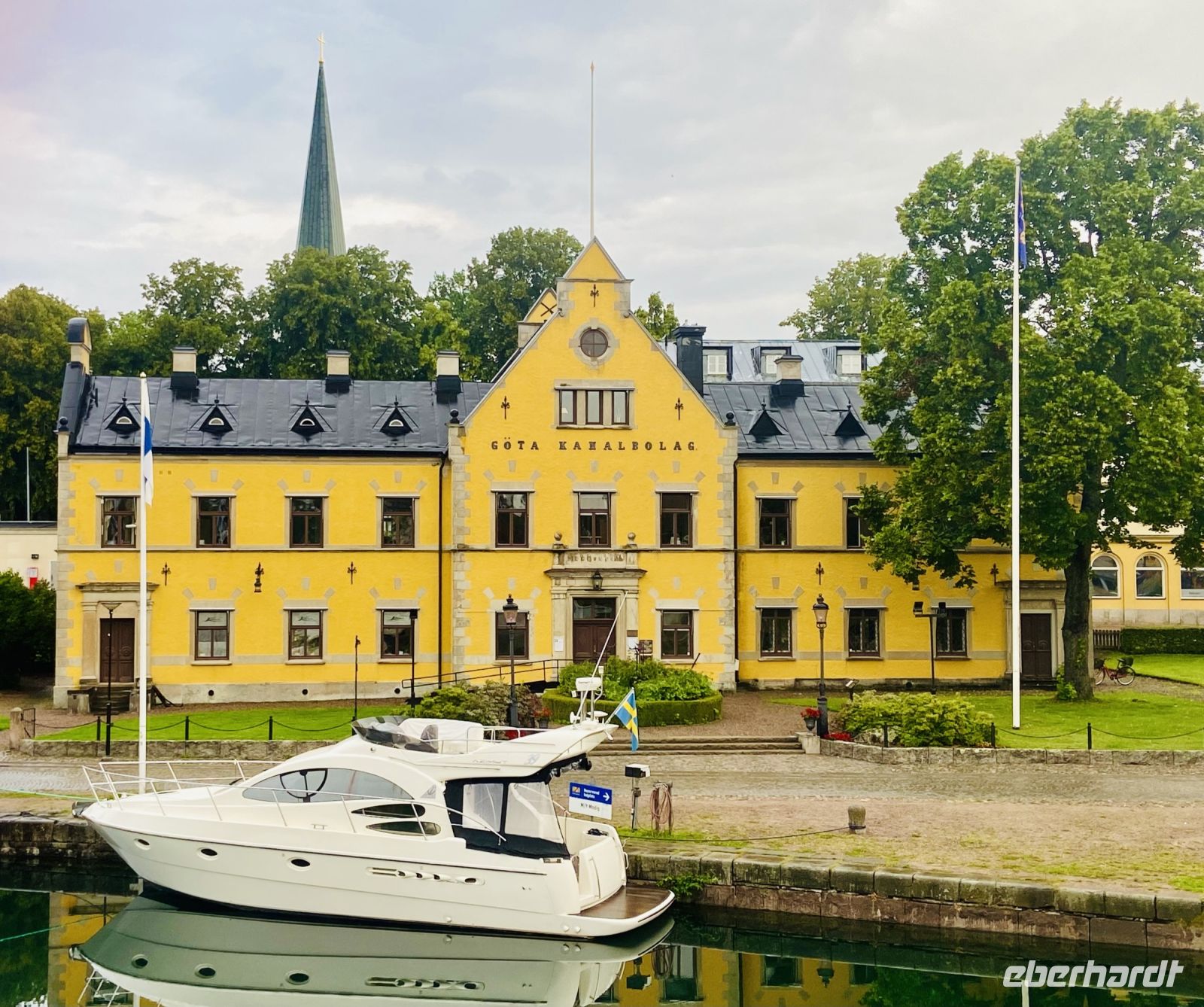 Auftakt an diesem Tag ist die Passage der berühmten Schleusentreppe von Berg mit ihren sieben Stufen, die das Schiff um insgesamt fast 19 m erheben. Einige Gäste bleiben an Bord und erleben dieses Schauspiel live, andere gehen neben dem Schiff her oder schließen der Bordreiseleitung an und nutzen die Zeit für eine kleine Wanderung zum Vreta Kloster. Es gehört zu den bedeutendsten Klöstern des Landes und seine Geschichte reicht zurück bis ins 12. Jahrhundert. Nachdem wir alle Schleusentreppen erklommen haben und auf dem langen Teil des Kanals fahren, begegnet uns unser Schwesterschiff MS Juno, die in diesem Jahr ihren 150. Geburtstag feiert. Sie wird gebührend von uns begrüßt. Die Reise geht weiter durch das Aquädukt Ljungsbro , das uns über die Autobahn trägt und am Nachmittag erwartet uns in Borensholt die nächste Schleusentreppe. Am Abend erreichen wir Motola, wo wir anlegen und über Nacht liegen bleiben. So bietet sich nach dem Abendessen noch die Möglichkeit, das Motormuseum zu besichtigen. Nahe unserer Anlegestelle befindet sich die originelle Sammlung von wertvollen Oldtimern, Motorrädern und Technik aus der Zeit vor Smartphone und Computer, KI und Internet, Wlan und Bluetooth. Wir können uns gar nicht sattsehen an all den Erinnerungsstücken, die an die eigene Jugend, an das Elternhaus und die Großeltern erinnern. Nach einem kleinen Spaziergang am Hafen kehren wir dann zurück zum Schiff und lassen den Tag ausklingen.