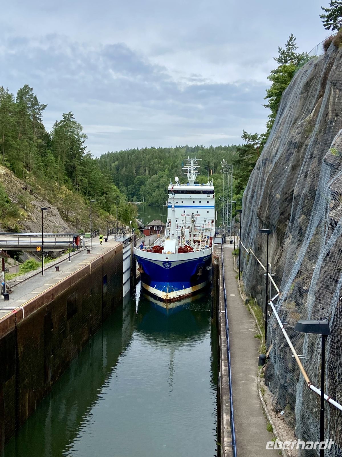 Heute beginnt unser letzter Tag an Bord – es geht wieder früh los. Nach dem Frühstück erreichen wir Trollhättan und haben ein letztes Mal die Möglichkeit, von Bord zugehen, um neben dem Schiff herzuspazieren. Entlang des beschaulichen Uferweges bummeln wir zum Kanalmuseum, wo uns die Geschichte des Trollhättan-Kanals, den wir nun bis Göteborg befahren werden, anschaulich dargestellt wird. Historische Ausstellungsstücke und altes Werkzeug, Schiffsmodelle und Fotos berichten aus alten Zeiten, ein Film in deutscher Sprache vertieft die Eindrücke und zeigt, wie im Winter der Eisbrecher Ale, dessen Maße speziell für den Einsatz auf dem See konzipiert wurden, arbeitet. Zurück an Bord erleben wir hautnah die Schleusung eines großen Öltankers, der uns über die Schleusenstufen entgegenkommt und im Bassin, dem Ausweichbecken, direkt an uns vorbeizieht. Diese Begegnung veranschaulicht die Bedeutung des Trollhättan-Kanals als Wasserstraße für die Handelsschiffahrt nach Göteborg.