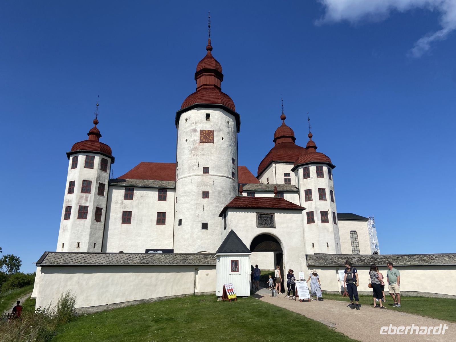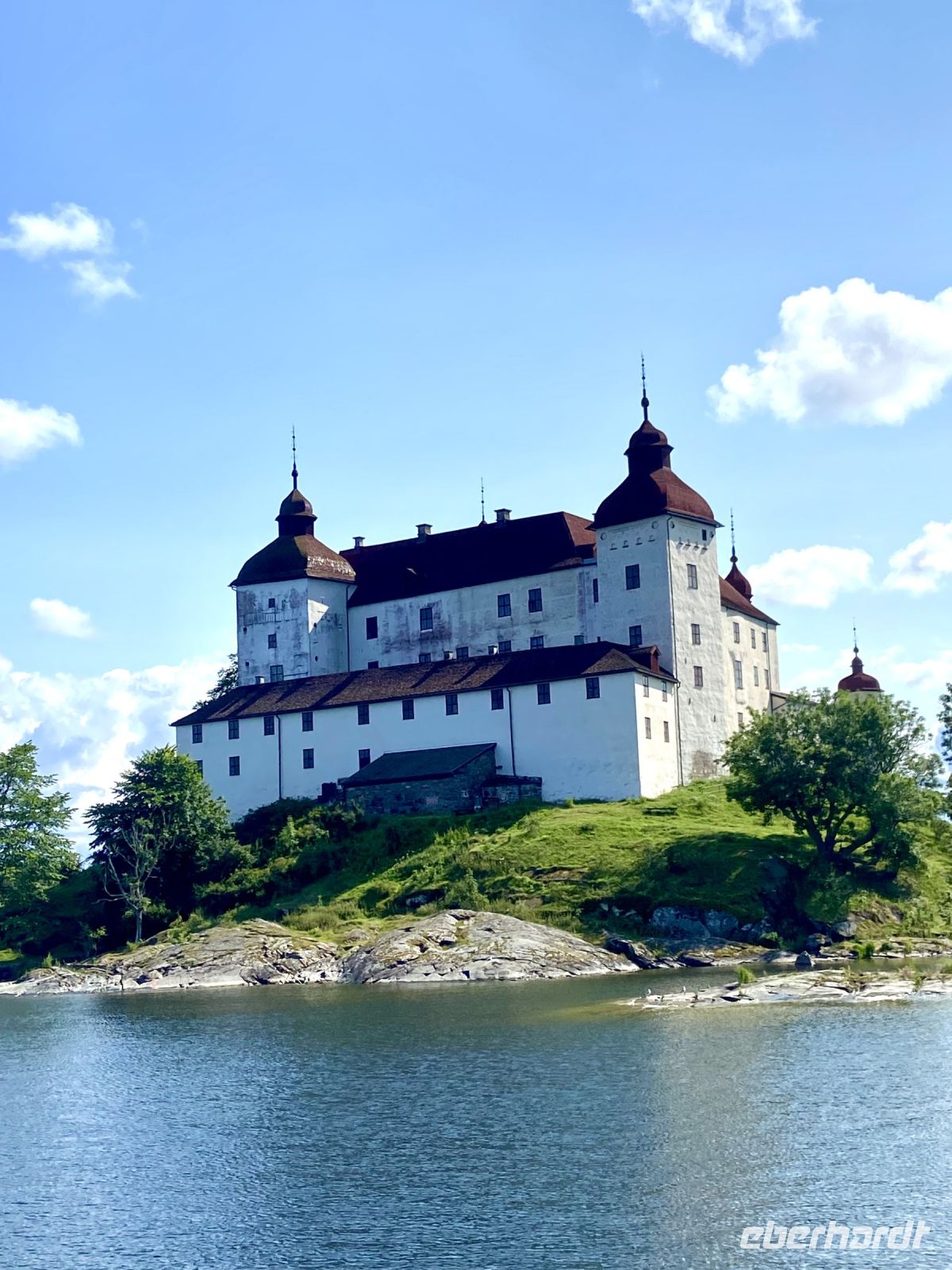 Kein Tag für Langschläfer: schon am frühen Morgen brechen wir auf in Richtung Sjötorp. Wieder bietet sich die Gelegenheit, das Schiff an der Schleuse schon zu verlassen und die letzten 1,9 m zu Fuß zurückzulegen. Während des Spaziergangs können wir unser Schiff beim Schleusen beobachten und herrliche Fotos machen. Bald schon fällt unser Blick auf den kleinen Ort, wo sich am Hafenbecken ein altes rotes Lagerhaus erhebt. Dieses stimmungsvolle Gebäude beherbergt das Kanal- und Schifffahrtsmuseum. Zahlreiche Exponate berichten über den Göta-Kanal, seine spannende Geschichte und über die Schifffahrt vergangener Zeiten auf dem Göta-Kanal, Vänern und Vättern. Vom Museum laufen wir zur letzten Schleuse des Göta-Kanals, wo uns unser Schiff zum Wiedereinstieg empfängt. Nun heißt es „Abschied nehmen“: wir verlassen den Götakanal, passieren das Tor zum Vänern-See, dem größten See Schwedens. Er erstreckt sich über eine Fläche von etwa 5.655 Quadratkilometern und ist fast 140 Kilometer lang. Am Nachmittag erreichen wir die Halbinsel Vänern und legen direkt vor dem Schloss Läckö an. Hier erwarten uns örtliche Reiseleiter zu einer Schlossführung. Der Ursprung von Schloss Läckö geht zurück bis ins Mittelalter, wo auf der Insel eine Festung stand, die dann im Laufe der Jahrhunderte zu einem prunkvollen Schloss umgebaut wurde.