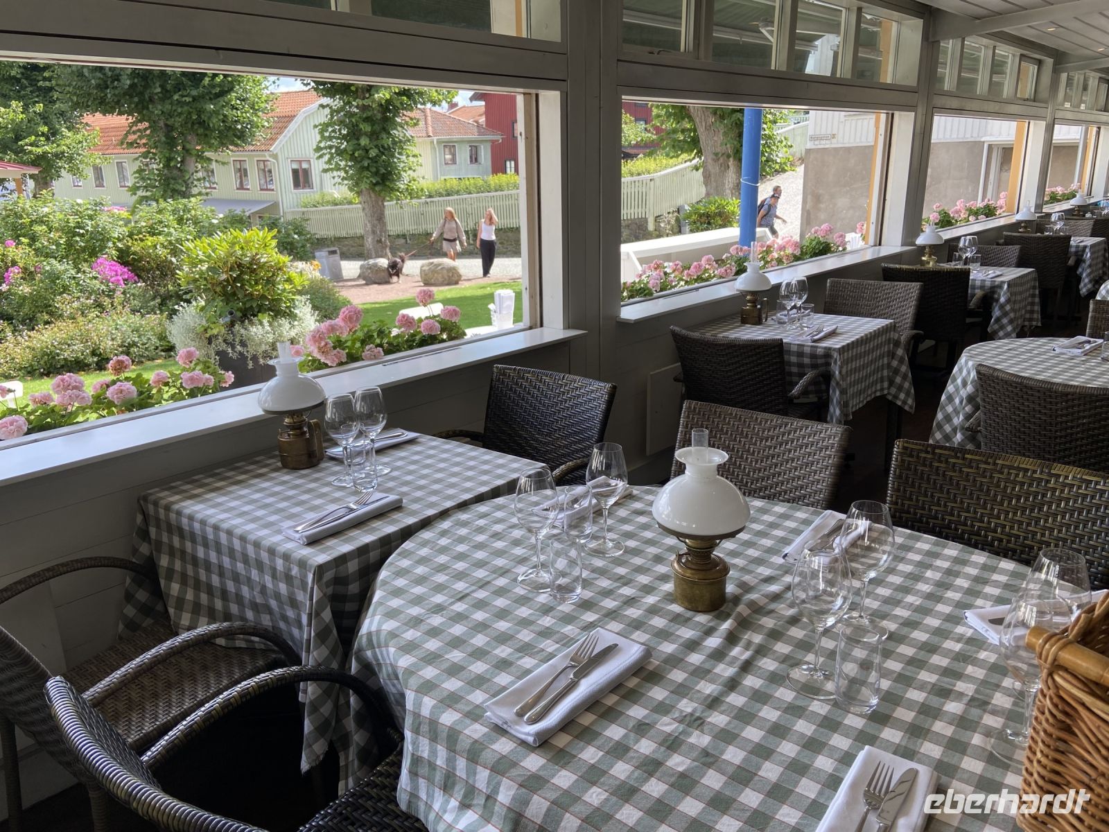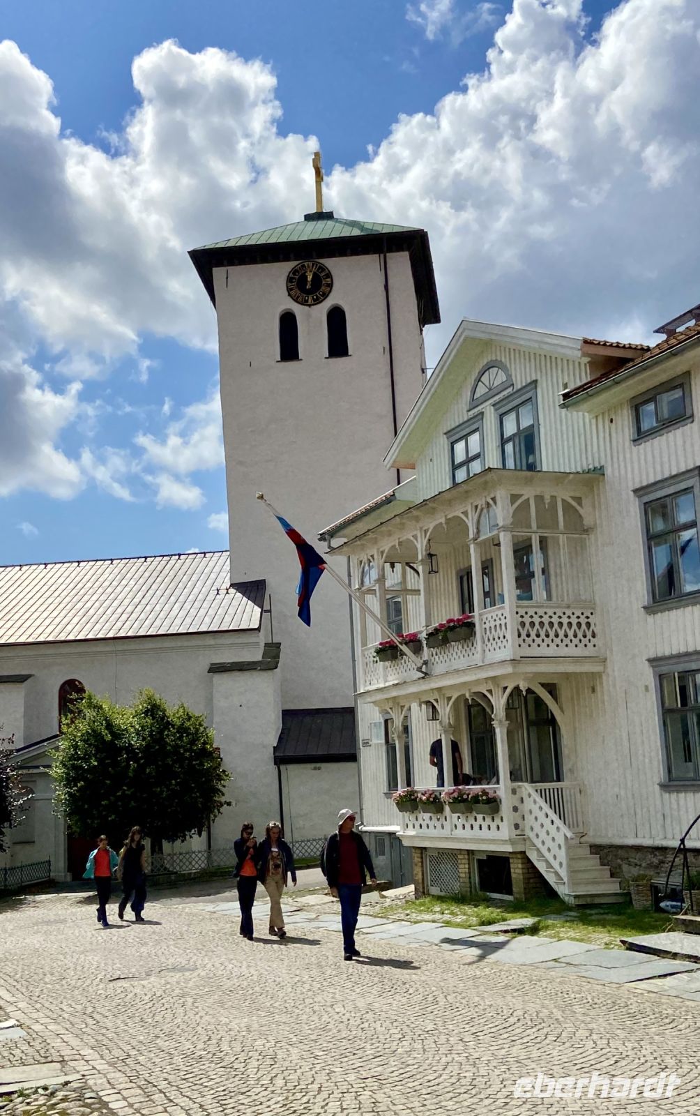Nach einem guten Frühstück sind wir gestärkt für unseren nächsten Programmpunkt. Mit der Reiseführerin Ingrid machen wir im Bus eine zweistündige Stadtrundfahrt durch Göteborg. Wir sehen das Stadsteater aus dem 19. Jahrhundert vor dem sich der imposante „Poseidon Brunnen“ erhebt, fahren vorbei am großen Stadium und über die Brücke Stora Nygatan zum Stadtteil Haga. Vom Masthugget haben wir einen wunderbaren Panoramablick auf die Stadt, den Hafen, die Göta-Älv-Brücken und Schärenlandschaft, unser nächstes Ziel. Wir verlassen die Stadt und setzen mit der kleinen Fähre über auf die Insel Marstrand. Hier beginnt eine neue Epoche für uns, die malerischen alten Häuser und die schmalen, mit Blumen bestandenen Gässchen scheinen aus der Zeit zu fallen. Auch das Ambiente des Grand Hotels, wo wir als Mittags-Imbiss, ein leckeres Krabbenbrot, einnehmen, erzählt von längst vergangenen Zeiten. Nach dem Mittagessen nutzen wir die freie Zeit, um zur Festung zu wandern oder an das Treiben an der belebten Hafenpromenade bei einem Cappuccino zu beobachten.