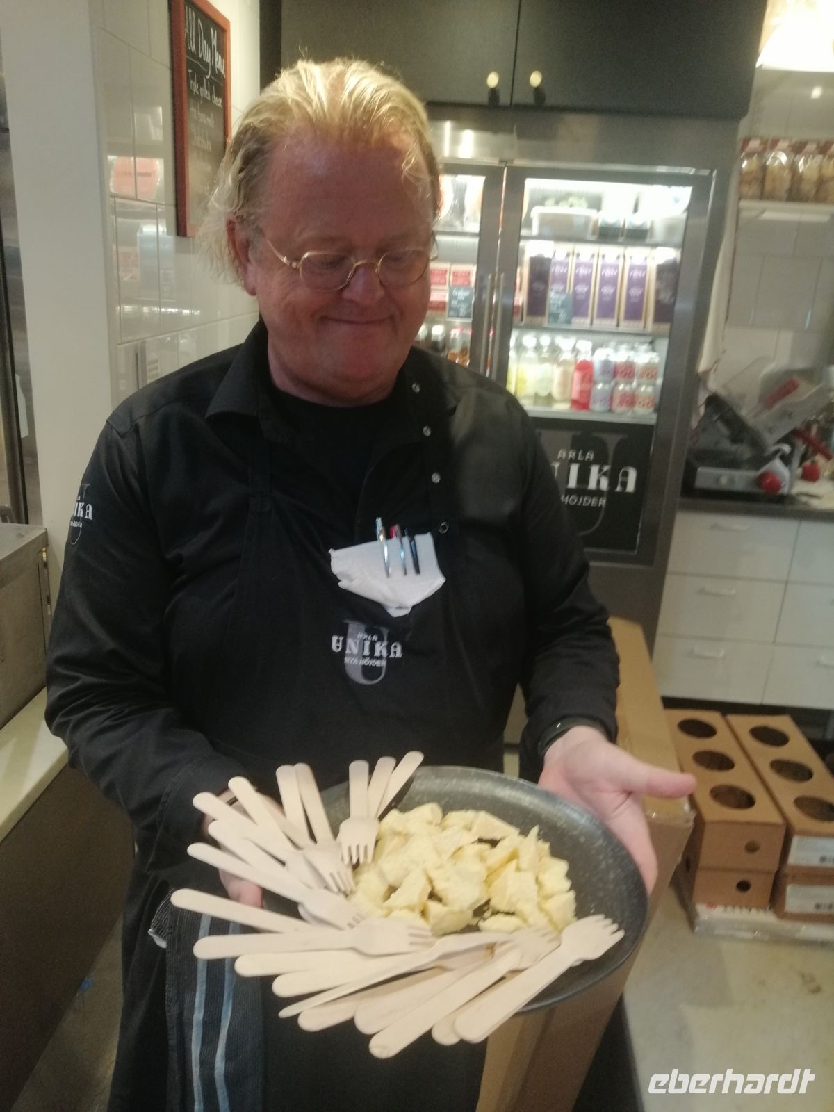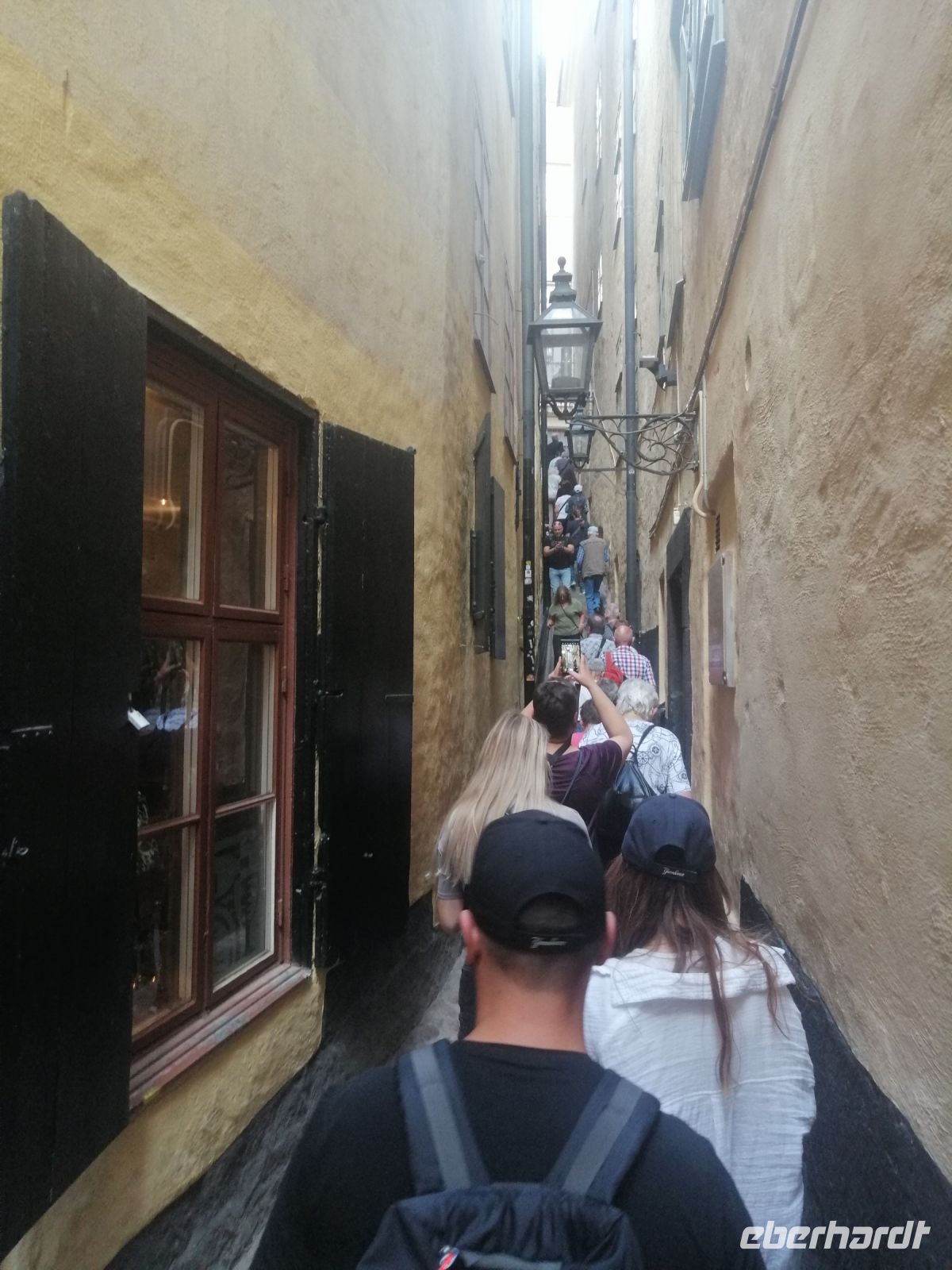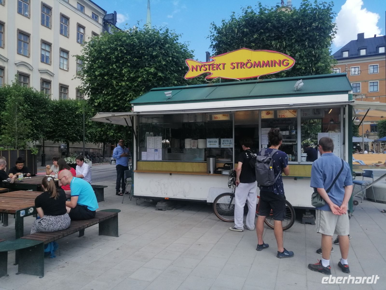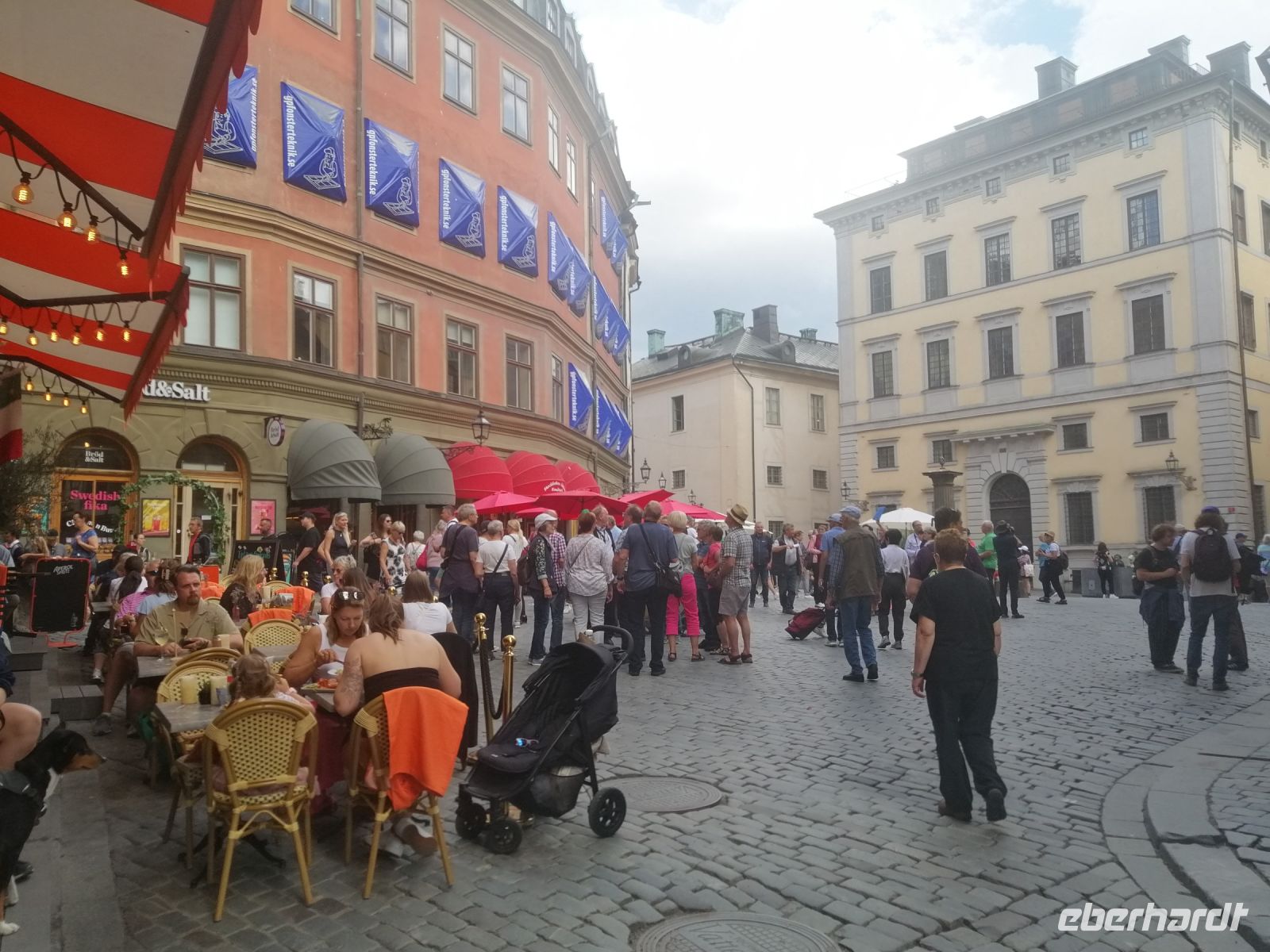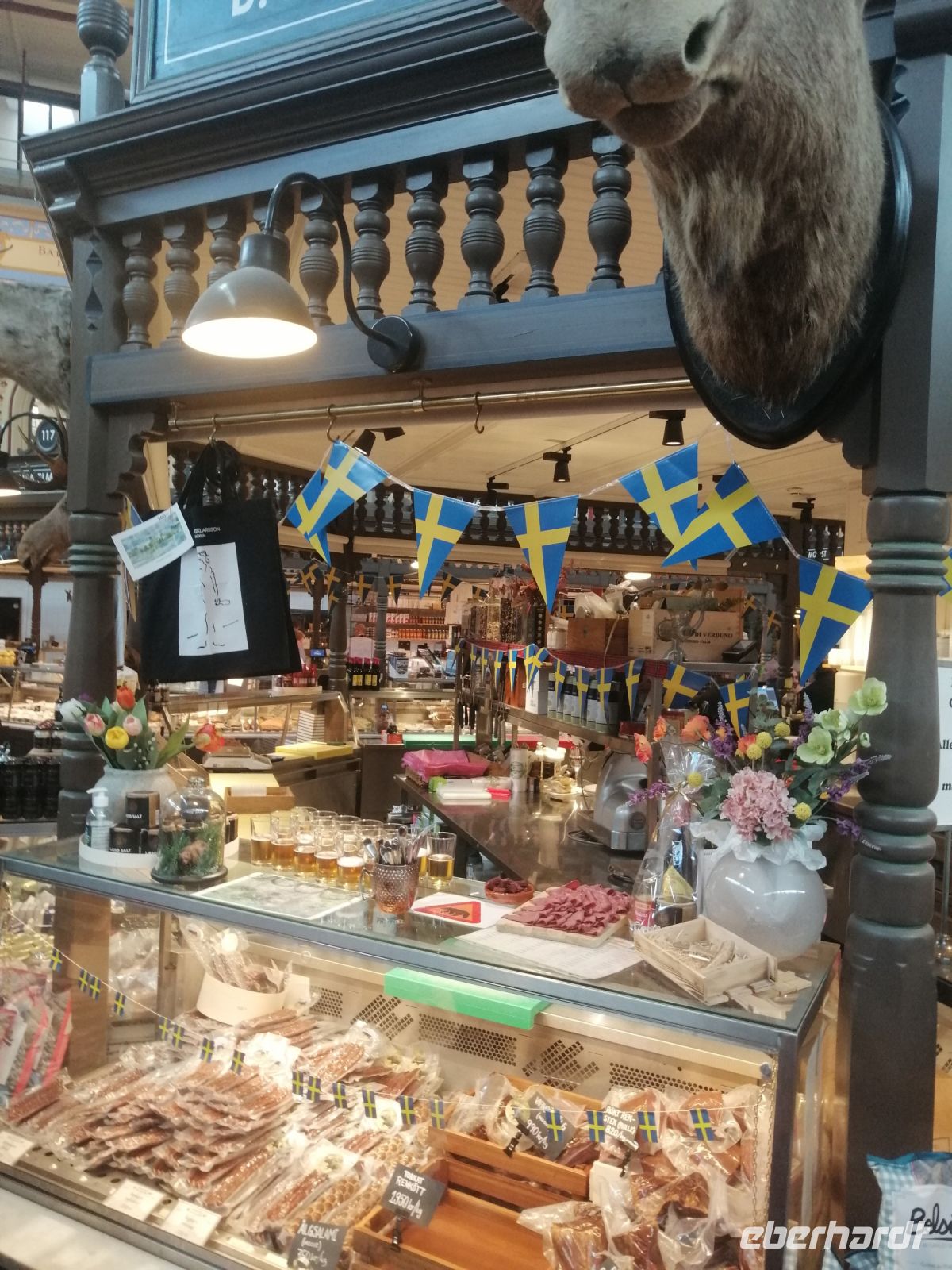 Gegen Mittag verabschiedeten wir uns von Carin. Nach einer kurzen Mittagspause trafen wir unseren Guide Tim Röhlcke. Obwohl Tim Deutscher ist, lebt er bereits seit zwanzig Jahren in Schweden. Tim präsentierte uns die kulinarische Seite Schwedens auf einer gastronomischen Stadtführung. Zunächst erkundeten wir verschiedene schwedische Köstlichkeiten in der nahegelegenen Markthalle im eleganten Stadtteil Östermalm. Anschließend fuhren wir mit der U-Bahn in die Altstadt Gamla Stan. Während der Führung erzählte uns Tim vieles über die jahrhundertealte Geschichte und lebhaften Anekdoten der schwedischen Vergangenheit. Unterwegs besuchten wir auch ein Café, wo wir die leckere, typisch schwedische Prinzessin-Torte genießen konnten.
