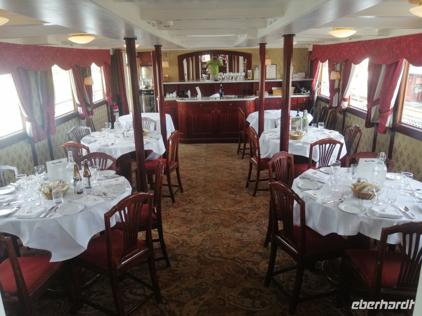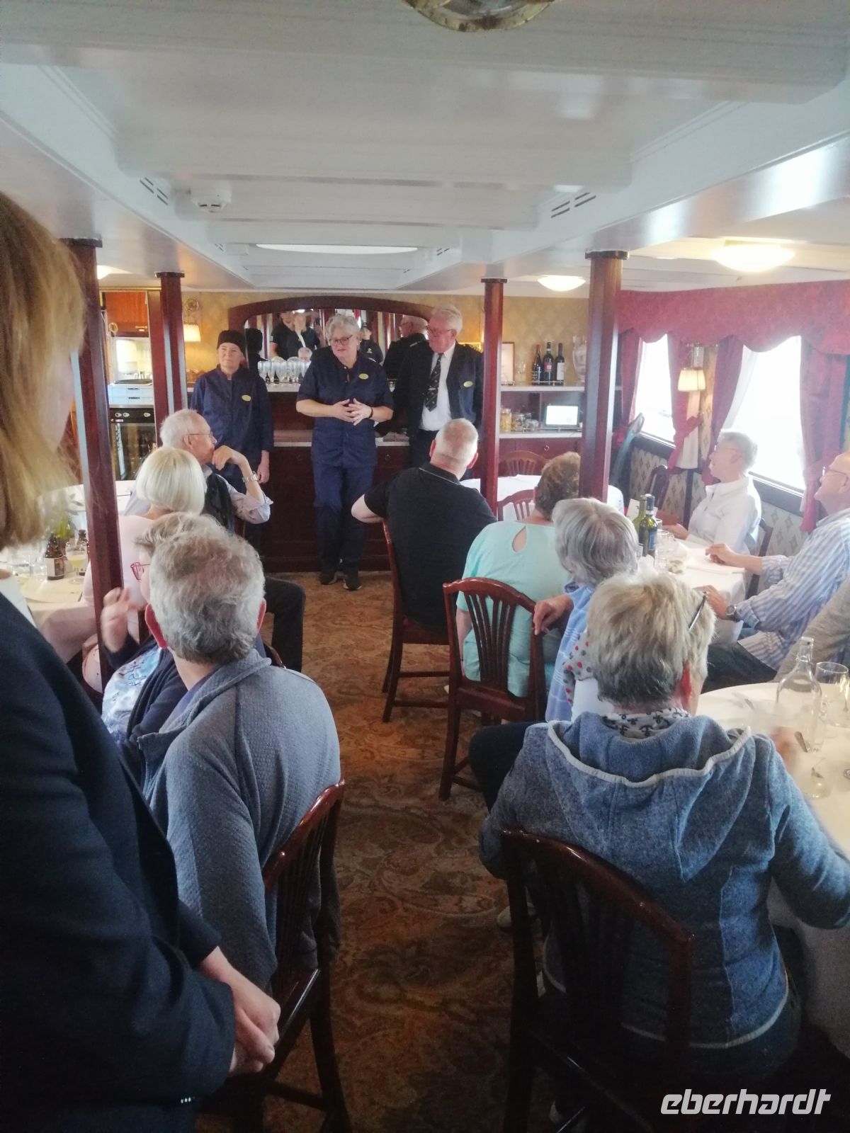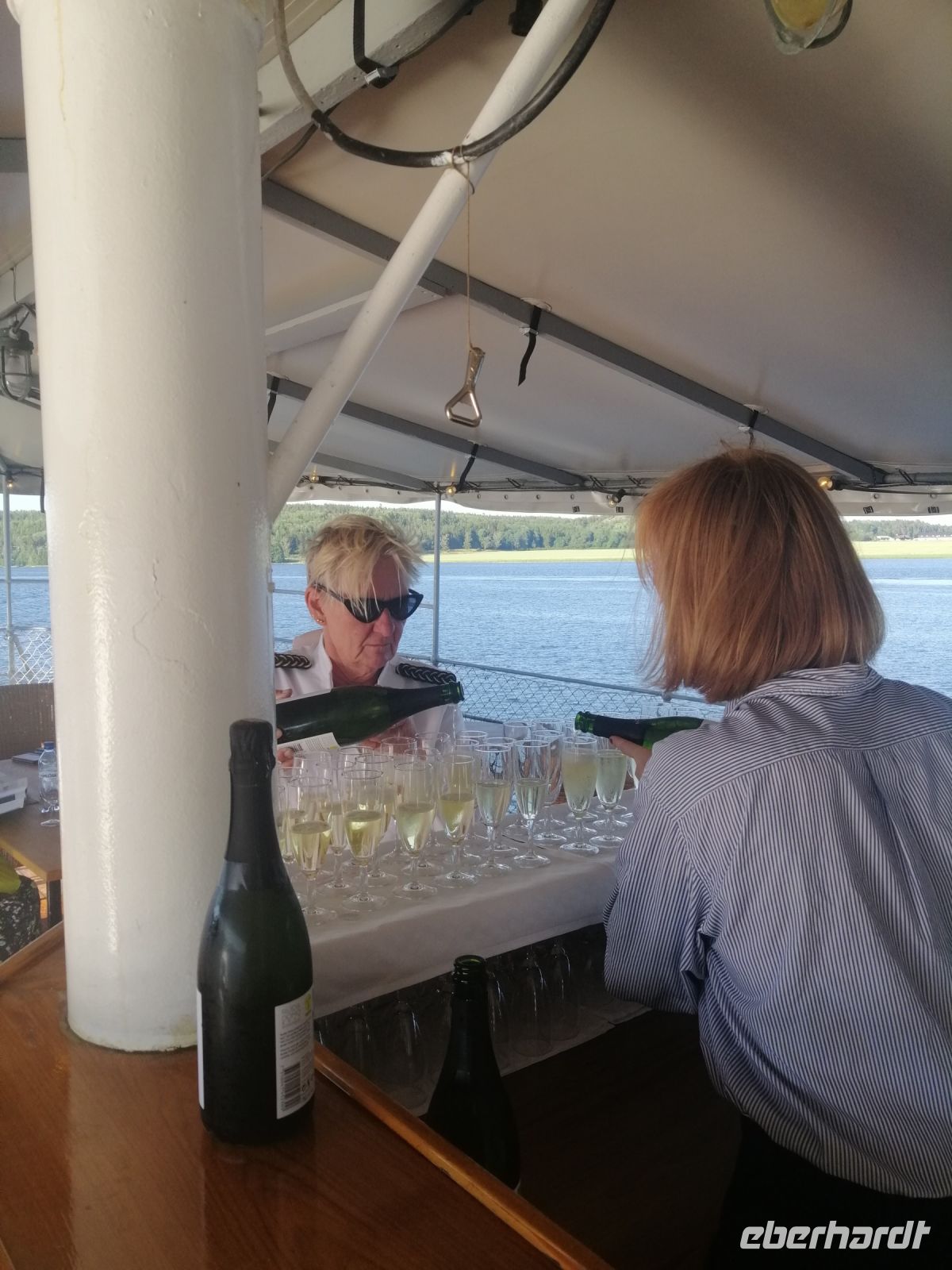 Nach dem Frühstück an Bord spazierten einige Reisegäste von Hajstorp nach Godhögen. Währenddessen passierte unser Schiff bei Sjötorp acht Schleusen und wartete auf uns im Hafen, bis wir das Kanalmuseum besuchten. Dort schauten wir uns historische Bilder von Sjötorp und die Innenausstattung alter Kanalschiffe an und lernten viel über die spannende Geschichte des Göta-Kanals. Sjötorp gilt nicht nur als die kleinste Hafenstadt Schwedens, sondern auch als das Tor zum Vänernsee, wo unsere Reise weiterging. Der Vänernsee ist Schwedens größter See und der drittgrößte See Europas, nach dem Ladoga- und dem Onegasee in Russland. Hier gibt es über 22.000 Inseln, Schären und Felsen. Am Nachmittag erreichten wir die Halbinsel Kållandsö, auf der sich das Schloss Läckö befindet, das bereits 1298 als Bischofssitz angelegt wurde. Seine Blütezeit erlebte es im 17. Jahrhundert, als Magnus Gabriel de la Gardie es übernahm und im barocken Stil umgestaltete. Im Rahmen einer Führung erkundeten wir das Schloss Läckö und die Sonderausstellungen. Da heute unser letzter gemeinsamer Abend war, organisierte die Mannschaft ein Kapitänsdinner mit Sektempfang. Kapitän Albert persönlich überreichte jedem Gast eine Urkunde zur Erinnerung an die Überquerung des Göta-Kanals – ein toller Abschluss unserer Reise!Am späteren Abend erreichten wir schließlich Vänersborg, unseren Nachthafen.