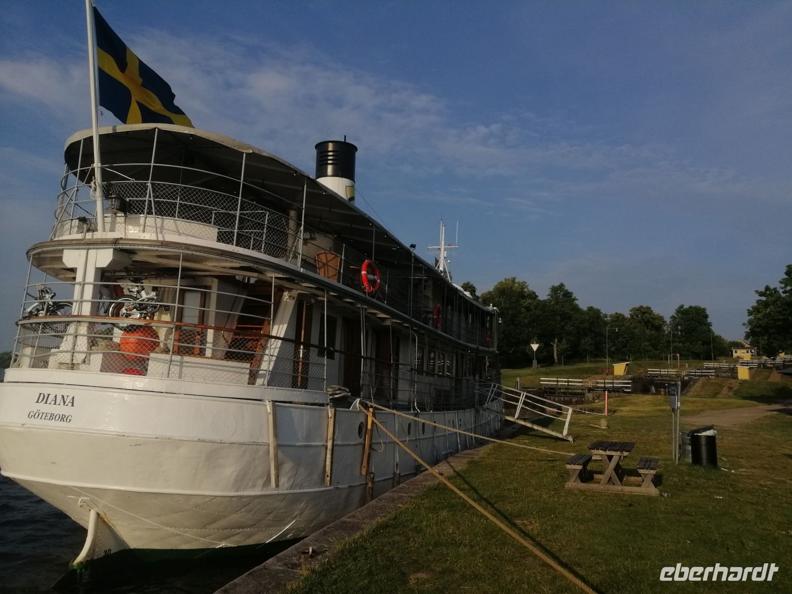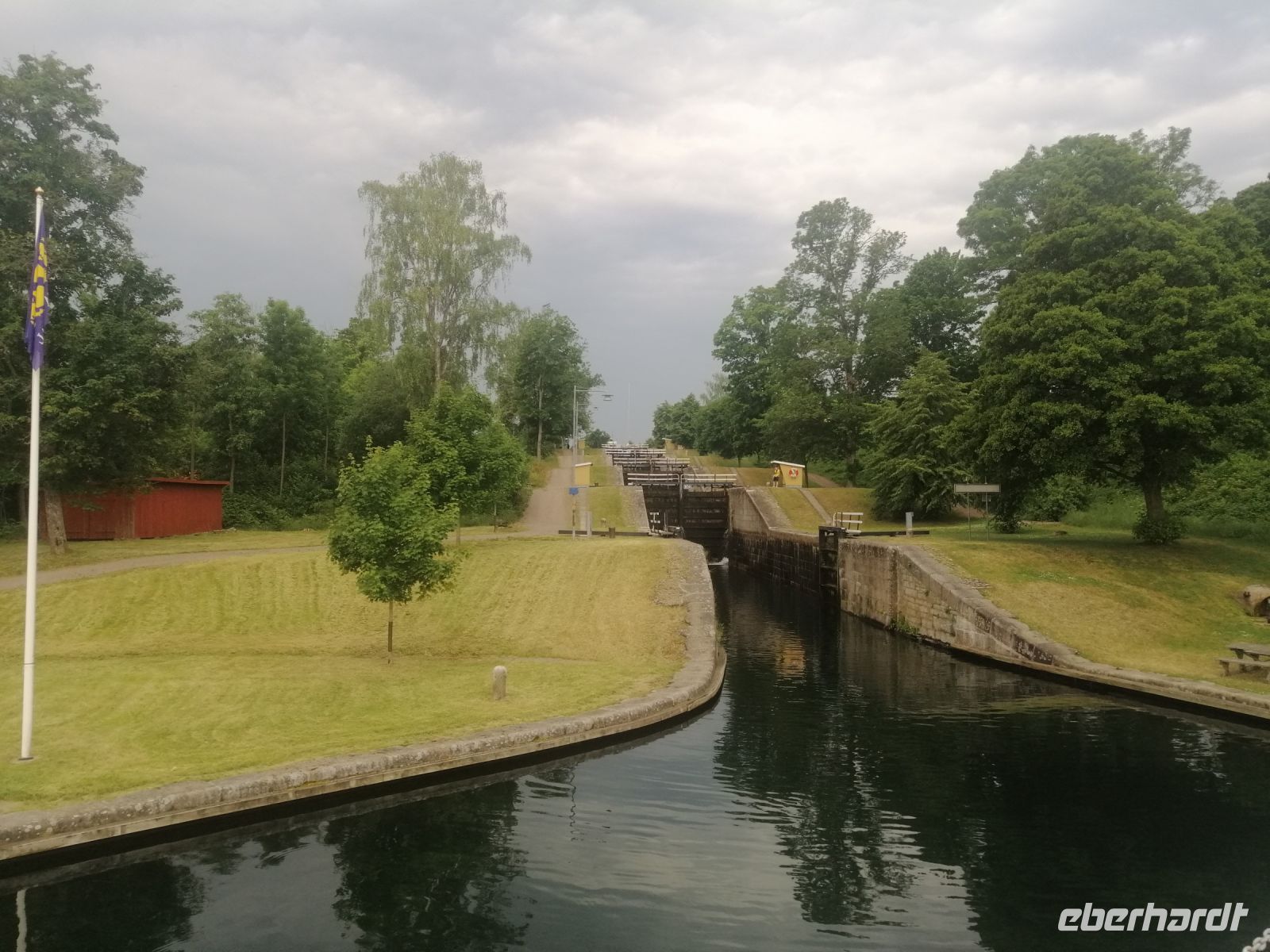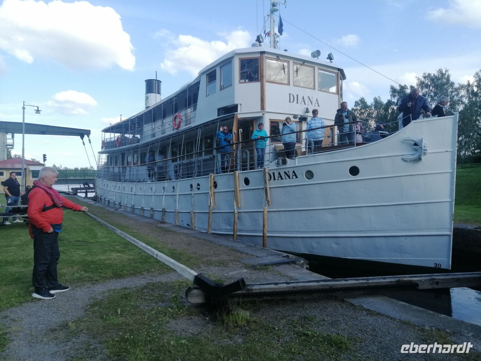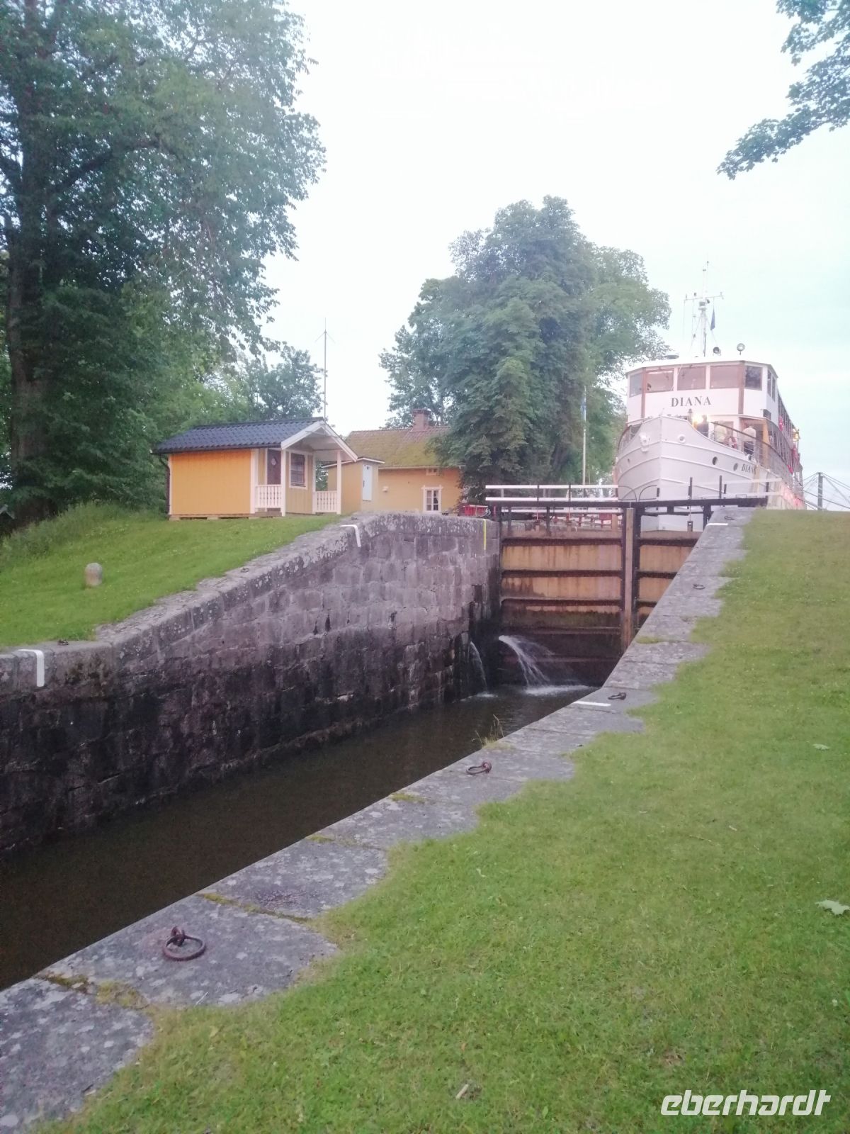Nach dem köstlichen Frühstück an Bord der MS Diana besichtigten wir mit Karin die Schlossruine in Stegeborg, die landschaftlich reizvoll auf einer kleinen Insel in der Ostseebucht Slätbaken liegt. Die Burg wurde im frühen Mittelalter errichtet und war jahrhundertelang „Schloss und Schlüssel“ zu Östergötland. Danach passierten wir die Schleuse in Mem und fuhren weiter nach Söderköping. Diese Schleuse wurde von 1831 bis 1832 als letzte des Kanals erbaut und war der Ort, an dem der Göta-Kanal am 26. September 1832 feierlich in Anwesenheit von König Karl XIV Johan und seiner Familie eingeweiht wurde. In Söderköping angekommen, erkundeten viele Reisegäste den Kurort auf eigene Faust oder genossen ein leckeres Eis in einem Café. Einige nutzten die Gelegenheit für einen längeren Spaziergang und gingen zu Fuß bis zur letzten der acht Schleusen in Carlsborg. Über den Asplängen-See erreichten wir schließlich den Roxensee. In Berg, noch vor der berühmten Schleusentreppe, hatten wir unsere Nachtanlegestelle spät am Abend erreicht.
