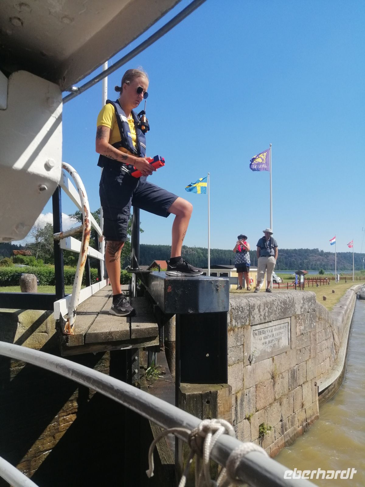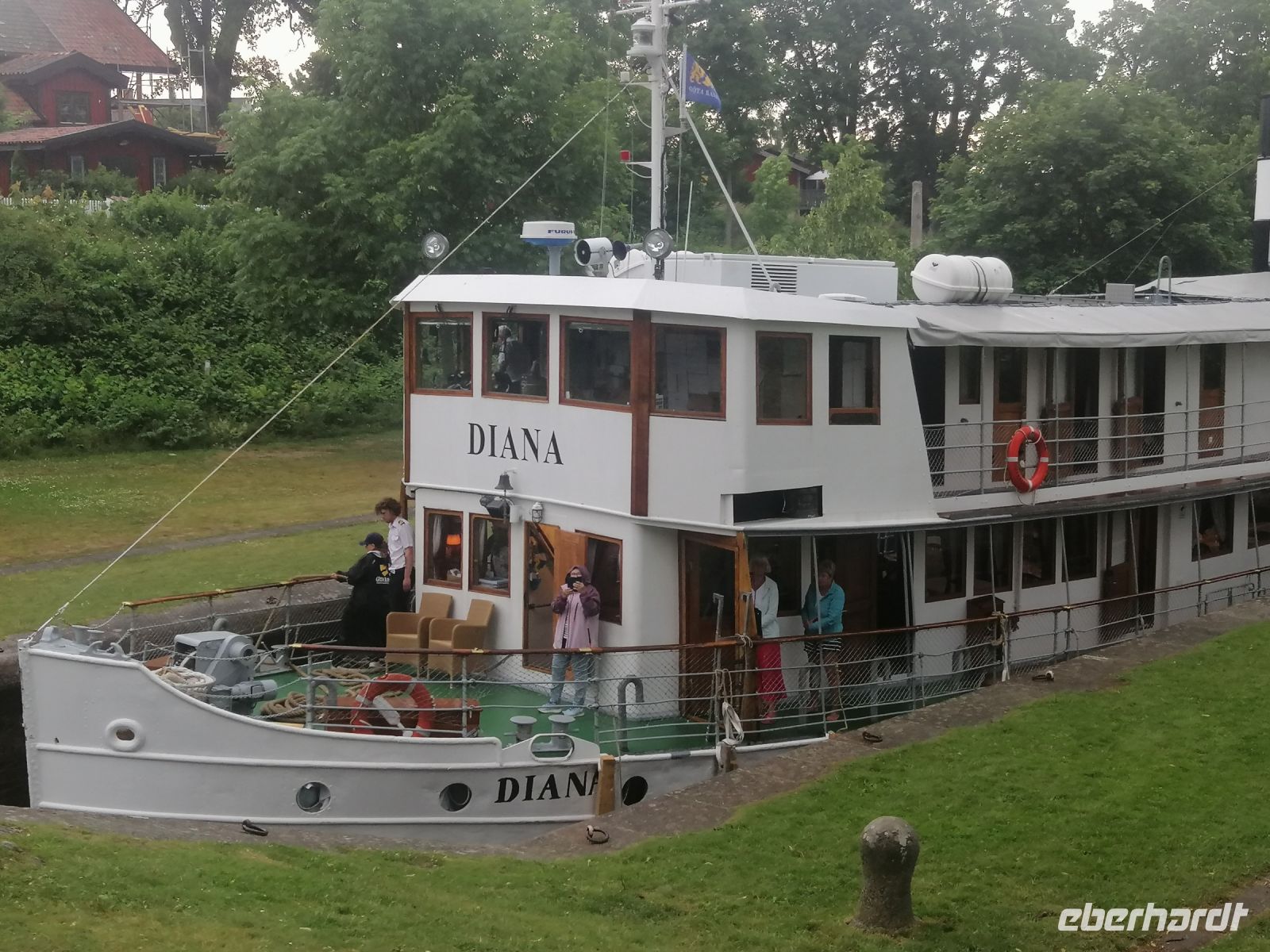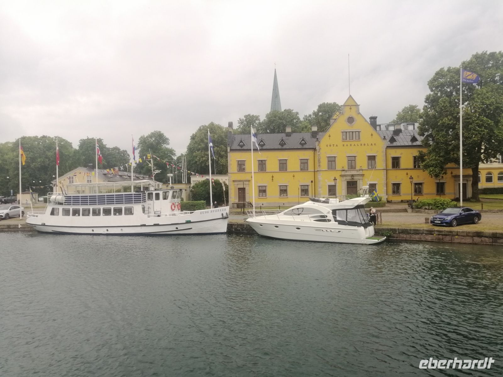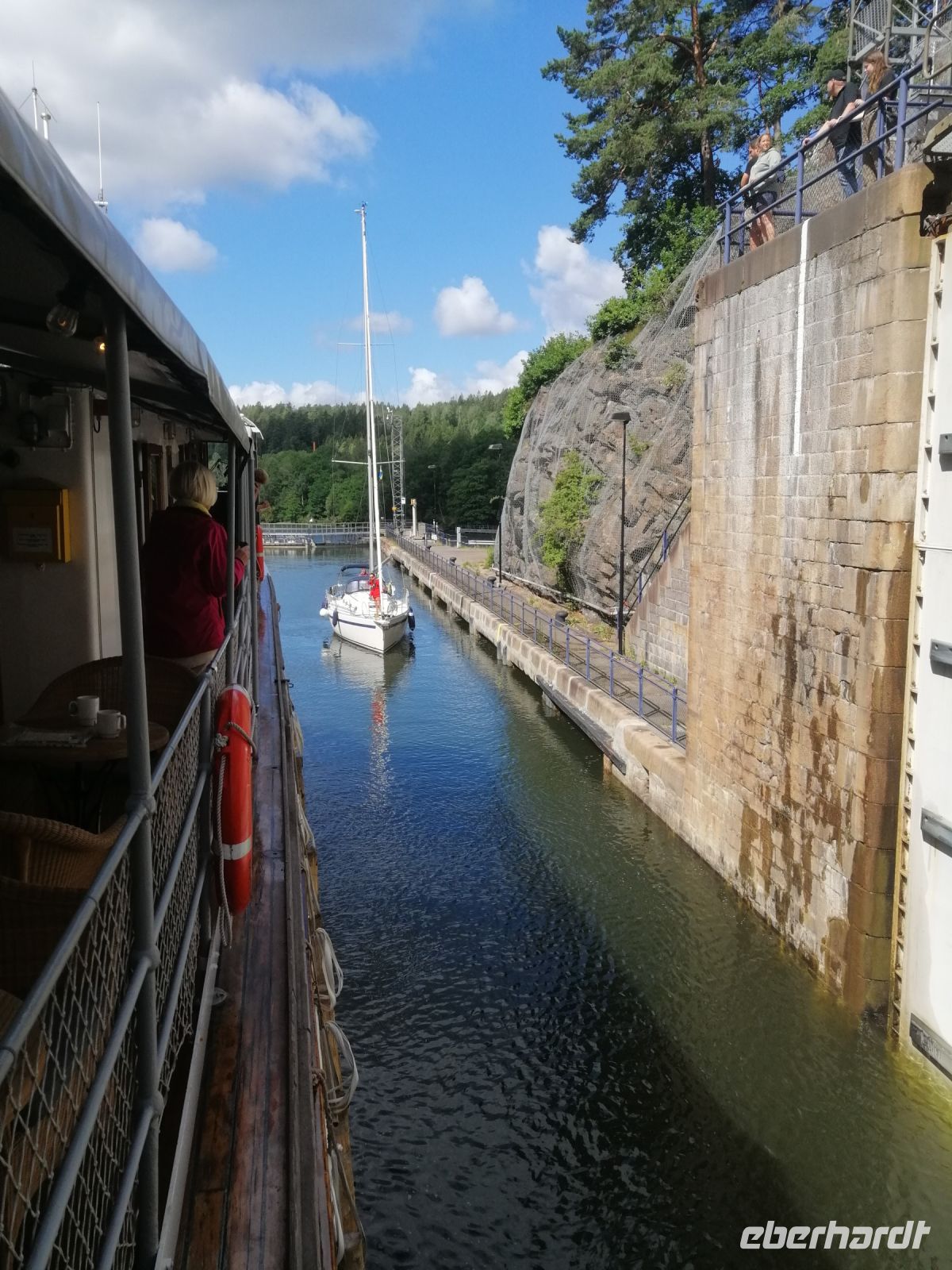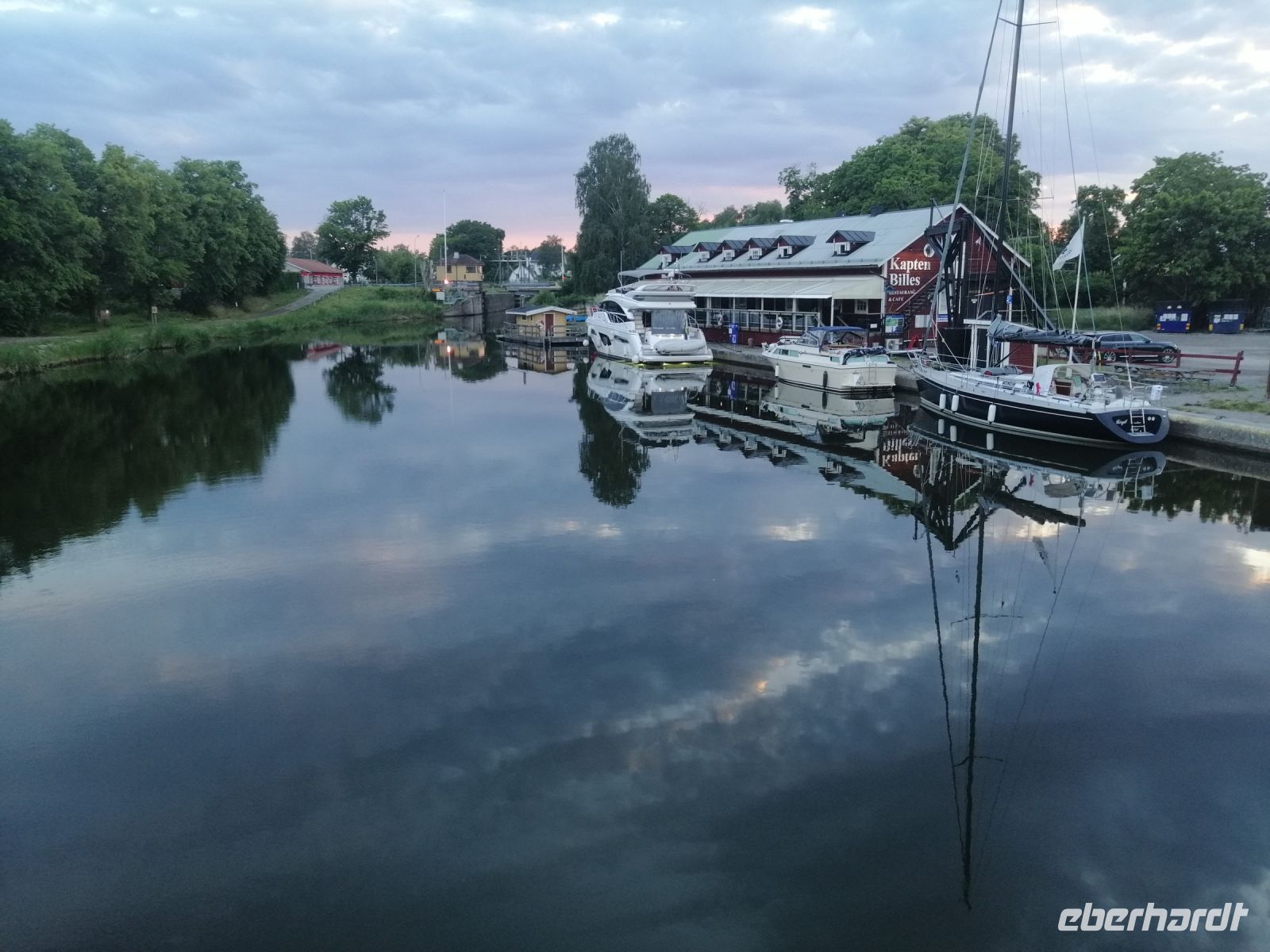 Nach dem köstlichen Frühstück an Bord der MS Diana besichtigten wir mit Karin die Schlossruine in Stegeborg, die landschaftlich reizvoll auf einer kleinen Insel in der Ostseebucht Slätbaken liegt. Die Burg wurde im frühen Mittelalter errichtet und war jahrhundertelang „Schloss und Schlüssel“ zu Östergötland. Danach passierten wir die Schleuse in Mem und fuhren weiter nach Söderköping. Diese Schleuse wurde von 1831 bis 1832 als letzte des Kanals erbaut und war der Ort, an dem der Göta-Kanal am 26. September 1832 feierlich in Anwesenheit von König Karl XIV Johan und seiner Familie eingeweiht wurde. In Söderköping angekommen, erkundeten viele Reisegäste den Kurort auf eigene Faust oder genossen ein leckeres Eis in einem Café. Einige nutzten die Gelegenheit für einen längeren Spaziergang und gingen zu Fuß bis zur letzten der acht Schleusen in Carlsborg. Über den Asplängen-See erreichten wir schließlich den Roxensee. In Berg, noch vor der berühmten Schleusentreppe, hatten wir unsere Nachtanlegestelle spät am Abend erreicht.