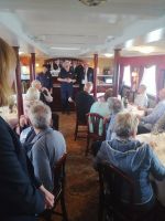 Da es heute extrem windig war, entschied der Kapitän aus Sicherheitsgründen, den großen Vätternsee nur mit der Crew zu überqueren und organisierte stattdessen einen Reisebus für unsere Ausflüge. Mit dem Bus fuhren wir nach Vadstena. In Vadstena angekommen, stiegen wir in eine kleine Bommel-Bahn um und fuhren zur Besichtigung des Klosters der Heiligen Birgitta aus dem 14. Jahrhundert sowie der Klosterkirche, die nach Anweisung der Heiligen Birgitta gebaut und 1430 eingeweiht wurde. Anschließend setzten wir unsere Führung fort und erkundeten die Schloss-Festung Vadstena, die von Gustav Vasa Ende der 1540er Jahre erbaut wurde. Nach der Besichtigung wurden wir mit dem Reisebus nach Karlsborg gebracht, wo wir wieder an Bord der MS Diana gingen und mit Kaffee und Kuchen verwöhnt wurden. Unsere Fahrt führte uns nach Forsvik, wo sich die älteste Schleuse des Kanals und eine imposante Eisenbrücke befinden, beide aus dem Jahr 1813. An der Schleuse wurden wir von der religiösen Familie Kindbom mit Blumen und Gesang empfangen. Danach durchquerten wir zwei der engsten Passagen des Kanals: Billströmmen und Spetsnäskanal, wo unser Kapitän Albert sein Können unter Beweis stellte. Diese Passagen sind von Bäumen gesäumt und führen durch eine malerische Landschaft mit kleinen Seen, die von Teichrosen bewachsen sind. Der Spetsnäskanal, eine 1824 eingeweihte Abkürzung im See Viken, führte uns schließlich zum magischen Vikensee, der als Wasserreservoir für den westlichen Teil des Göta-Kanals dient. In Tåtorp legten zwei starke Männer von Bord Hand an und bedienten erfolgreich eine handbetriebene Schleuse. Danach ging es weiter über den Bergkanal, der durch Sprengarbeiten zwischen 1931 und 1933 entstand, um eine scharfe Biegung am Göta-Kanal zu begradigen. Bei Lanthöjden erreichten wir den höchsten Punkt des Göta-Kanals mit 91,5 m über dem Meer, markiert durch einen Obelisken. In Töreboda erwartete uns die nächste Überraschung: "Lina" – die kleinste Fähre Schwedens, die den Göta-Kanal überquert. Am Abend erreichten wir Hajstorp, unseren Nachthafen. Hier befinden sich vier Schleusen in wunderschöner Umgebung, die wir für einen Spaziergang nutzten. Auf einer Informationstafel lasen wir, dass 1822 der westliche Teil des Göta-Kanals in Hajstorp von König Karl XIV Johan eingeweiht wurde.