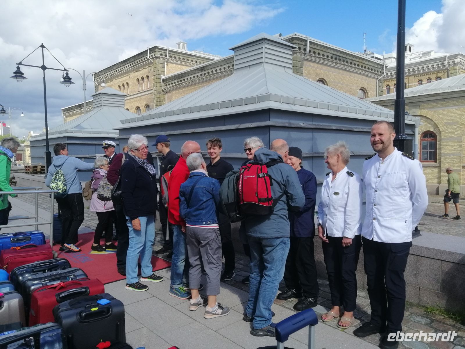Heute starteten wir früh in Vänersborg. Nachdem wir die älteste Schleuse bei Brinkebergskulle aus dem Jahr 1752 passiert hatten, erreichten wir die Stadt Trollhättan. Da das Kanalmuseum noch nicht geöffnet war, unternahmen wir einen Spaziergang durch den idyllischen und naturschönen Kanalpark und bewunderten die Schleusentreppen aus den Jahren 1800 und 1844. Technisch gesehen sind sie ein Meisterwerk der Ingenieurkunst: Die eindrucksvolle Schleusentreppe bei Trollhättan umfasst vier Schleusen und hat eine Fallhöhe von 32 Metern. Es gibt drei parallele Schleusenbecken, von denen nur das größte von 1916 noch in Betrieb ist. Gegen Mittag erreichten wir die letzte Schleuse unserer Schifffahrt, Lilla Edet. Die ursprüngliche Schleuse wurde 1607 eingeweiht und war die erste ihrer Art in Schweden. Während der Kriege mit Dänemark wurde sie zerstört, aber 1784 wiederaufgebaut. Nachdem wir an der Bohus-Festung vorbeigefahren waren, erreichten wir gegen 16 Uhr Göteborg. Unsere traumhafte Schifffahrt endete bei Packhuskajen 10, wo sich das 1867 erbaute Zollhaus befindet, das heute unter anderem das Casino Cosmopol beherbergt. Nach der herzlichen Verabschiedung von unserer Schiffsmannschaft brachte uns ein Bus zu unserem Forts Hotel Göteborg direkt am Bahnhof.