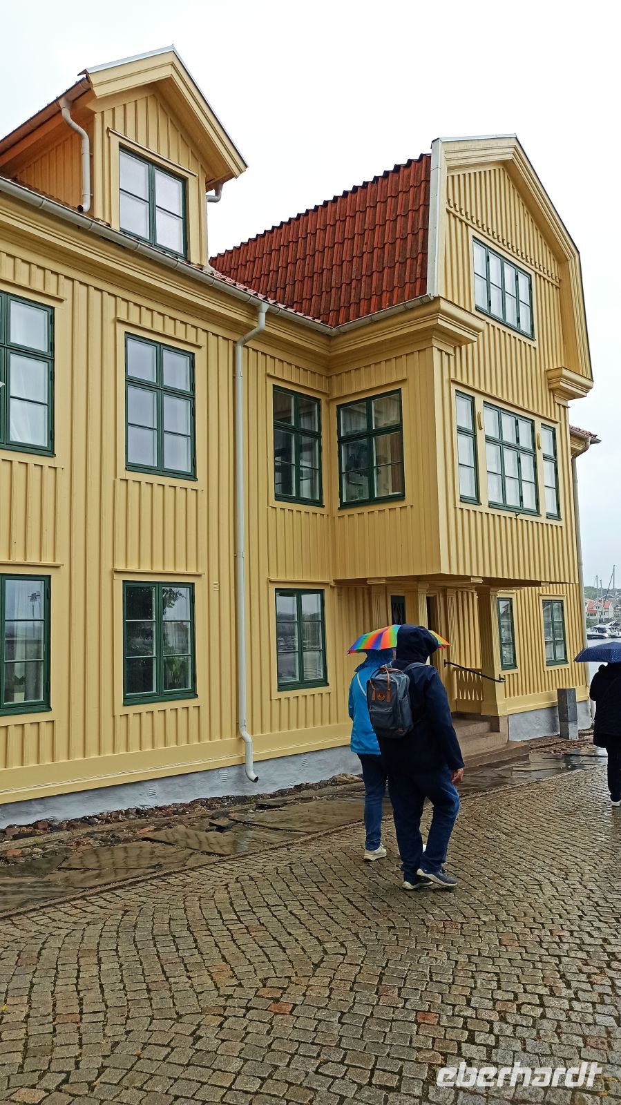 Nach dem Frühstück starten wir zu unserer Stadtrundfahrt durch Göteborg. Wir sind mit unserer örtlichen Reiseführerin Franziska in der zweitgrößten Stadt Schwedens unterwegs, sehen das Theater aus dem 19. Jahrhundert mit dem Poseidon-Brunnen davor, kommen vorbei am großen Stadion und fahren über die Brücke Stora Nygatan zum Stadtteil Haga. Hoch oben vom Masthugget und der Masthugget-Kirche haben wir einen wunderbaren Panoramablick auf die Stadt, den Hafen, die Göta-Älv-Brücken und auch auf die wunderschöne Schärenlandschaft, die wir gleich noch genauer sehen werden, denn wir machen einen Ausflug mit der Fähre auf die kleine, autofreie Insel Marstrand. Dort befindet sich eine der besterhaltenen Festungen Nordeuropas, die Carlsten Festung. Heute haben wir mit dem Wetter nicht so richtig Glück. Es regnet. So spazieren wir mit Schirm durch die gemütlichen Gassen, erfreuen uns an den alten bunten Holzhäusern. Im Grand Hotel ist für uns als Mittagsimbiss ein leckeres Krabbenbrot vorbestellt. Eigentlich wollten wir die anschließende freie Zeit für einen Spaziergang zur Festung nutzen oder aber ein wenig an der Hafenpromenade zu flanieren. Aber der Regen wollte nicht aufhören. So fuhren wir einfach etwas früher zurück und hatten noch etwas Zeit in Göteborg. Am Abend gehen wir alle zusammen zum historischen Restaurant Källarkrogen zum gemeinsamen Abschiedsessen. Da haben wir viel Gesprächsstoff, das ist ganz klar. Aber der Blick richtet sich auch schon auf nächste Unternehmungen. Wir sind eben eine reisefreudige Gruppe.