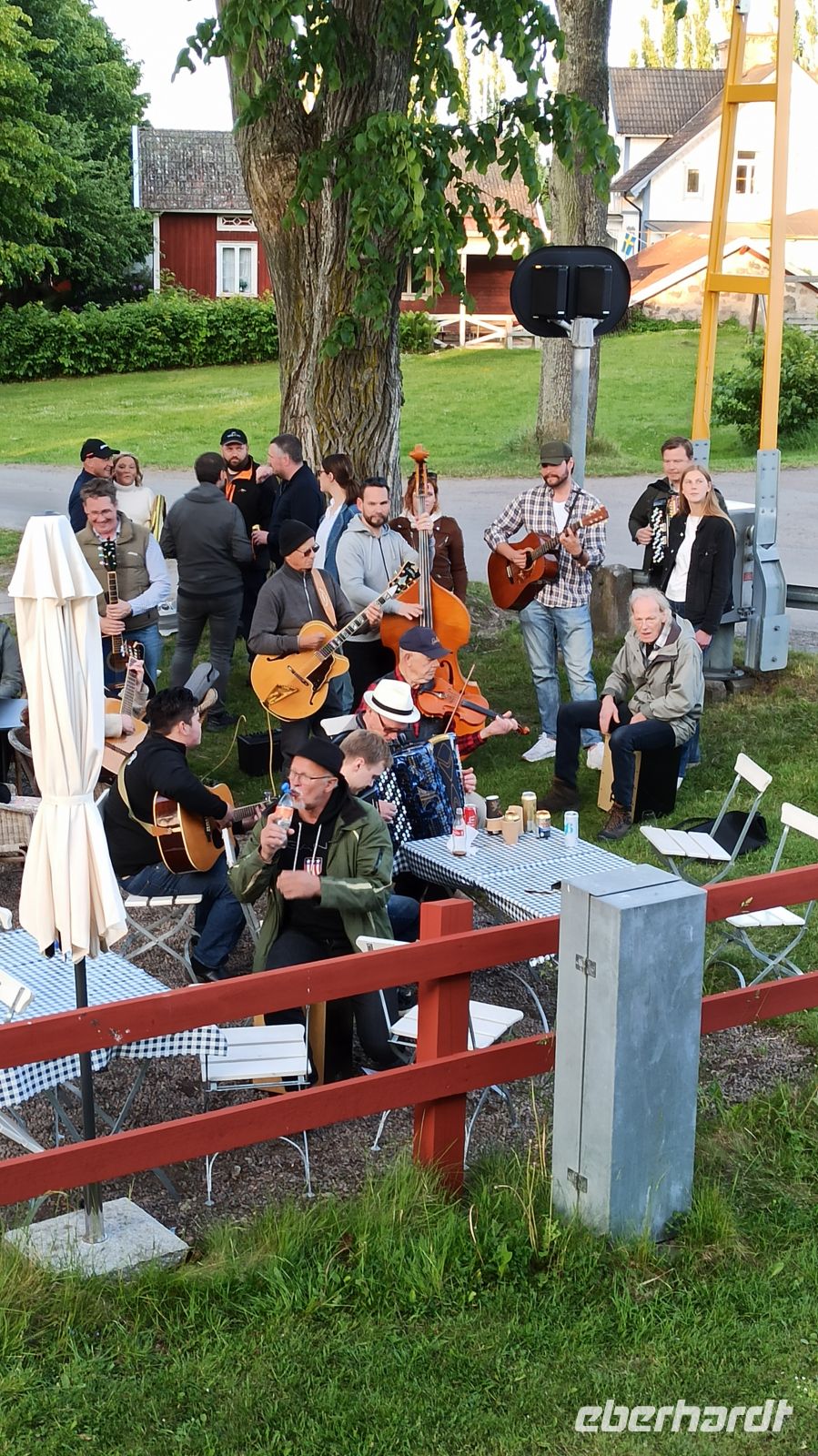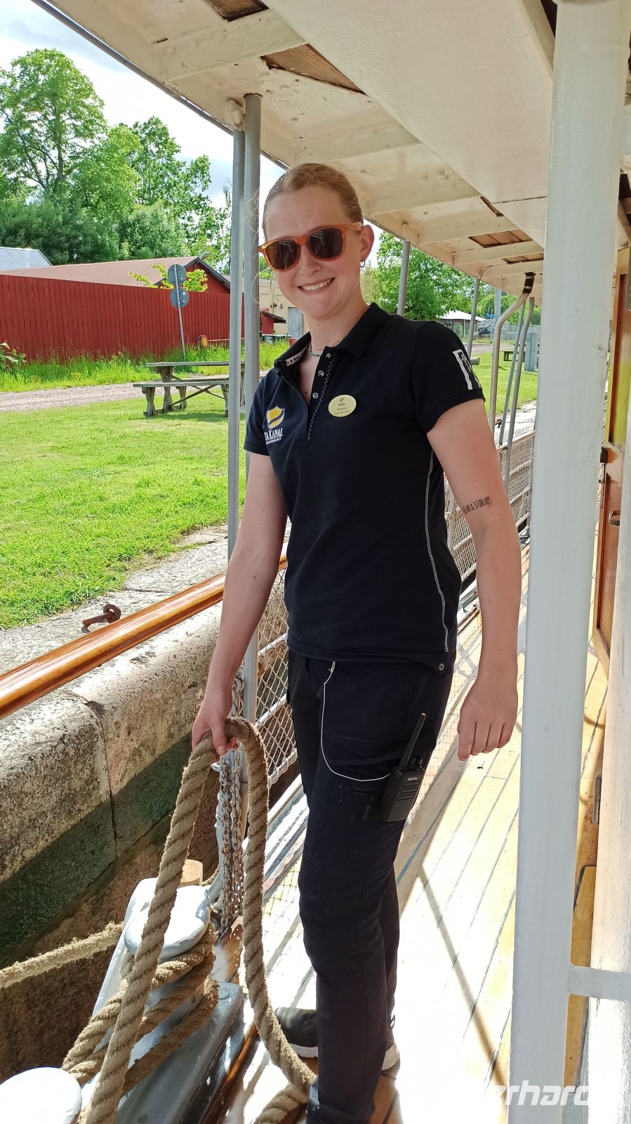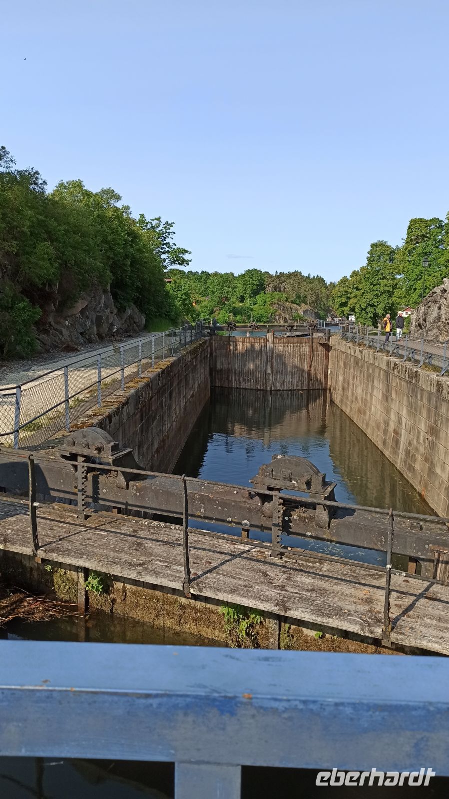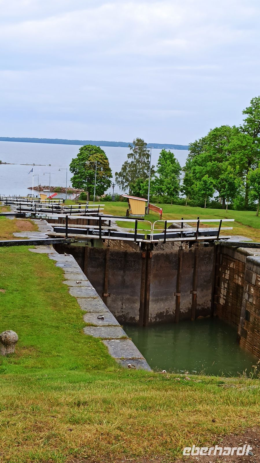 Am Morgen verlassen wir Motala, sind aber nicht auf dem Vättern-See, dem zweitgrößten See Schwedens unterwegs, denn der Wind wird zu stark sein, sagt der Wetterbericht. So kommt ein Bus, der uns zum Vormittagsprogramm nach Vadstena bringt, anschließend zurück zum Schiff, das inzwischen ohne Passagiere über den See fährt. So erreichen wir per Bus und über Land den Ort Vadstena, besuchen hier das Kloster, die Kirche und das Vadstena Schloss aus dem 16. Jahrhundert. Wir haben eine sehr gute Führung, bekommen alles gezeigt und erklärt. Die Zeit vergeht schnell, schon kommt der Bus, der uns nach einer guten Stunde Fahrt über Land zurück zum Schiffsanleger bringt. Unterwegs haben wir ein kleines Picknick im Bus. Anna und Magnus haben eben an alles gedacht. Es soll uns gut gehen, und das tut es! Nun sind wir wieder auf unserem Schiff, genießen das wie immer erlesene und sehr schmackhafte Mittagessen. Jetzt biegen wir wieder in den Göta-Kanal ein, und zwar in Richtung Forsvik. Hier lernen wir die älteste Schleuse des Kanals kennen. Sie wurde 1813 gebaut. Das Wetter hat sich inzwischen beruhigt. Am Ufer wartet eine Überraschung: uns begrüßt ein Chor mit christlichen Gesängen und Blumensträußen. Aber nun aufgepasst! Gleich kommen die beiden engsten Stellen des Göta-Kanals: Billströmmen und Spetsnäskanal. Auf unseren Kapitän und überhaupt die gesamte Crew können wir stolz sein. Sie verstehen ihr Handwerk, haben ganz viel Erfahrung! Voller Respekt schauen wir ihnen wieder und wieder gern zu. Jetzt haben wir aber wieder freie Fahrt. Es geht über den Viken-See nach Tatorp, wo sich eine der beiden noch erhaltenen handbetriebenen Schleusen des Göta-Kanals befindet. Hier erreichen wir auch den höchsten Punkt des gegrabenen Kanals: ganze 91,5 m über NN. Ein Obelisk markiert die entsprechende Stelle auf einer kleinen Landzunge. Über Töreboda kommen wir dann nach Hajstorp, unserem heutigen Liegeplatz für die Nacht. Am Anleger findet ein richtiges kleines Konzert statt. Die Bewohner des Ortes genießen das Wochenende mit Musik.