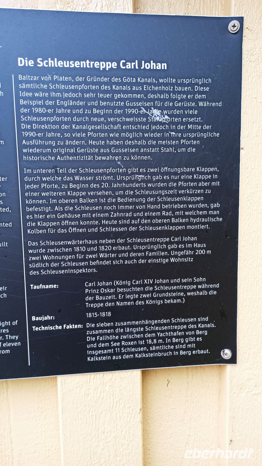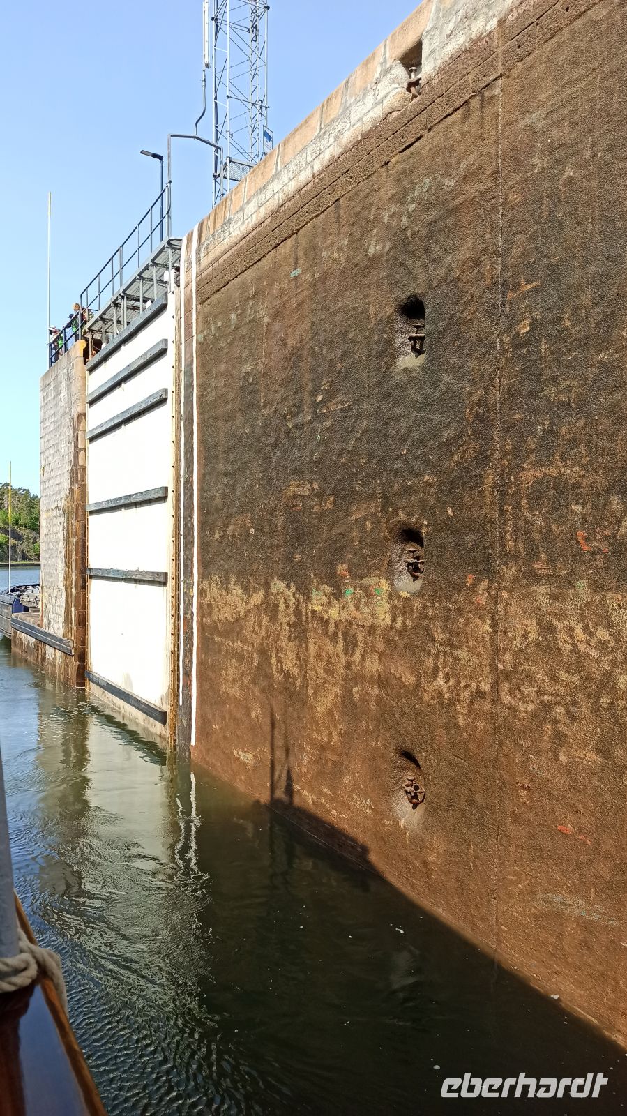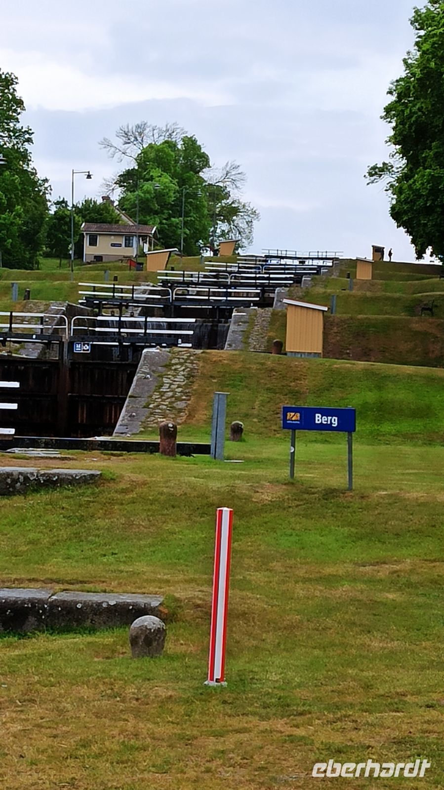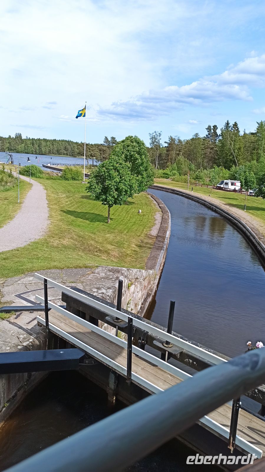 Nach dem Frühstück besuchen wir die Schlossruine Stegeborg. Anna begleitet uns und erklärt uns die Geschichte. Unser Schiff gleitet pünktlich weiter und passiert bei Mem die erste der 58 Göta-Kanal-Schleusen. Nun beginnt die eigentliche Fahrt auf dem Göta-Kanal! Es gibt immer genug zu sehen. Aber was gibt es eigentlich zur Entstehungsgeschichte des Göta-Kanals zu sagen? Von 1810 bis 1832 dauerte der Bau des schiffbaren Weges vom Kattegat zur Ostsee. Der eigentliche Grund für den Kanalbau war, dass die schwedischen Schiffe den Sundzoll an Dänemark umgehen wollten. Im Jahre 1832 wurde in Mem und in Gegenwart von König Karl XIV der Kanal feierlich eingeweiht. Unser nächstes Ziel ist Söderköping, zu Zeiten der Hanse ein ziemlich bedeutender Ort. Hier ist für uns wieder Zeit für einen Spaziergang. Wir schlendern durch diese schmucke Kleinstadt, und natürlich ist auch Zeit für das berühmte Eiscafé Smultronstället. Die Eisbecher hier sind legendär, also müssen wir probieren, wenigsten eine Kugel, denn wir sind ja gerade erst vom Mittagessen auf dem Schiff aufgestanden. Weiter fährt unser Schiff in Richtung der Seen Asplangen und Roxen und passiert dabei 9 Schleusen bis es schließlich an der berühmten Schleusentreppe von Berg vor Anker geht. Wir sind gespannt! An das gute Leben an Bord haben wir uns übrigens schnell gewöhnt, genießen die wunderbaren Mahlzeiten, die interessanten Führungen, vor allem aber die einzigartige Natur um uns herum. Und beim Wettergott wollen wir uns ausdrücklich bedanken. Er meint es bis jetzt sehr gut mit uns. Das soll natürlich gern so bleiben, hoffen wir.