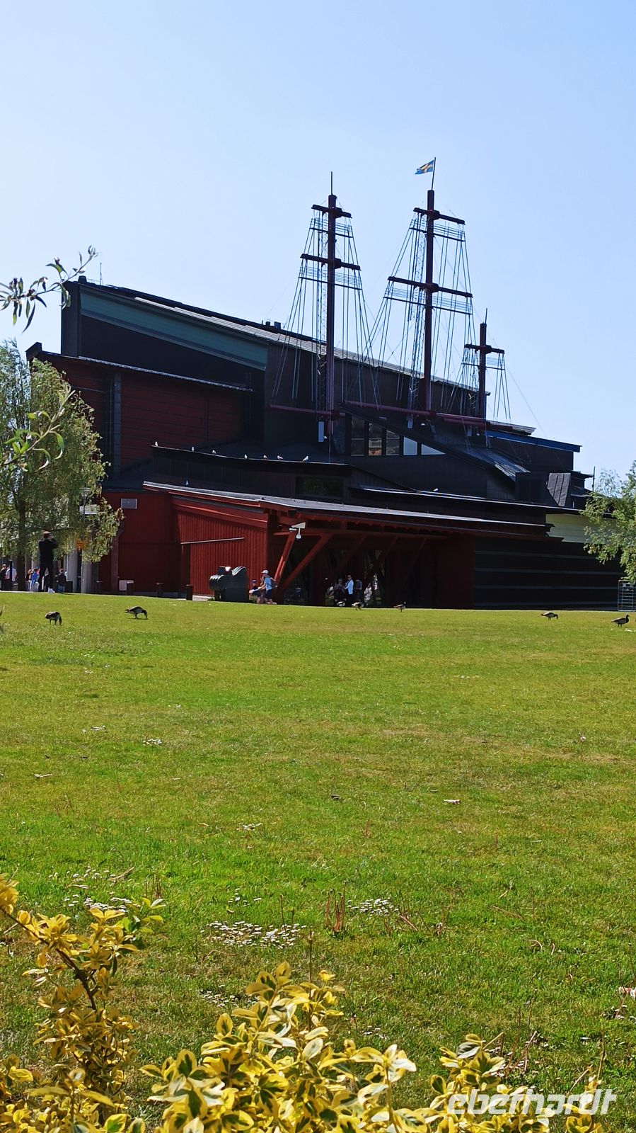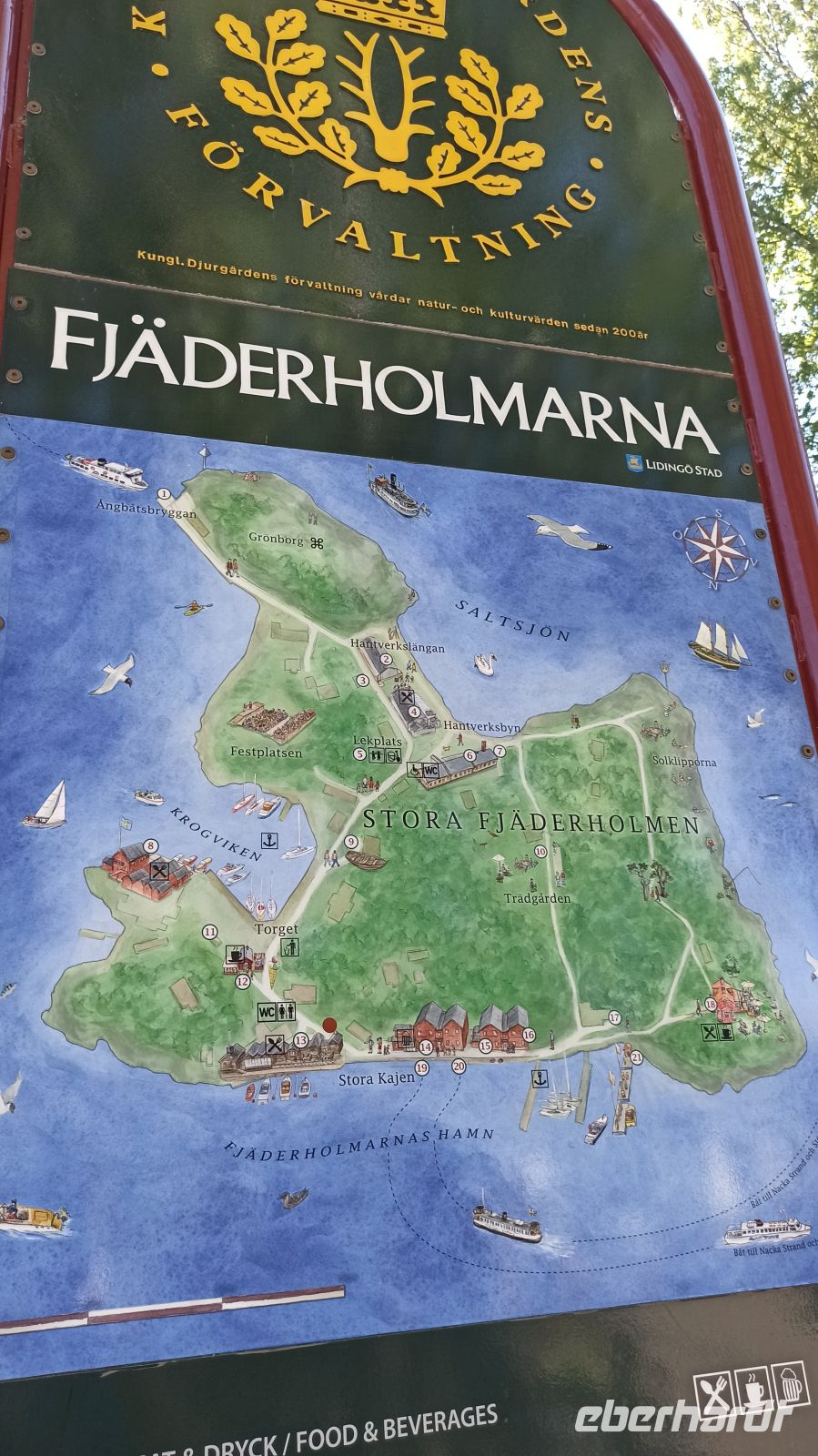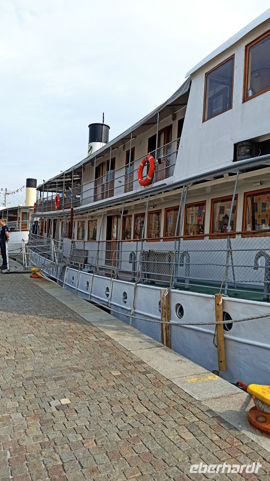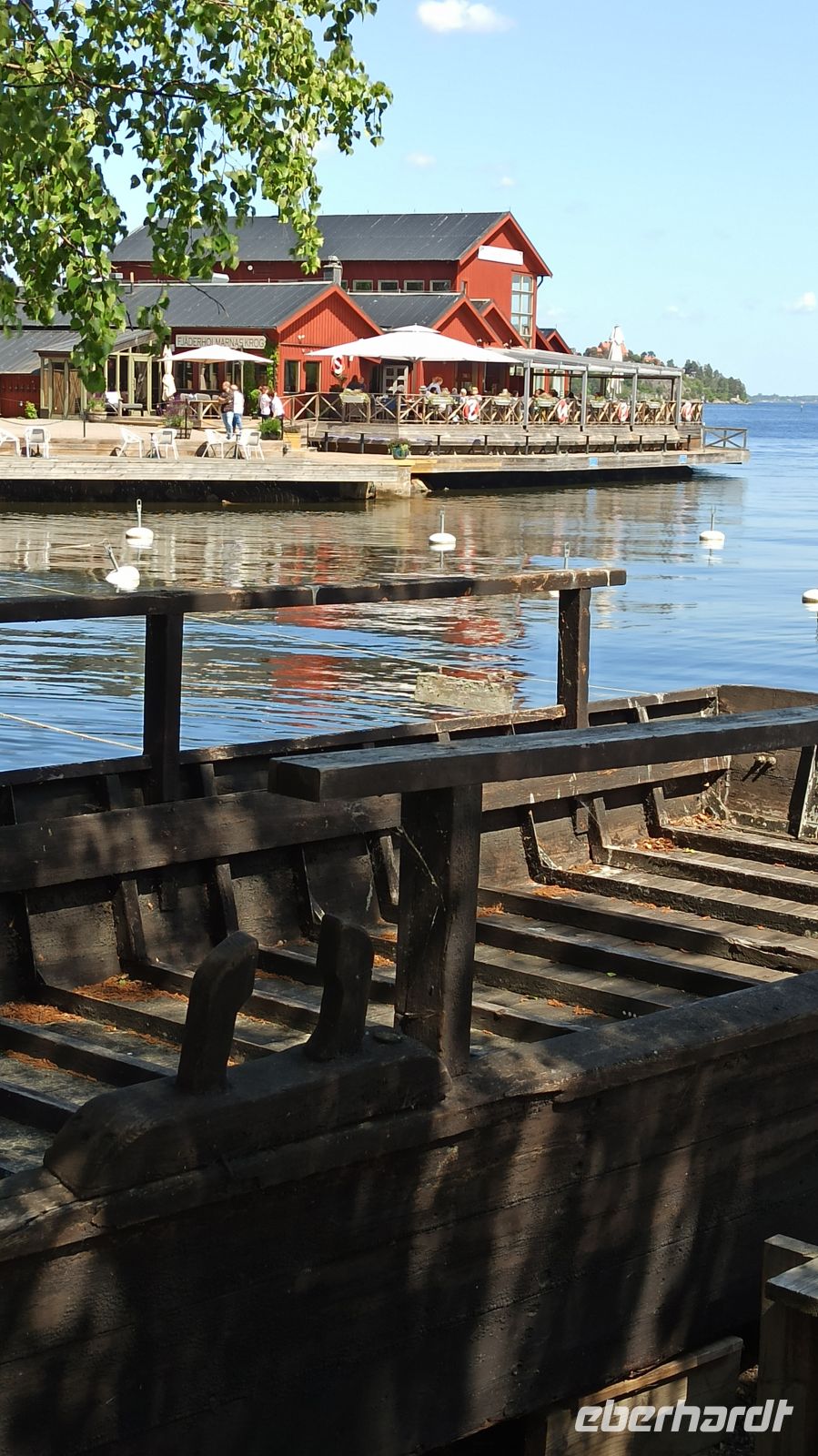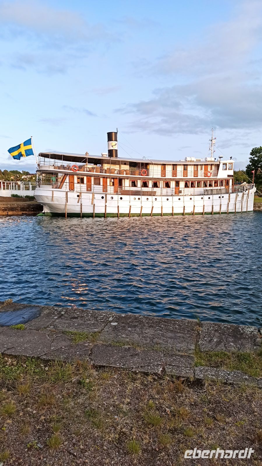 Der heutige Tag war laut Programm frei von vorgeplanten Aktivitäten, d.h. zur individuellen Gestaltung bestimmt. Aber uns fiel natürlich jede Menge ein, noch dazu in dieser einmaligen Stadt! So nahmen wir uns zunächst einen Besuch im Vasamuseum vor. Nach dem Frühstück fahren wir los. Der Weg vom Hotel in die Stadt war uns längst geläufig. Auf der Insel Djurgarden sind übrigens noch eine ganze Reihe weiterer Museen zu Hause, so z.B. das ABBA-Museum und das Freilichtmuseum Skansen. Im Vasamuseum war um diese frühe Zeit kaum Andrang. So kamen wir gleich hinein, orientierten uns, sahen den Film zum Vasa-Schiff und gingen dann auf eine individuelle Besichtigungstour rund um das große Schiff. Natürlich gibt es hier jede Menge Führungen in verschiedenen Sprachen, auch über eine App kann man sich durchs Museum lotsen lassen. Was hat es mit dem Vasa-Schiff eigentlich auf sich? In Auftrag gegeben wurde es von König Gustav II. Adolf, der im 30-jährigen Krieg in der Schlacht bei Lützen (in der Nähe von Leipzig) fiel, und für den es dort auch eine sehenswerte Gedenkstätte gibt. Allerdings ist das Schiff am 10. August 1628 auf seiner Jungfernfahrt schon im Stockholmer Hafen gesunken. Grund war der zu weit oben liegende Schwerpunkt des Schiffes. Erst 333 Jahre später konnte es geborgen werden. Der Film im Vasa-Museum erklärt und zeigt alles ganz genau, den Bau, den dramatischen Untergang des Schiffes, auch seine sehr aufwändige Restaurierung, eine Daueraufgabe, denn das ausgestellte Schiff besteht zu 98% aus Originalteilen. Vom Vasa-Museum fuhren wir dann mit der Straßenbahn Nr. 7 zurück zum Nybronplan, gingen zum Bootsanleger, wo uns ein Schiff zur kleinen Schäreninsel Fjäderholmarna bringen sollte. Hier kann man ein wenig spazieren, die herrliche Natur genießen, die kleinen Cafés, Werkstätten und Ateliers besuchen. Größter Anziehungspunkt bleibt aber bei dieser Schiffstour die herrliche Schärenlandschaft. Man fährt mit dem Schiff ungefähr eine halbe Stunde bis nach Fjäderholmarna. Es war für uns wieder ein herrlicher Tag mit vielen unvergesslichen Eindrücken. Nun richten sich aber unsere Gedanken voll auf den Göta-Kanal, denn morgen brechen wir dorthin auf, zu einer ganz besonderen Schiffsreise.