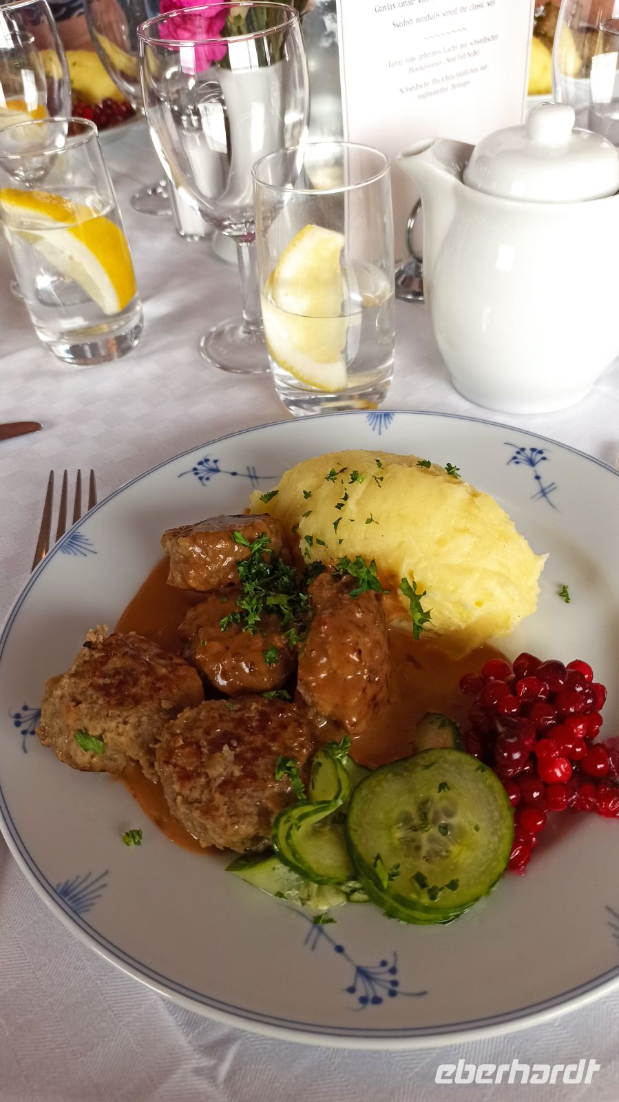 Heute ist leider unser letzter Tag an Bord der MS Diana, aber noch nicht im schönen Schweden. Zeitig starten wir in Vänersborg, passieren die Schleuse von Brinkebergskulle und kommen schließlich in Trollhättan an, einer Stadt mit bedeutender Industriegeschichte. Hier waren ursprünglich die Werke von Saab und Volvo zu Hause. Die sind auch bei uns bekannt. Und erwähnen müssen wir noch den 33 Meter hohen Trollhättan-Wasserfall, der von einem Kraftwerk des Konzerns Vattenfall gesteuert wird. Ein Kanalmuseum gibt es hier außerdem. Es erzählt die aufregende Geschichte des Trollhättan-Kanals, auf dem wir bis nach Göteborg nun mit unserem Schiff unterwegs sein werden und der bis heute seine Bedeutung für die Handelsschifffahrt nach Göteborg behalten hat. Hin zum Museum machen wir einen Spaziergang vorbei an den alten Schleusen. Wieder erklärt Anna alles genau. Im Kanalmuseum gibt es einen Film über die Geschichte des Kanals, auch in deutscher Sprache. Bei Lilla Edet passieren wir dann die letzte Schleuse unserer Tour. Wir genießen nun einfach die letzten Stunden an Bord, haben auch noch Gelegenheit, in kleinen Gruppen hinabzusteigen in den Bauch des Schiffes, um den Maschinenraum zu besichtigen, auch die Küche. Und der Kapitän lädt sowieso immer zum Besuch ein. Für uns geht eine unvergessliche Woche auf der MS Diana zu Ende. Der Kapitän und die Crew stehen Spalier, um uns vor dem Schiff mit Handschlag zu verabschieden, unser Transferbus bringt uns zum Hotel Elite Plaza in Göteborg. Das ist fast um die Ecke. In Gedanken sind wir aber alle irgendwie noch auf dem Schiff unterwegs. Nach dem check in im Hotel machen wir individuell oder in Grüppchen einen kleinen Rundgang durch die Innenstadt von Göteborg. Dort gibt es auch genügend Möglichkeiten für einen abendlichen Imbiss. Der Rückweg zum Hotel ist nicht schwer. Sowieso haben wir alle Stadtpläne bekommen.
