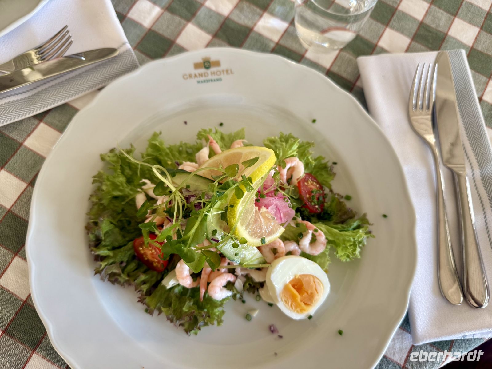 In Marstrand angekommen, stärkten wir uns zunächst bei einem köstlichen Mittagessen im traditionsreichen Grand Hotel: serviert wurden typisch schwedische Krabben auf frischem Brot. Danach hatte jeder Zeit zur freien Verfügung. Einige Gäste nutzten die Gelegenheit für einen gemütlichen Spaziergang durch den Ort, während andere den Aufstieg zur Festung wagten, von der sich ein herrlicher Rundumblick auf die Schärenküste bot.