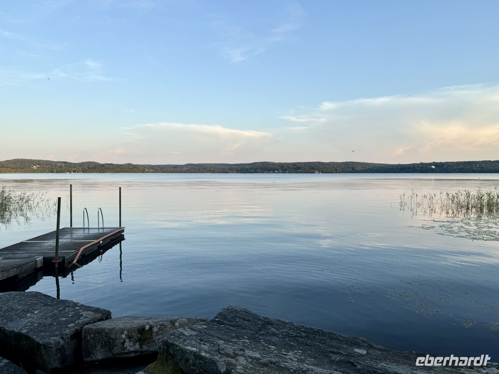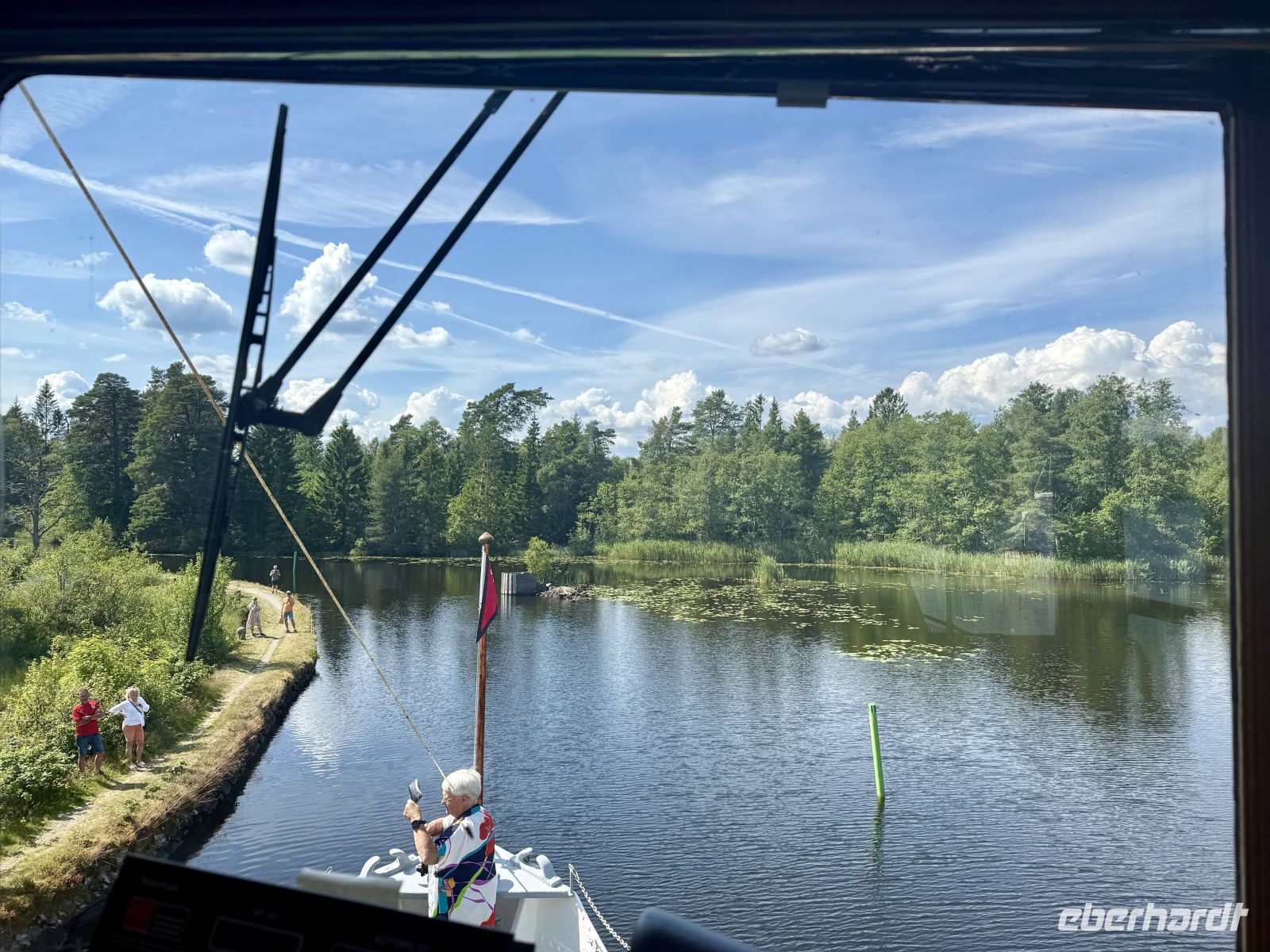 Am Nachmittag durchquerten wir den Vikensee (Viken), der mit rund 91,8 Metern über dem Meeresspiegel den höchsten Punkt des Göta-Kanals markiert. Hier verläuft der Kanal beinahe wie ein natürlicher See – umgeben von dichter, unberührter Natur und spiegelglattem Wasser.